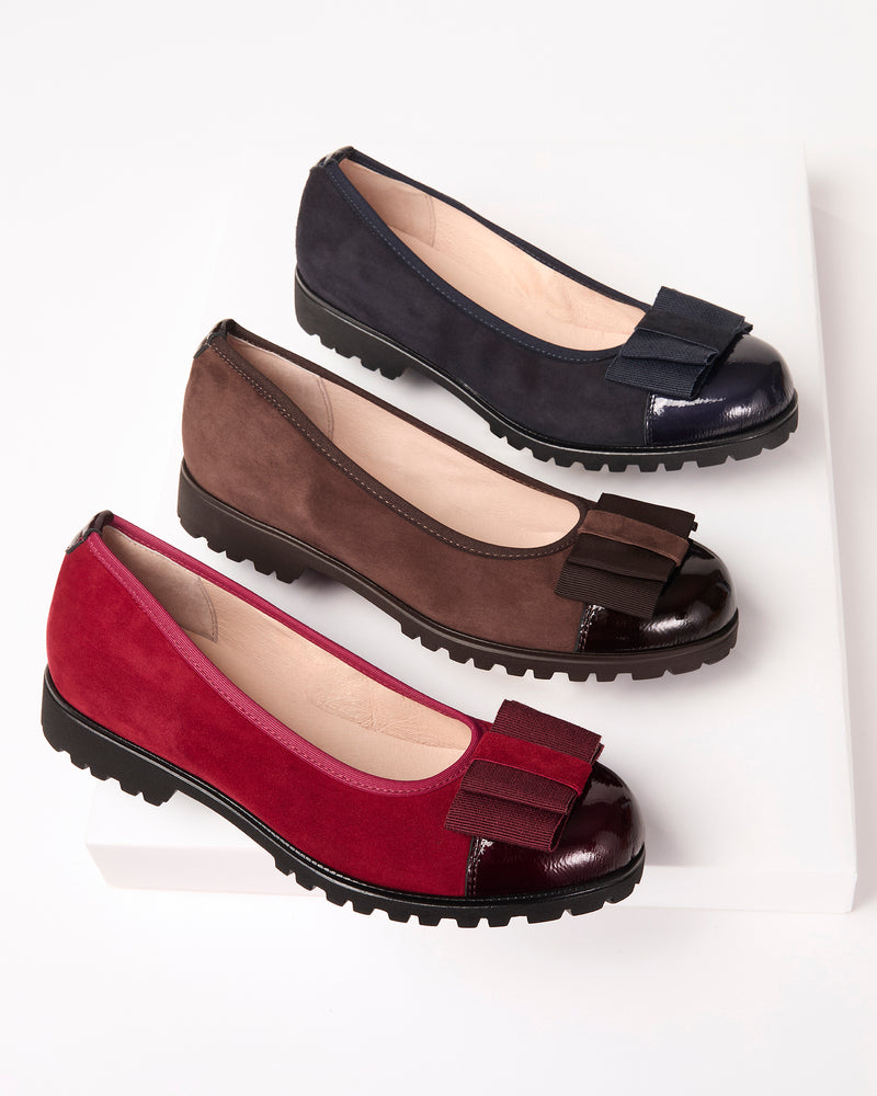 Luxurious cashmere suede meets a glossy patent cap toe & grosgrain ribbon. Enhanced with 5mm pillow cushioning and an ultralight mini lug sole, it balances refined style with modern comfort