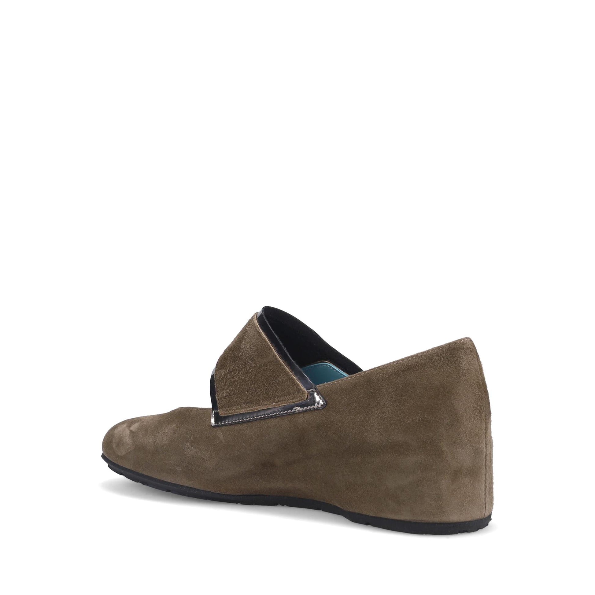 Thierry Rabotin Abra Mary Jane in Suede. Velcro Strap. Poron Cushioning. Rubber Outsole. Made in Italy.