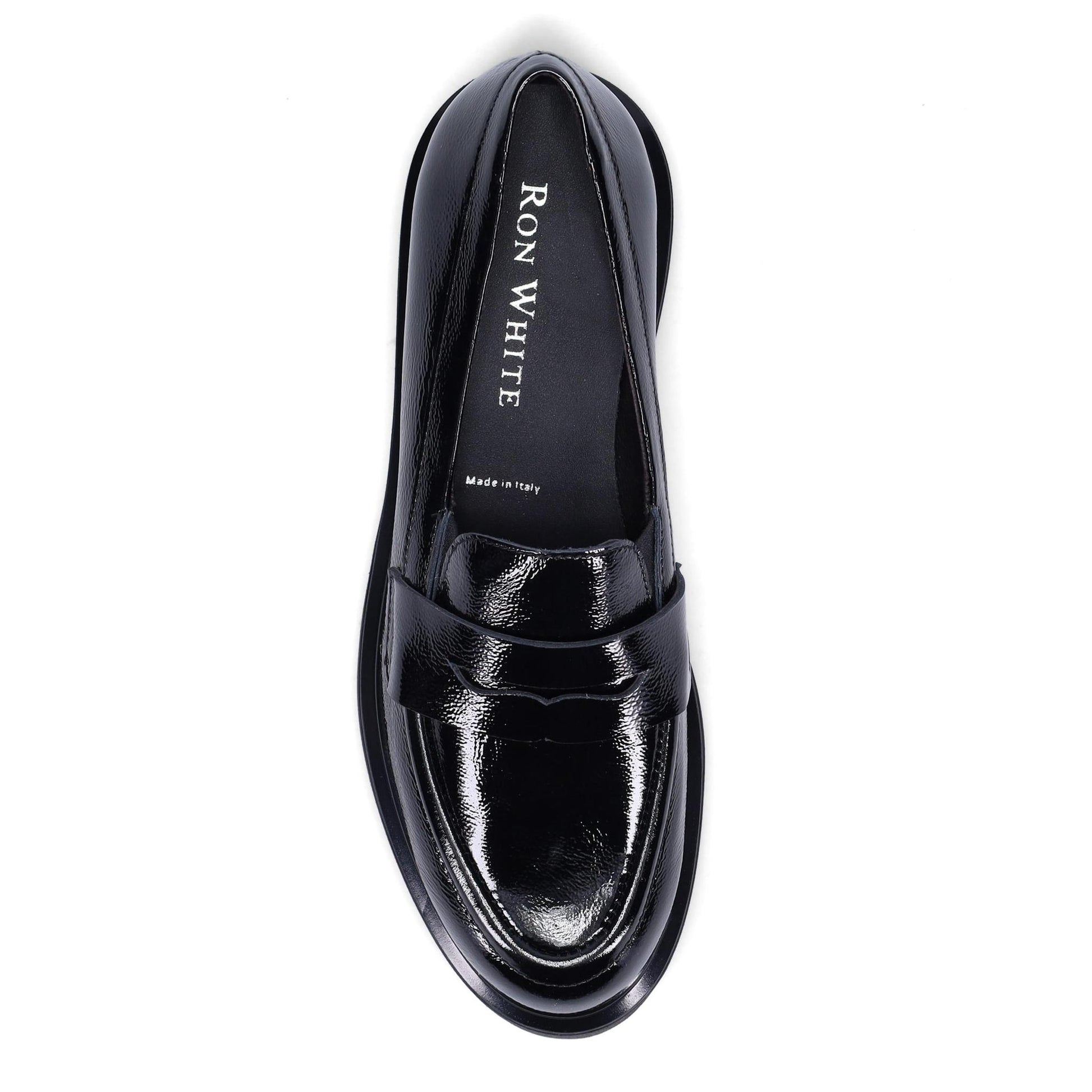 Adeline Penny Loafer in Soft Patent. Enhanced padding with 5mm 5mm Pillow Cushioning.. Anti-Slip Rubber Sole. Made in Italy.