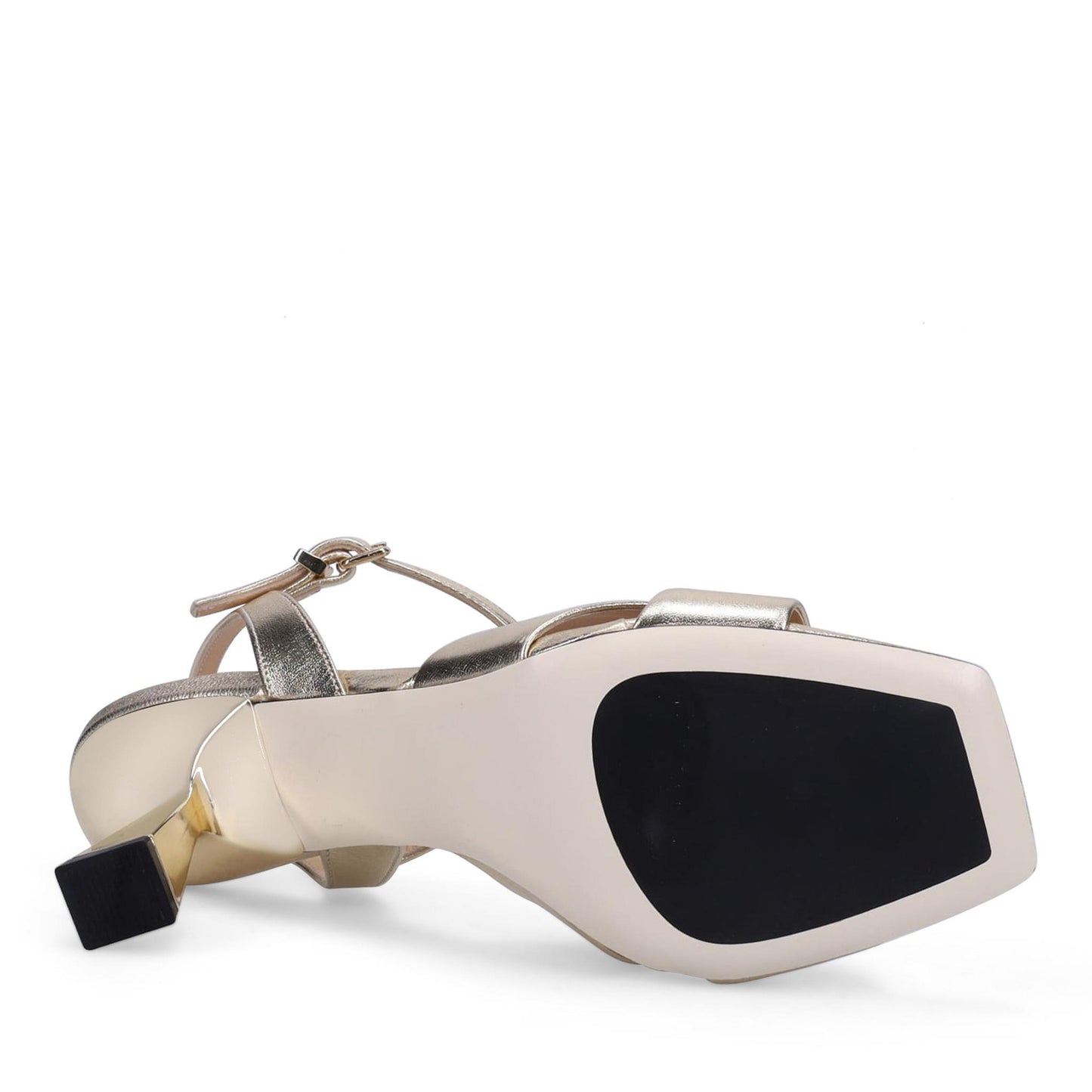 Ainsley Sandal in Metallic Nappa. Ankle strap with adjustable buckle. Double padding. Made in Italy.