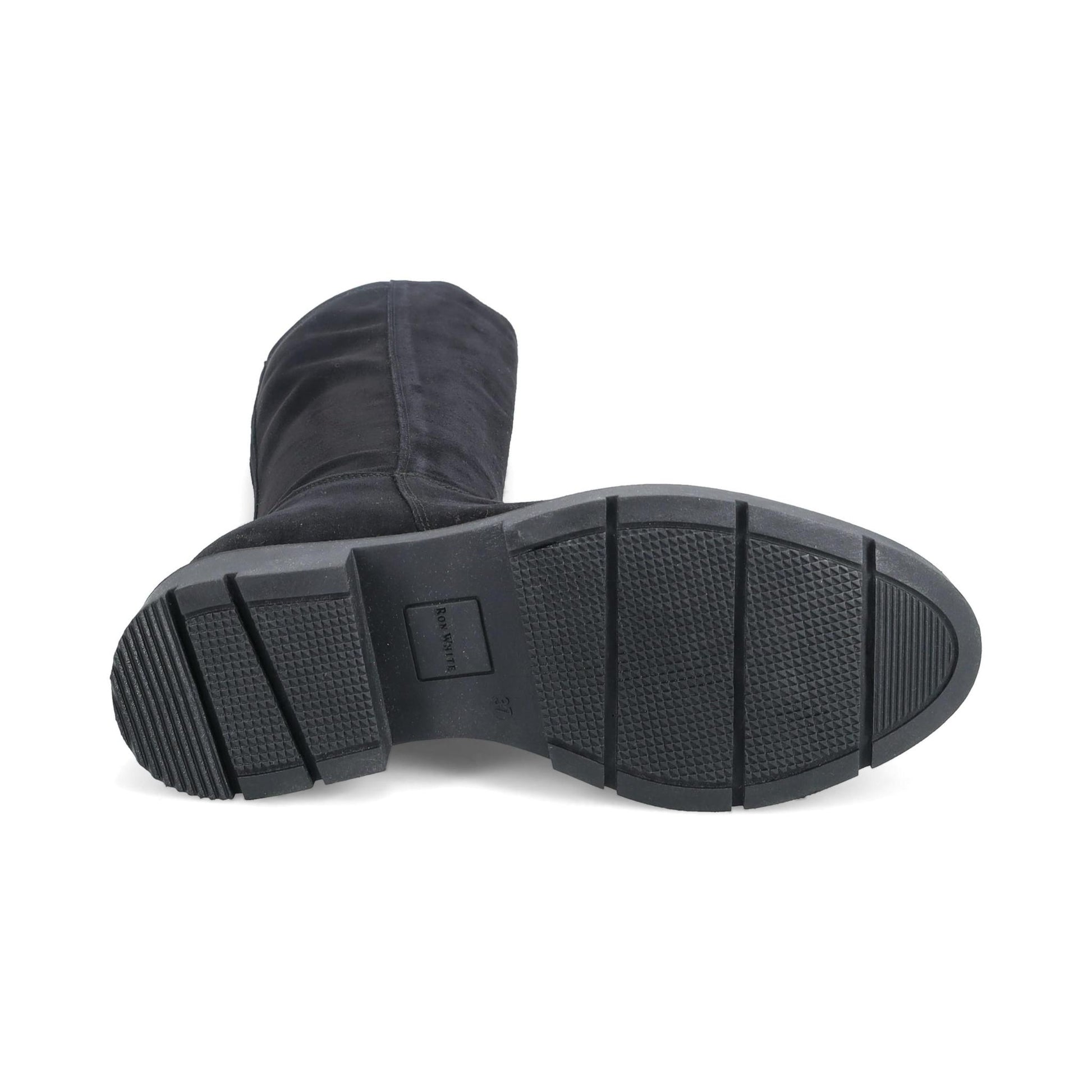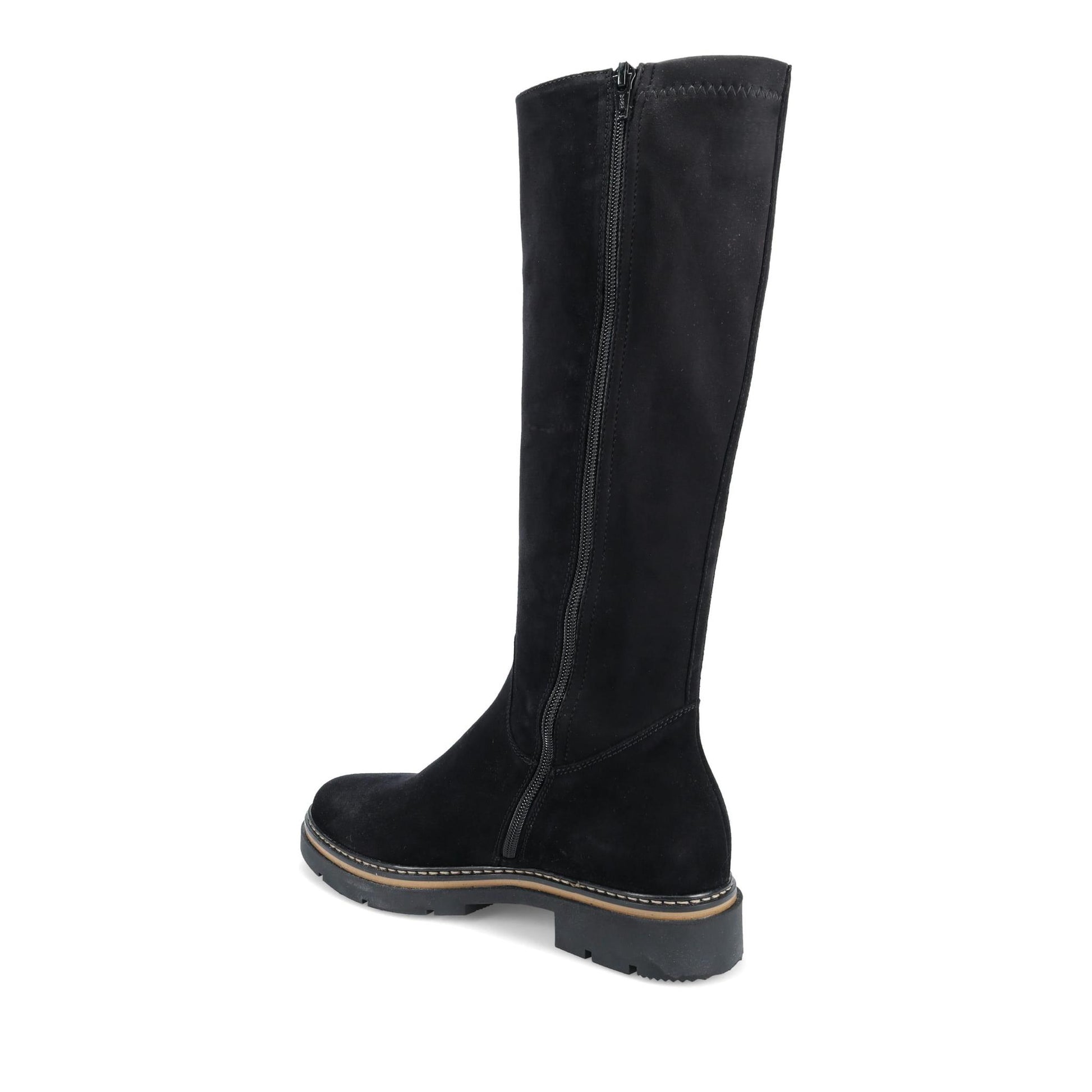 Allegra Footbed Tall Boot in Suede with Stretch Suede panel. Inside Zipper. Featuring a Full Removable Footbed with Arch Support. Anti-Slip Rubber Sole. Weatherproof. Made in Italy.
