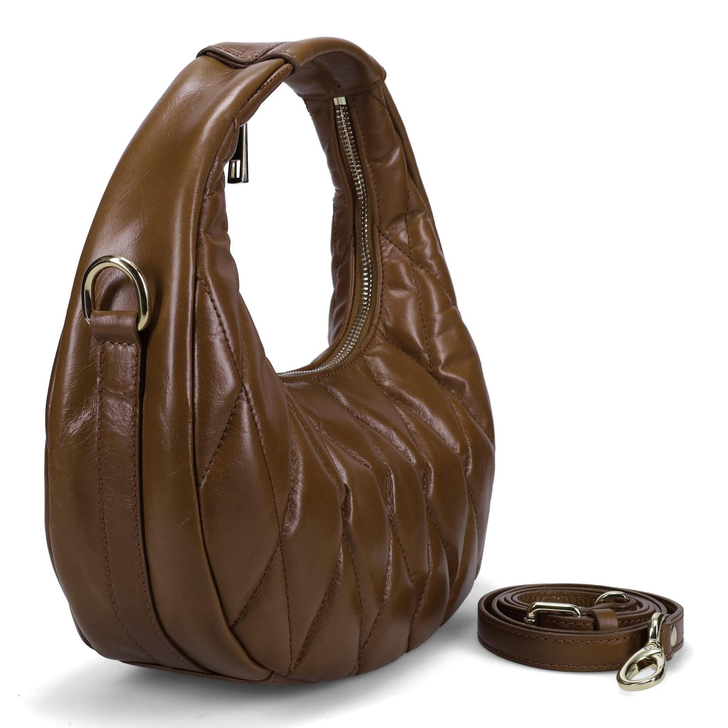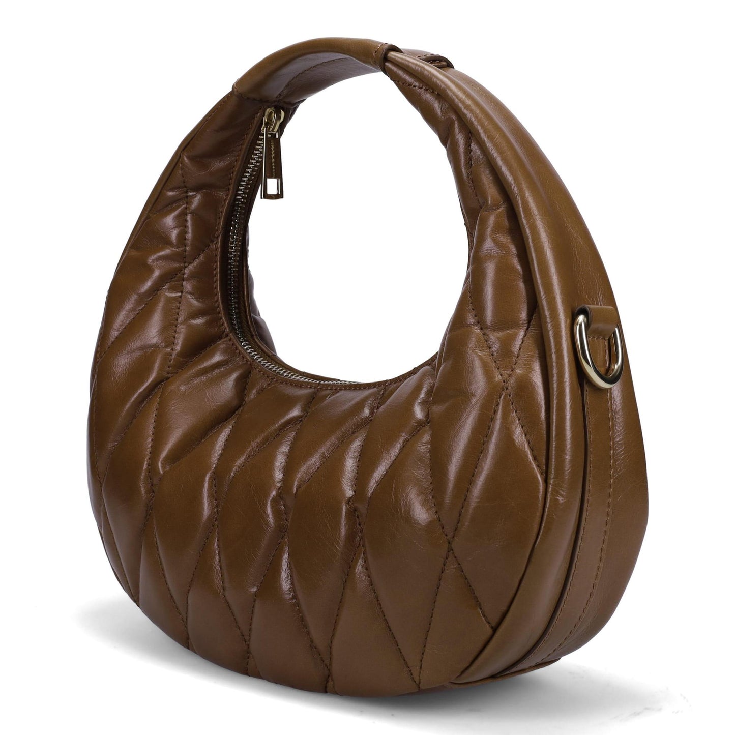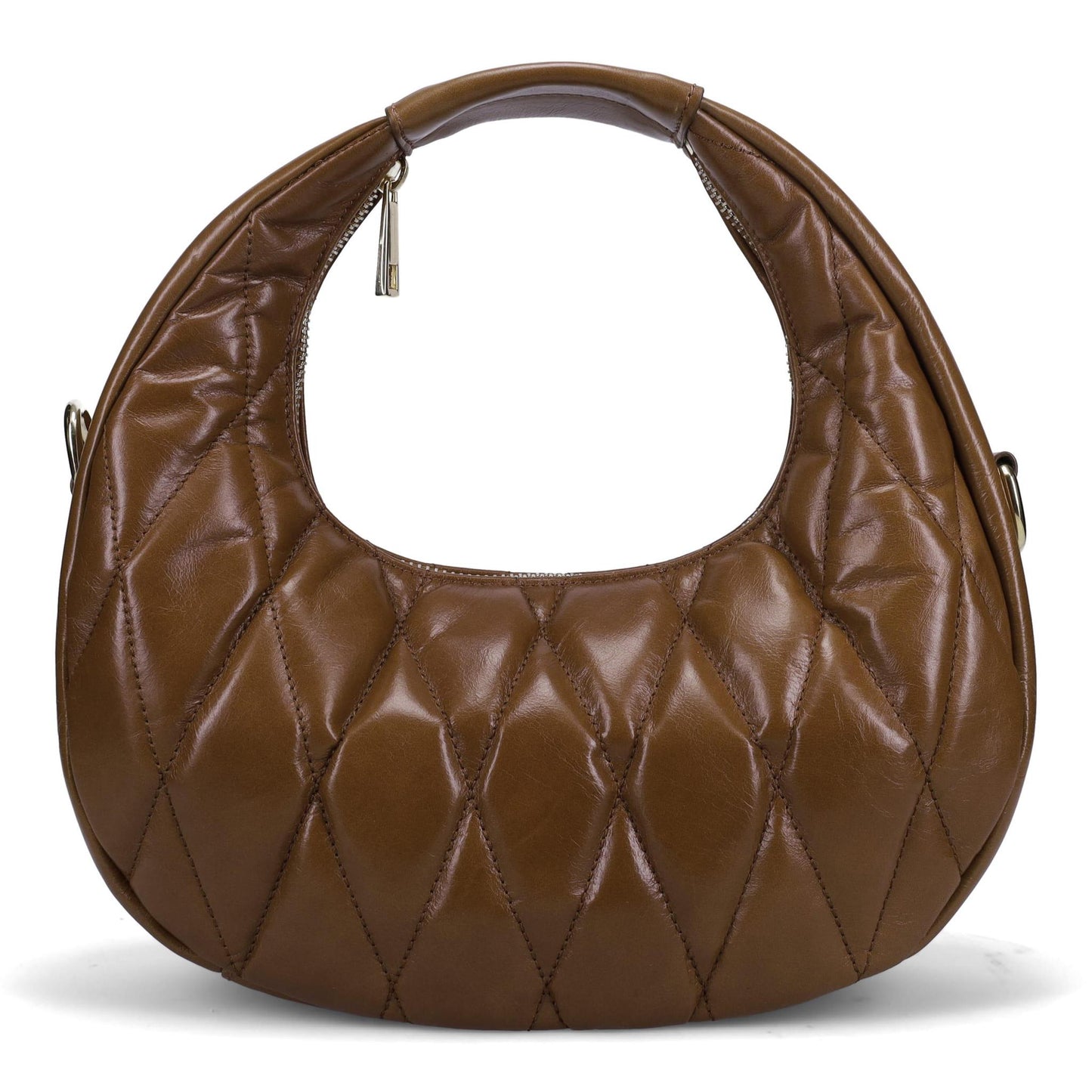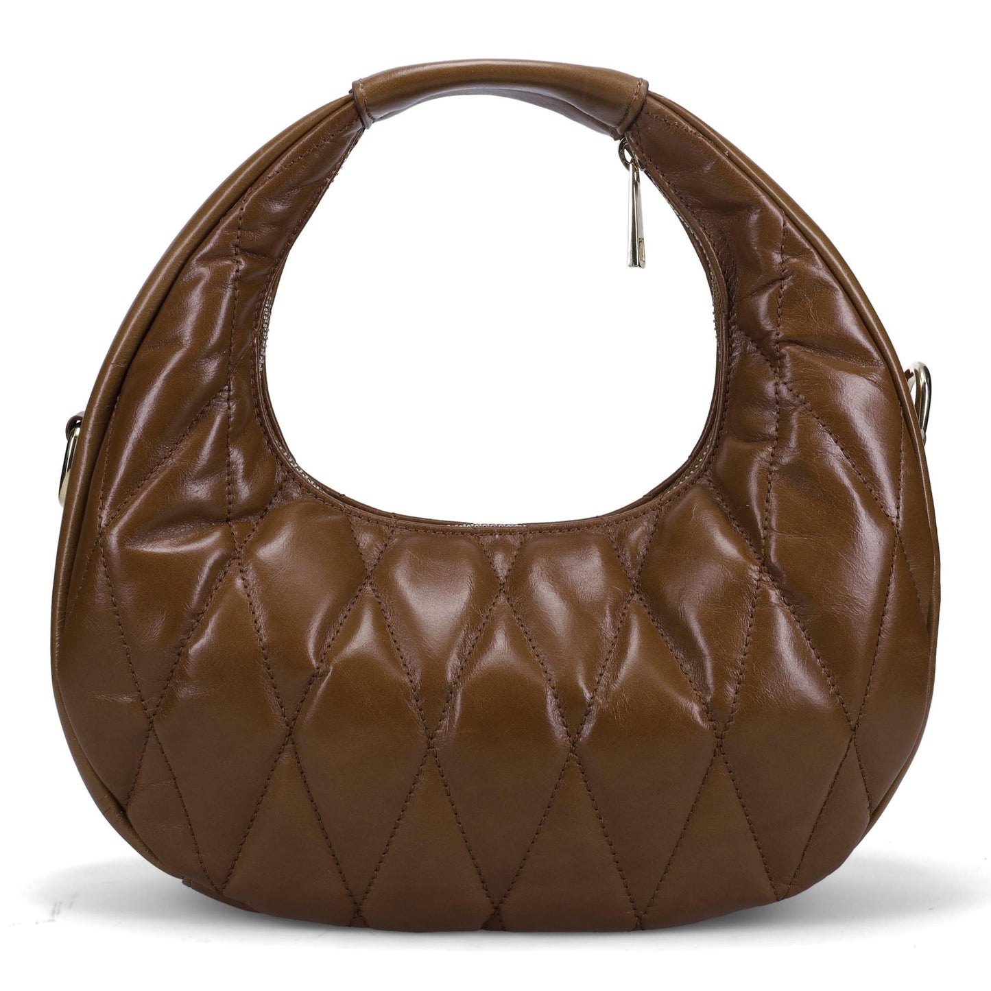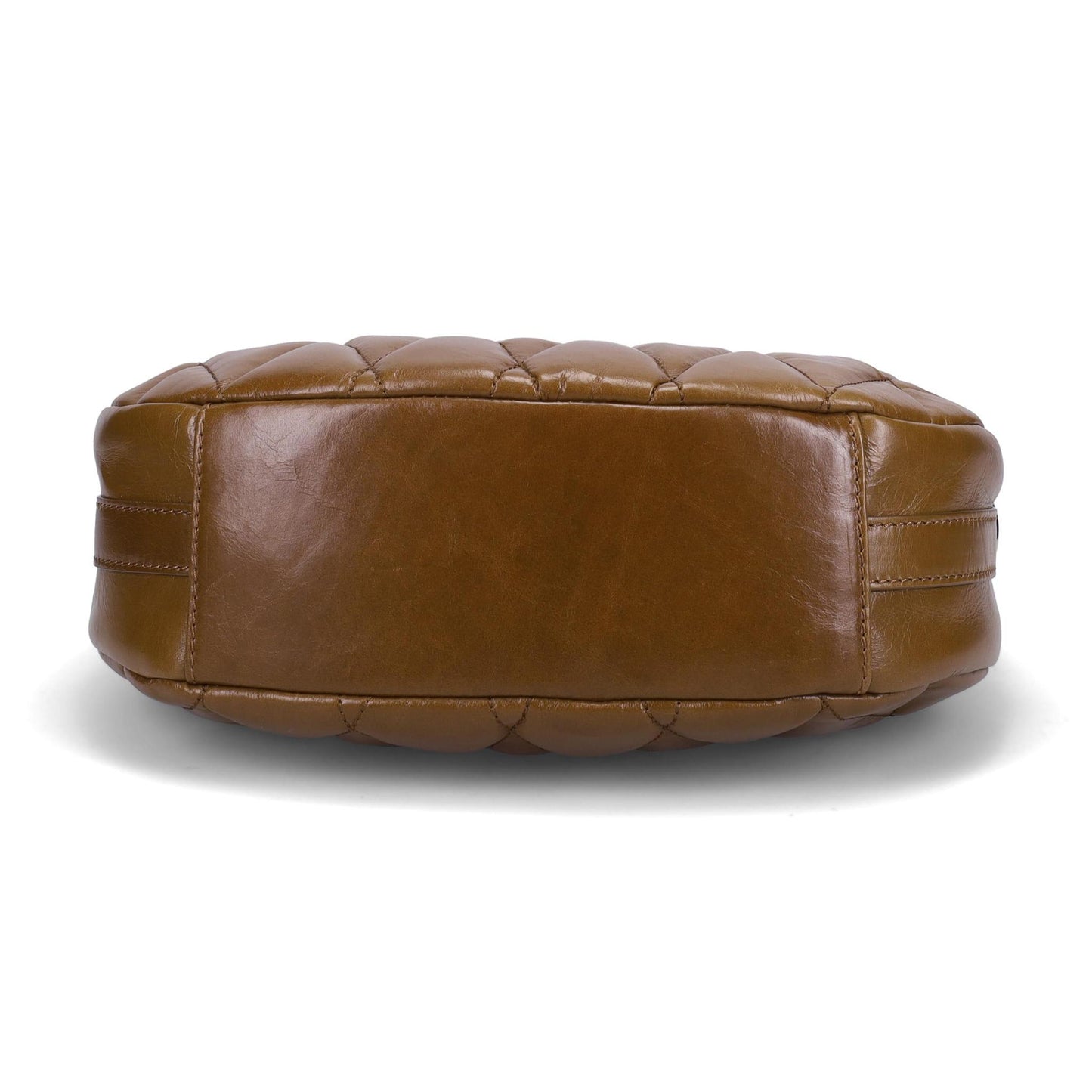 Chevelle Handbag in Quilted Antique Calf. Jewelry Grade Platino Hardware. Top Zip Closure. Made in Italy.