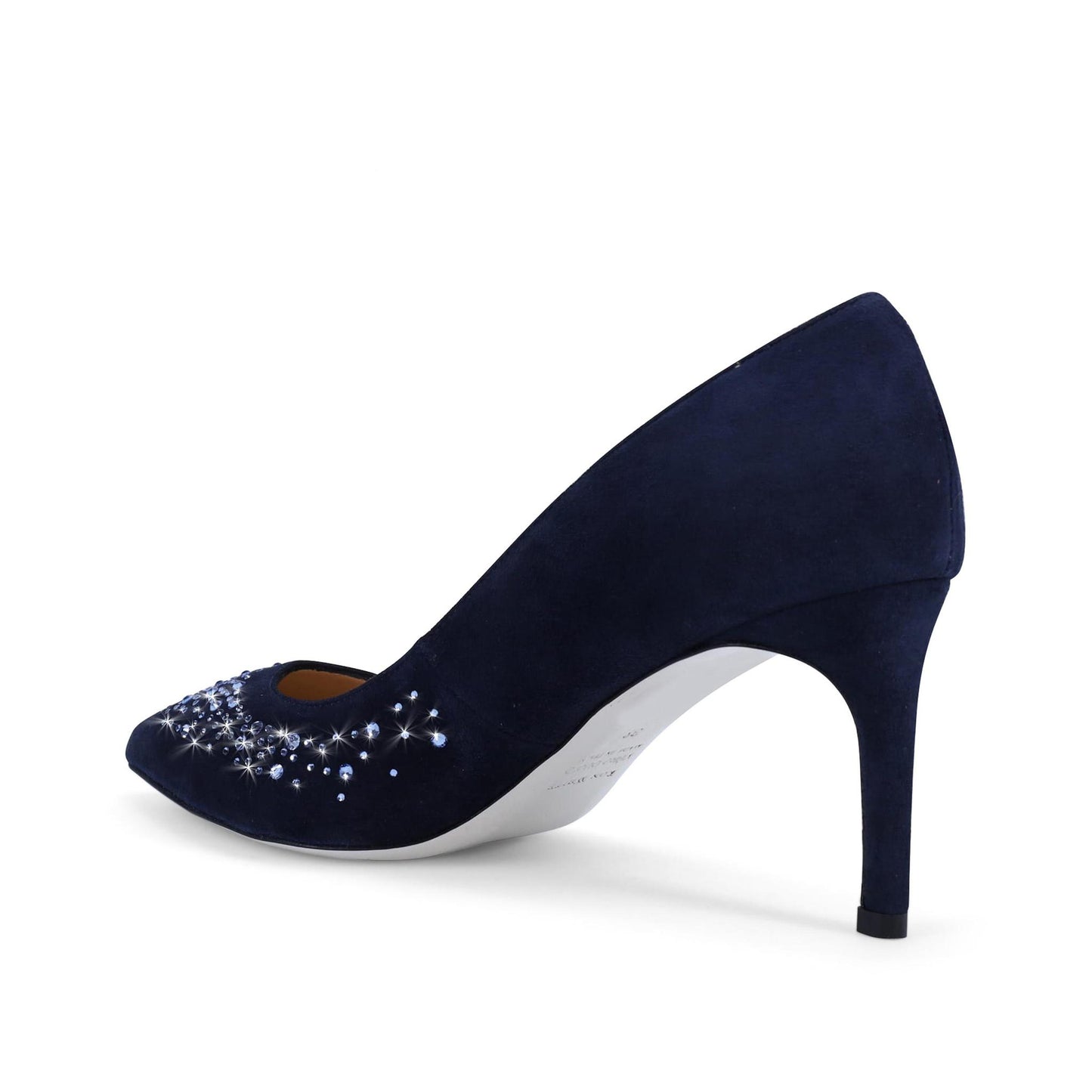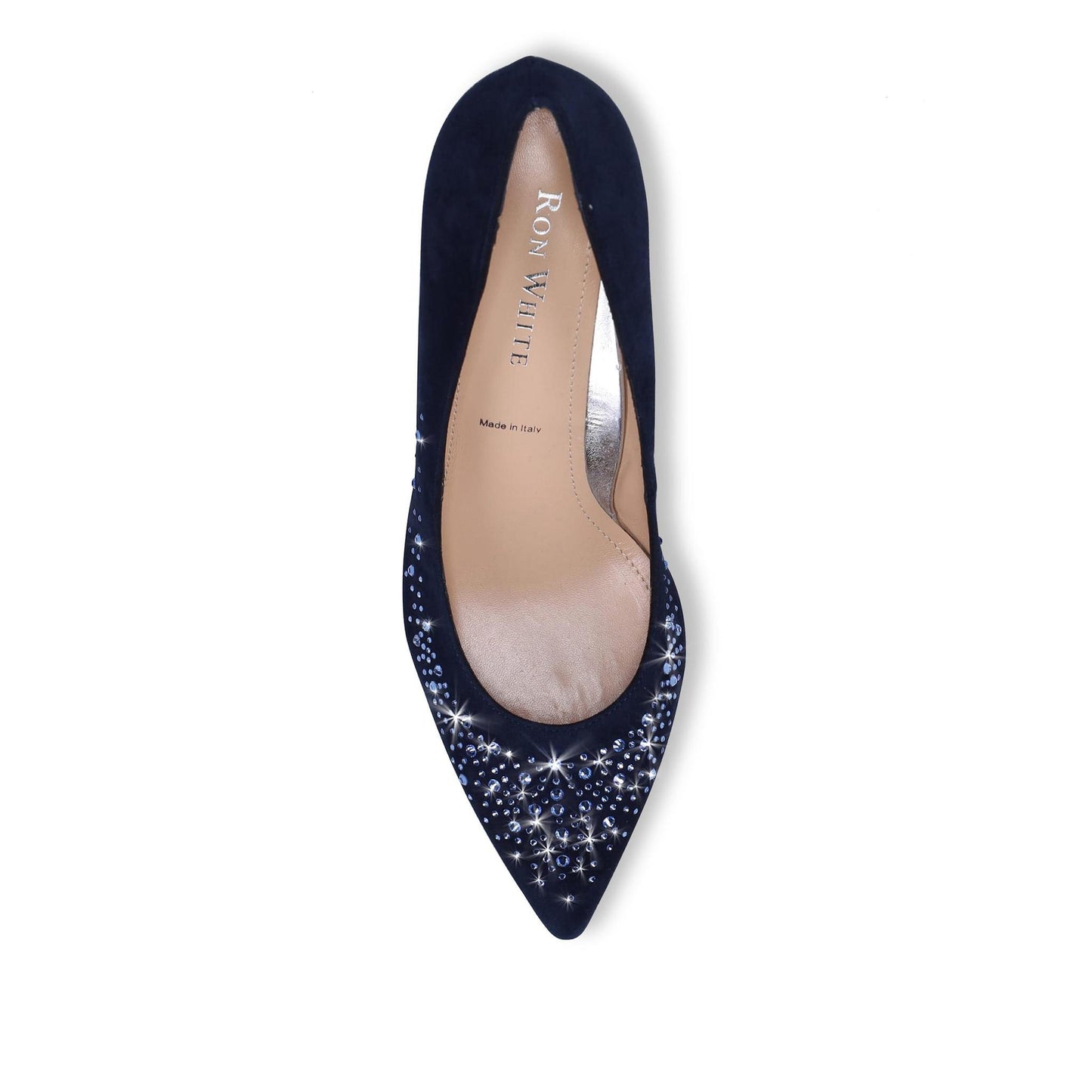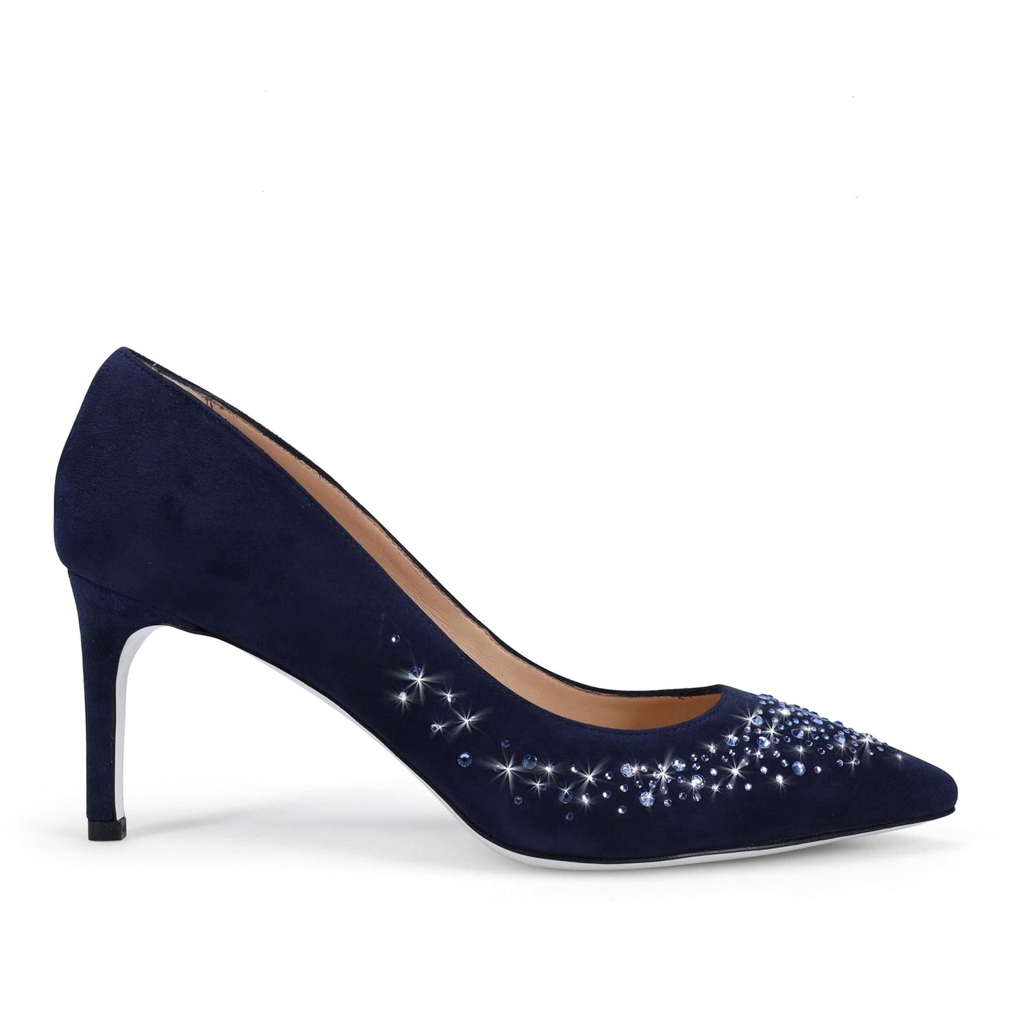 Cindy Bling in Weatherproof Cashmere Suede with Swarovski Crystals. Patent Wrapped Heel. Arch Support & Double Padding. Made in Italy.