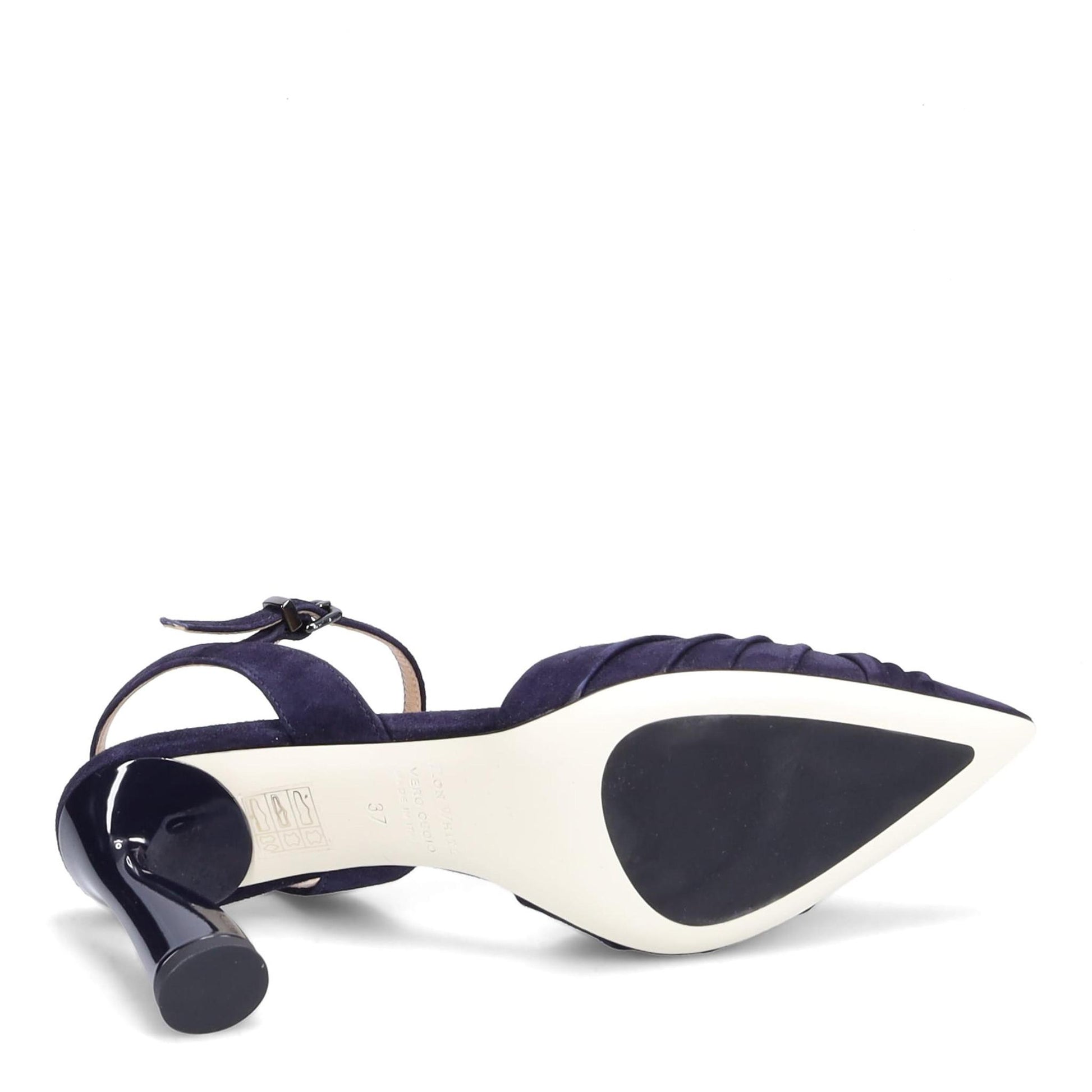 Dahlia Pump in Weatherproof Cashmere Suede with Gloss Heel. Adjustable Ankle Strap Double Padding. Made in Italy.