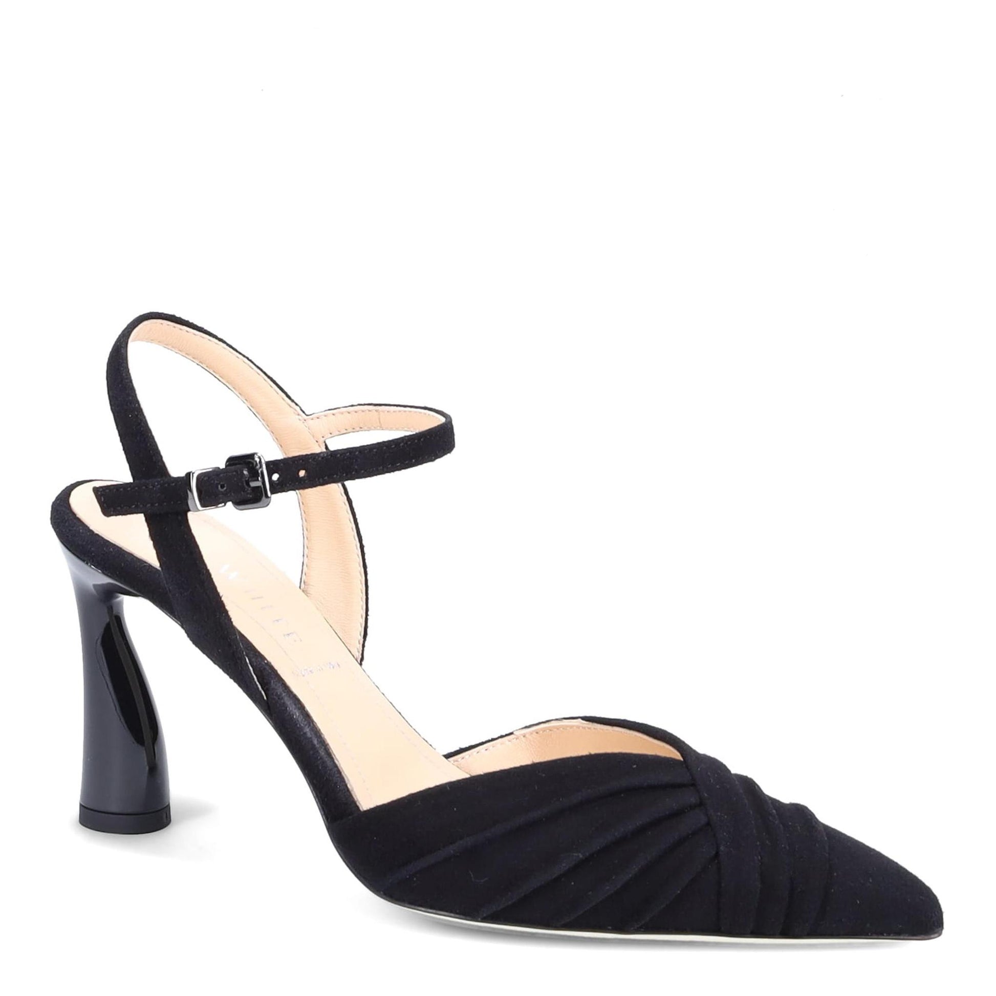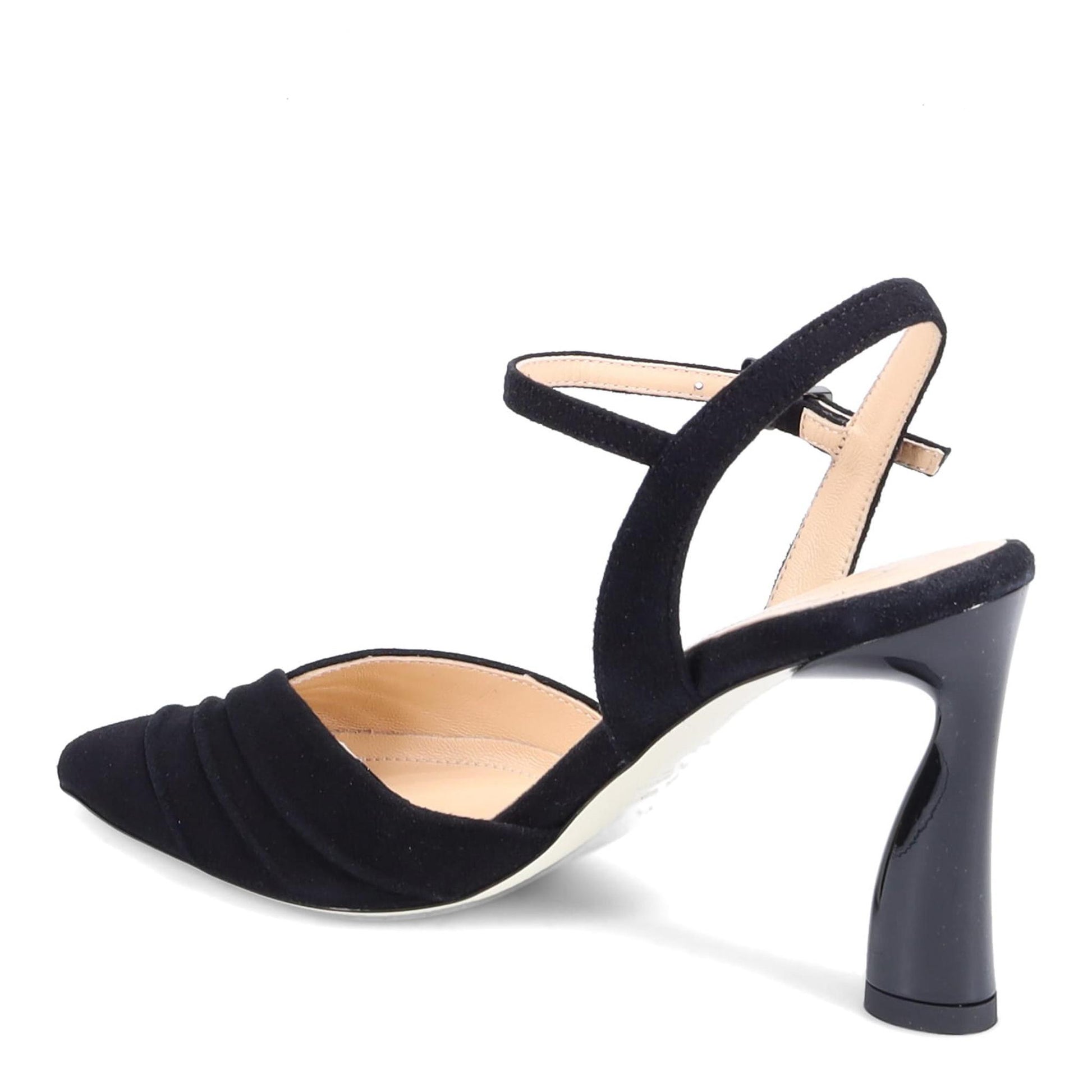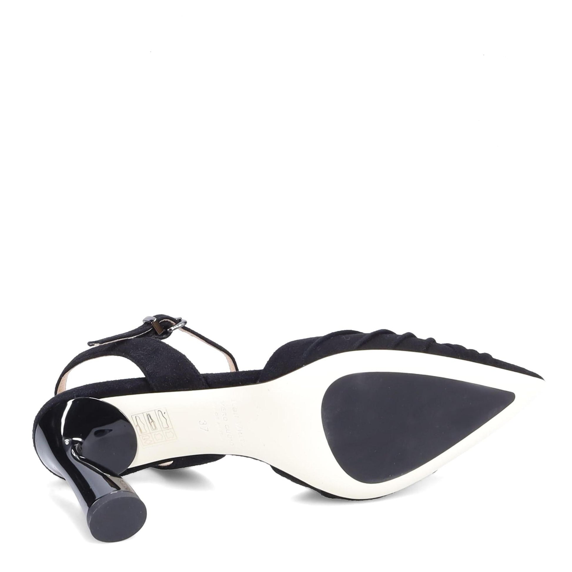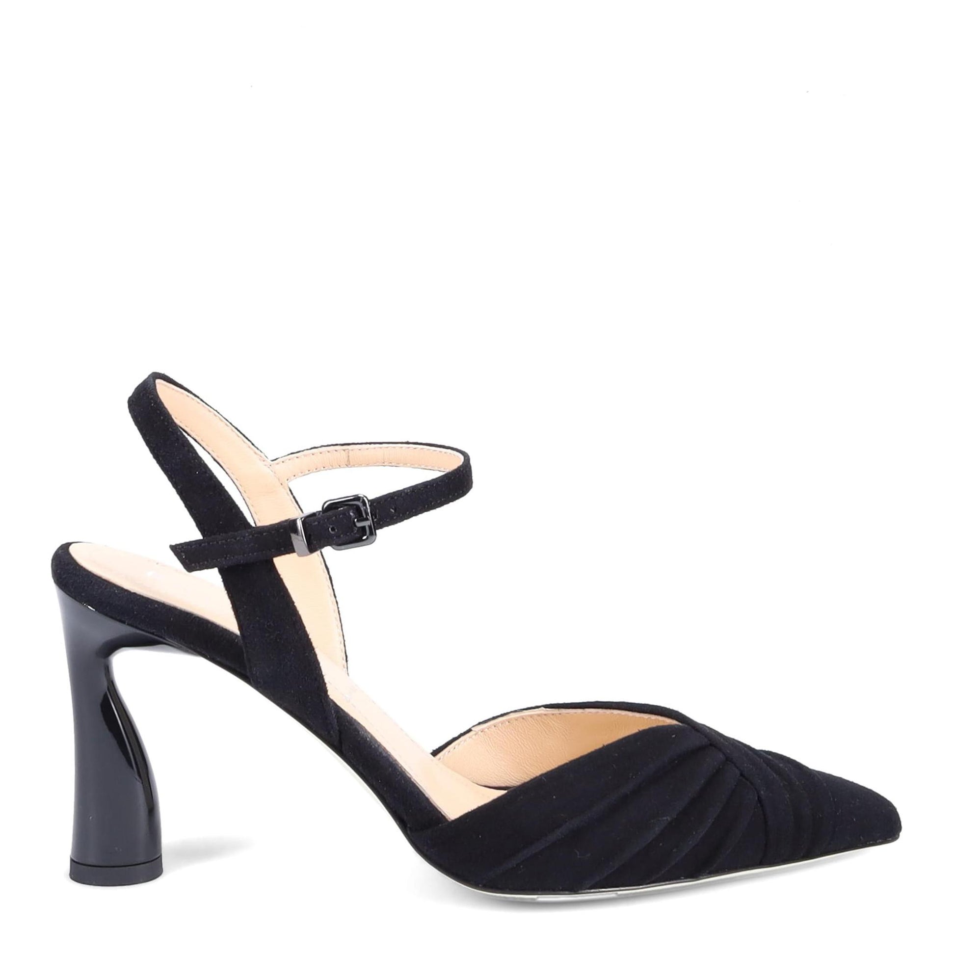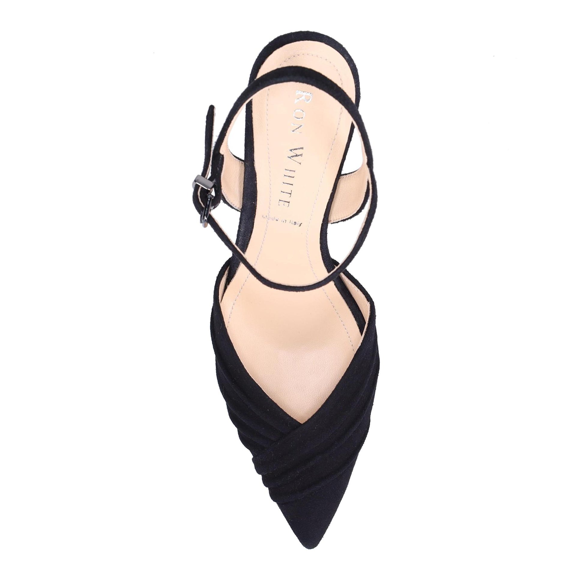 Dahlia Pump in Weatherproof Cashmere Suede with Gloss Heel. Adjustable Ankle Strap Double Padding. Made in Italy.