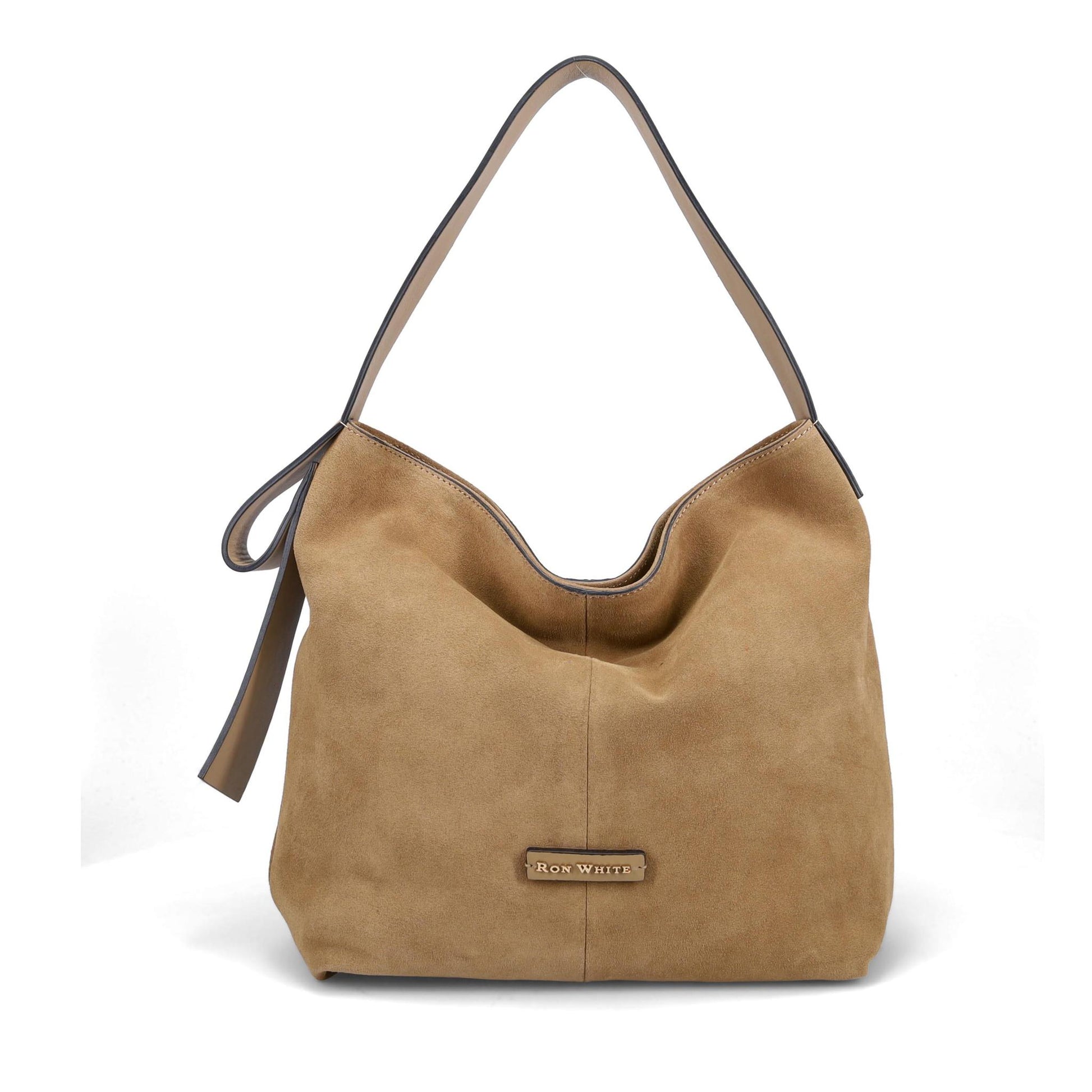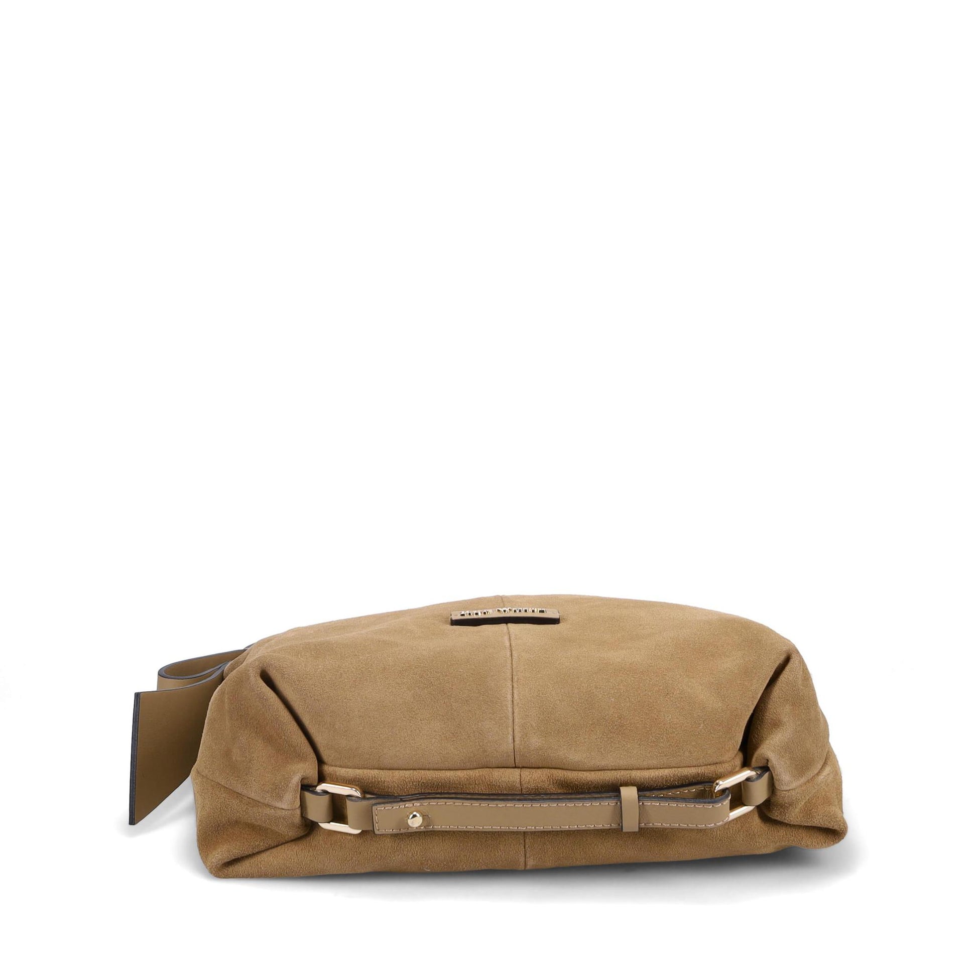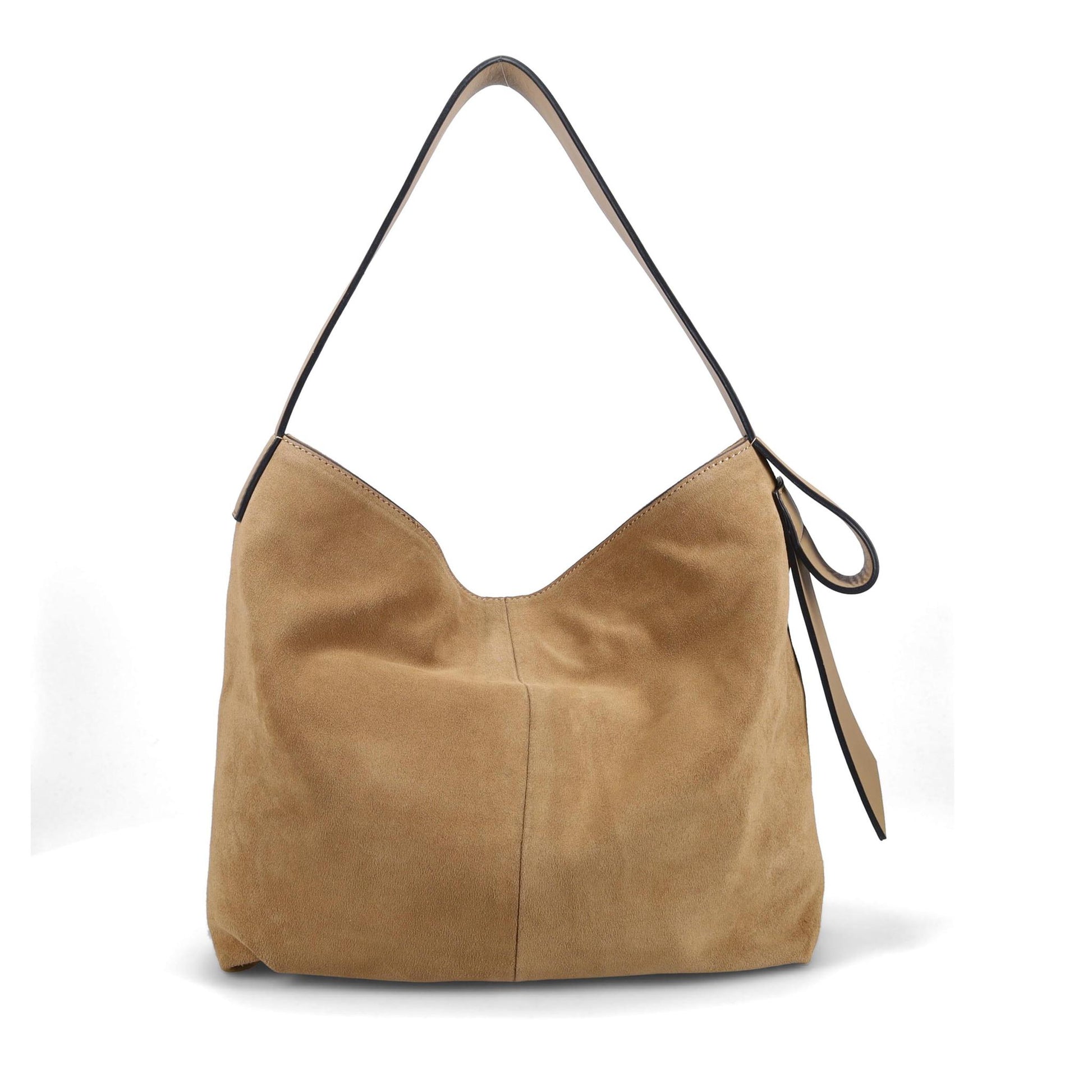 Dalo Hobo in Oiled Suede with Calf Trim. Jewelry Grade Platino Hardware. Top Zip Closure. Made in Italy.