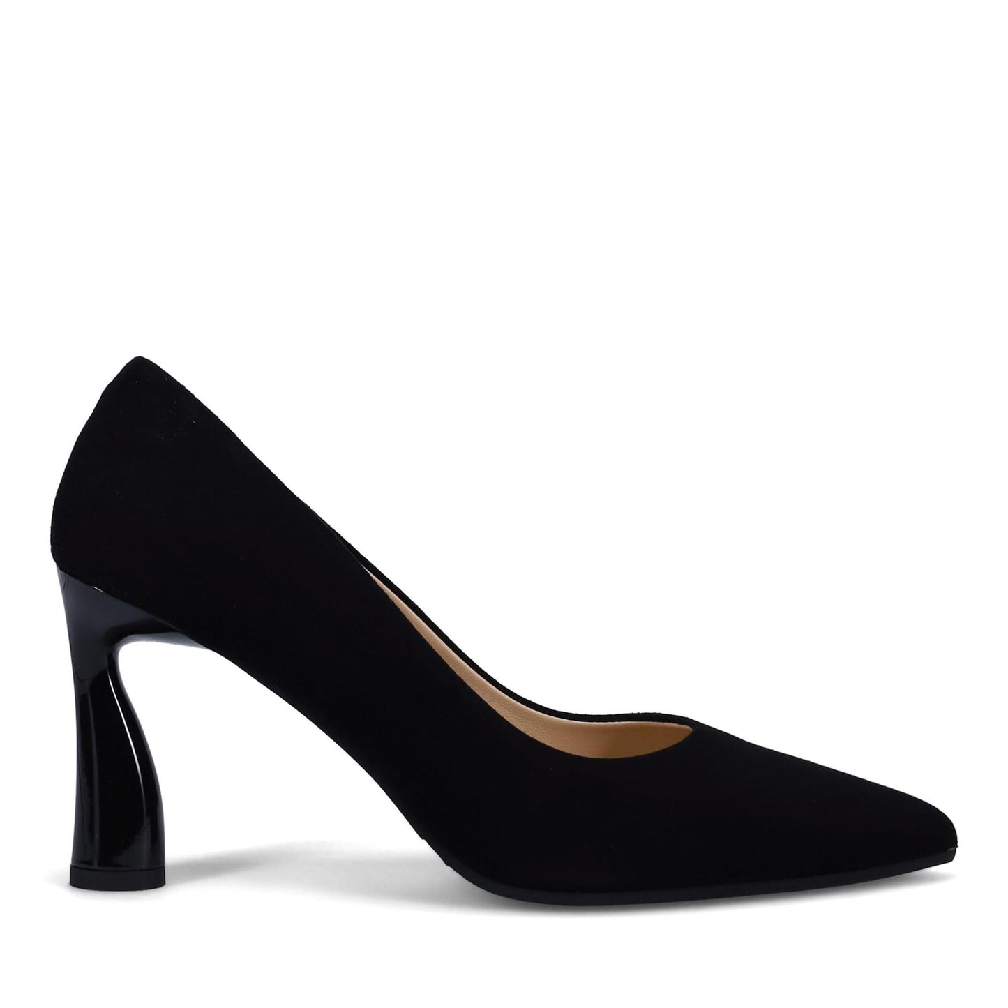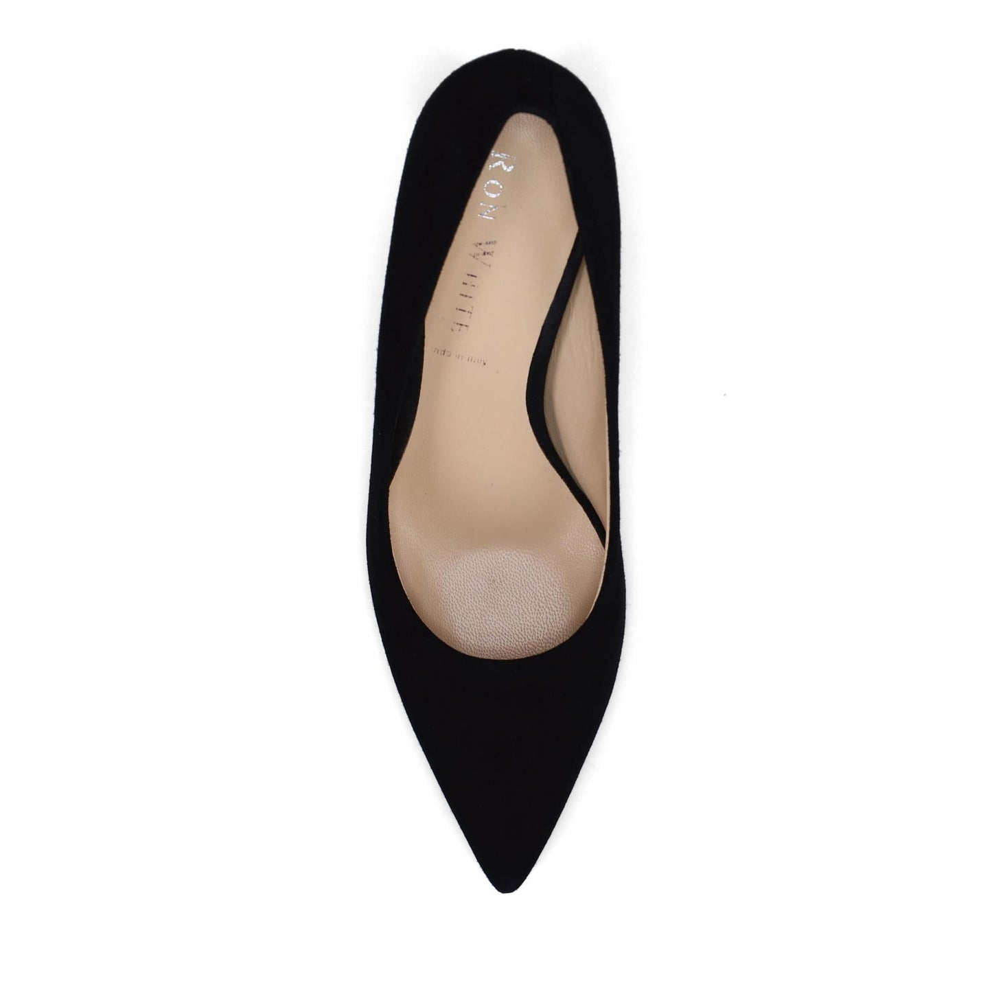 Delphine Pump in Weatherproof Cashmere Suede with Gloss Heel. Double Padding. Made in Italy.