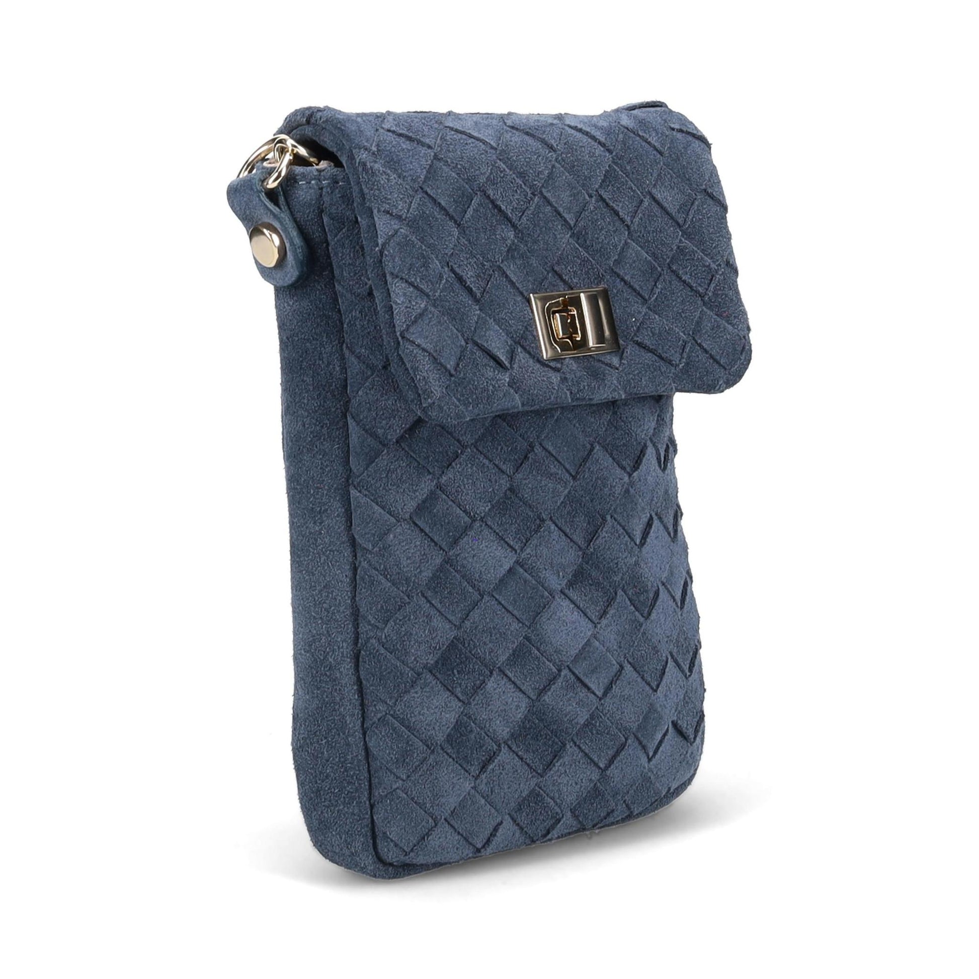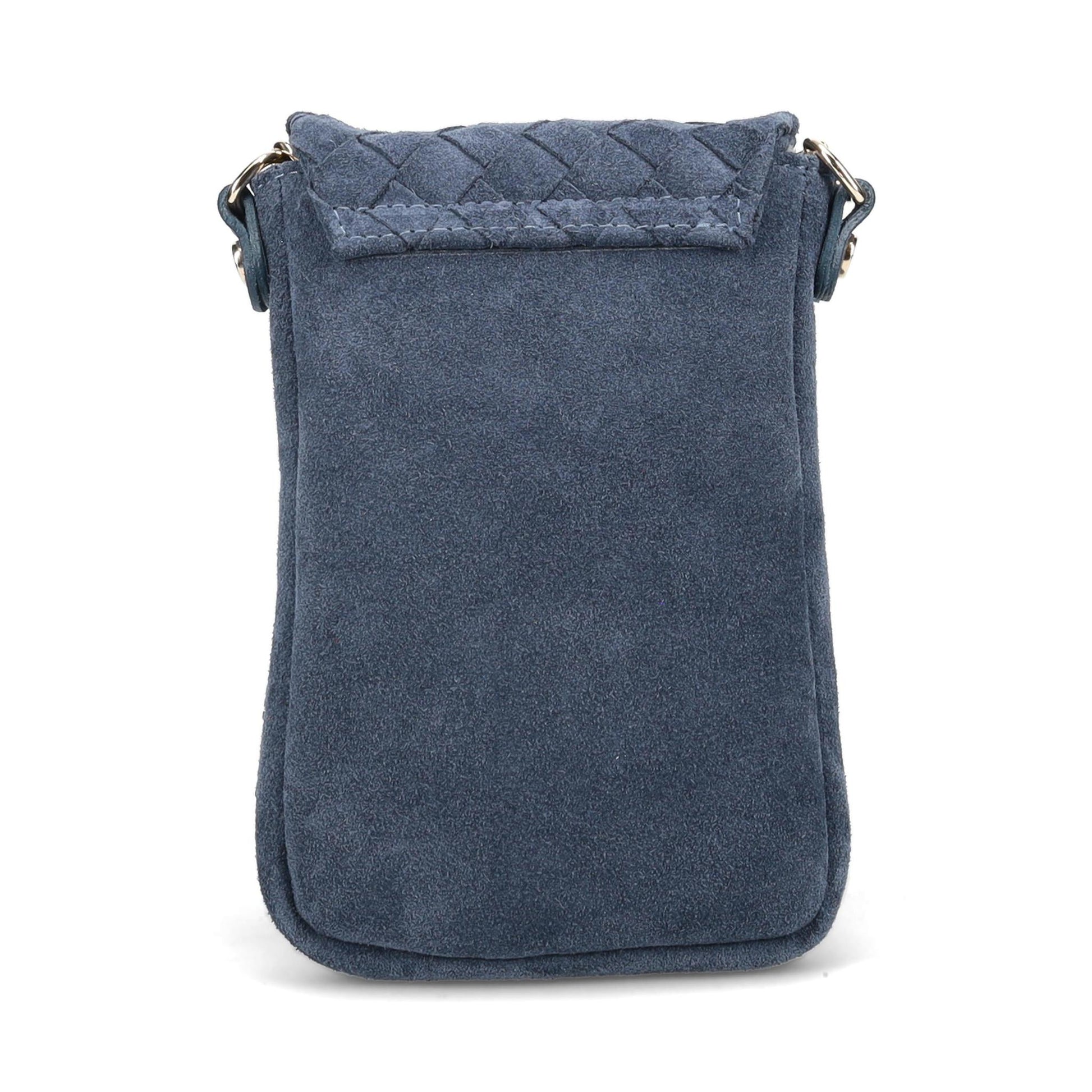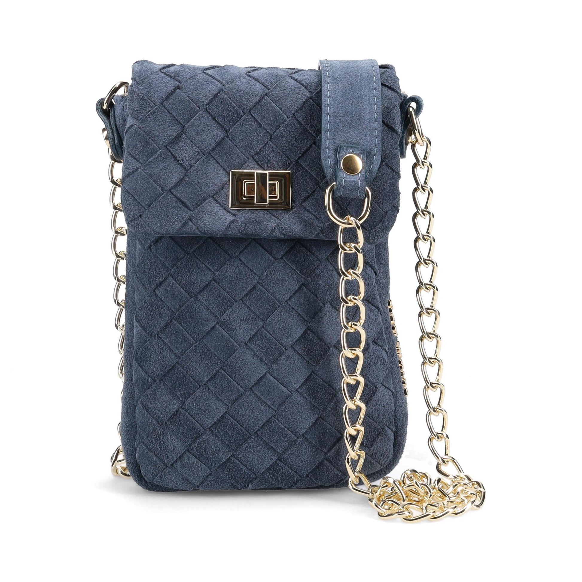 Edessa Crossbody Handbag in Hand Woven Suede. Jewelry Grade Hardware. Top flap with Lock closure. Made in Italy.