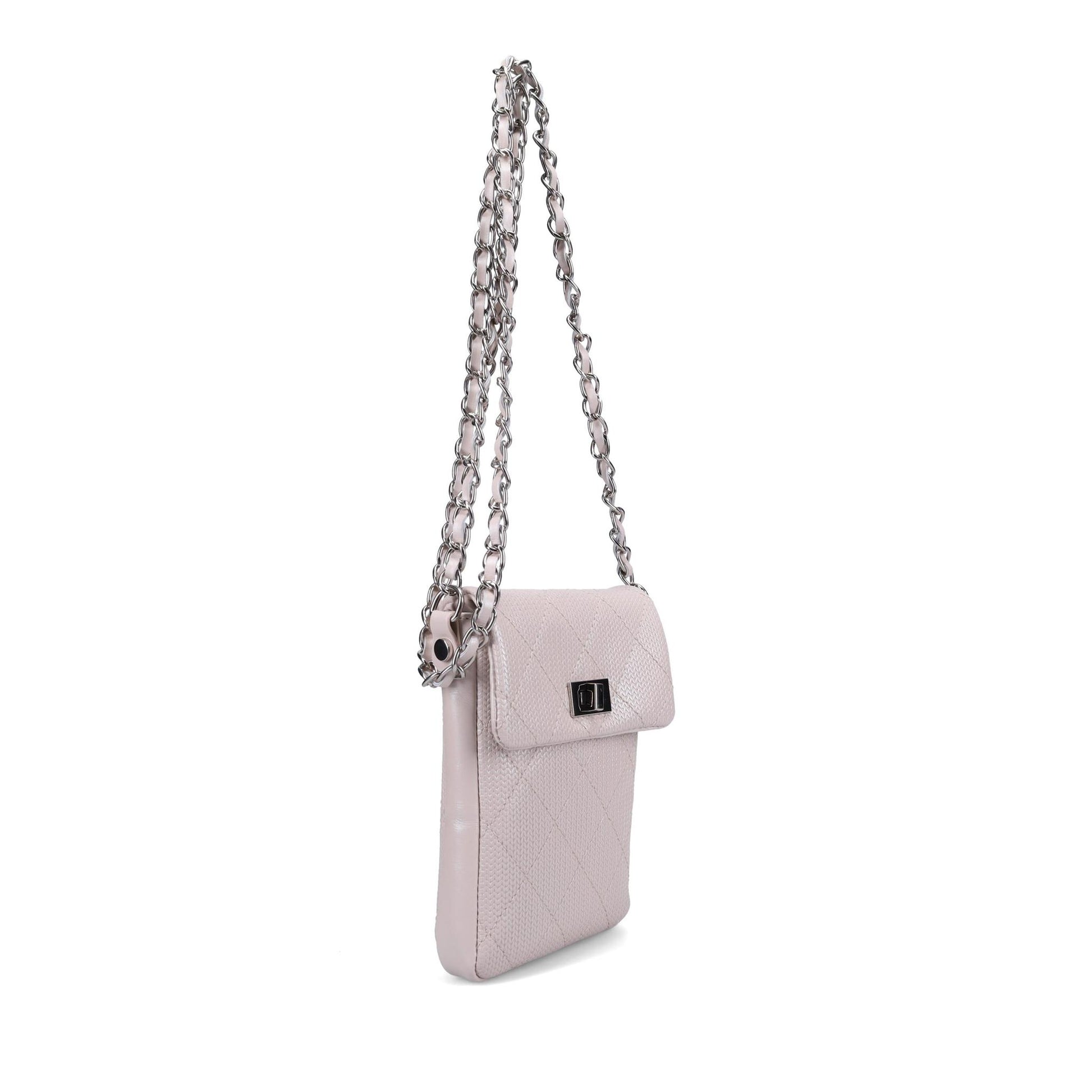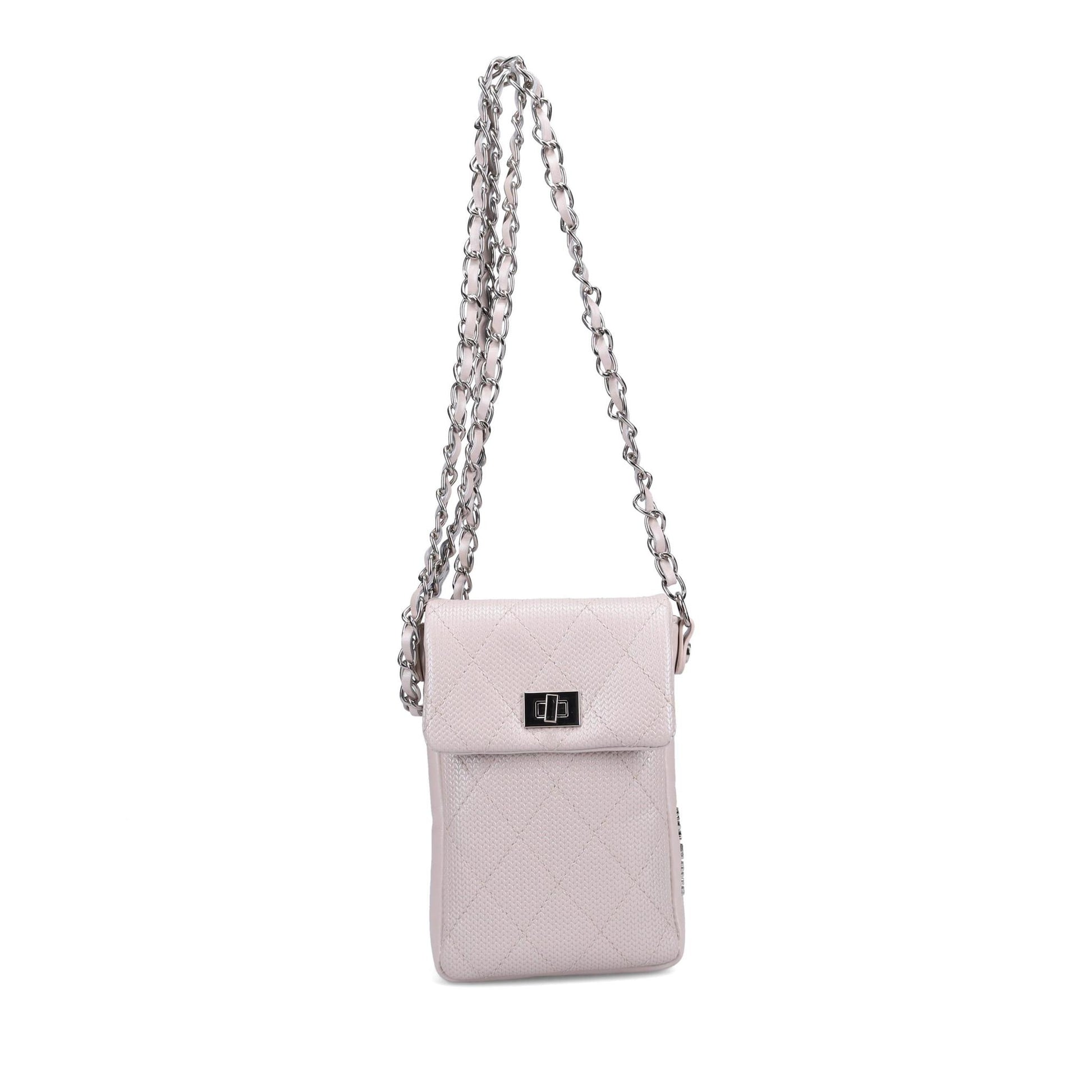 Special Features: Perfect mini Crossbody for running errands or an evening out, silver jewelry grade chain with pearlized calf shoulder piece, Made in Italy