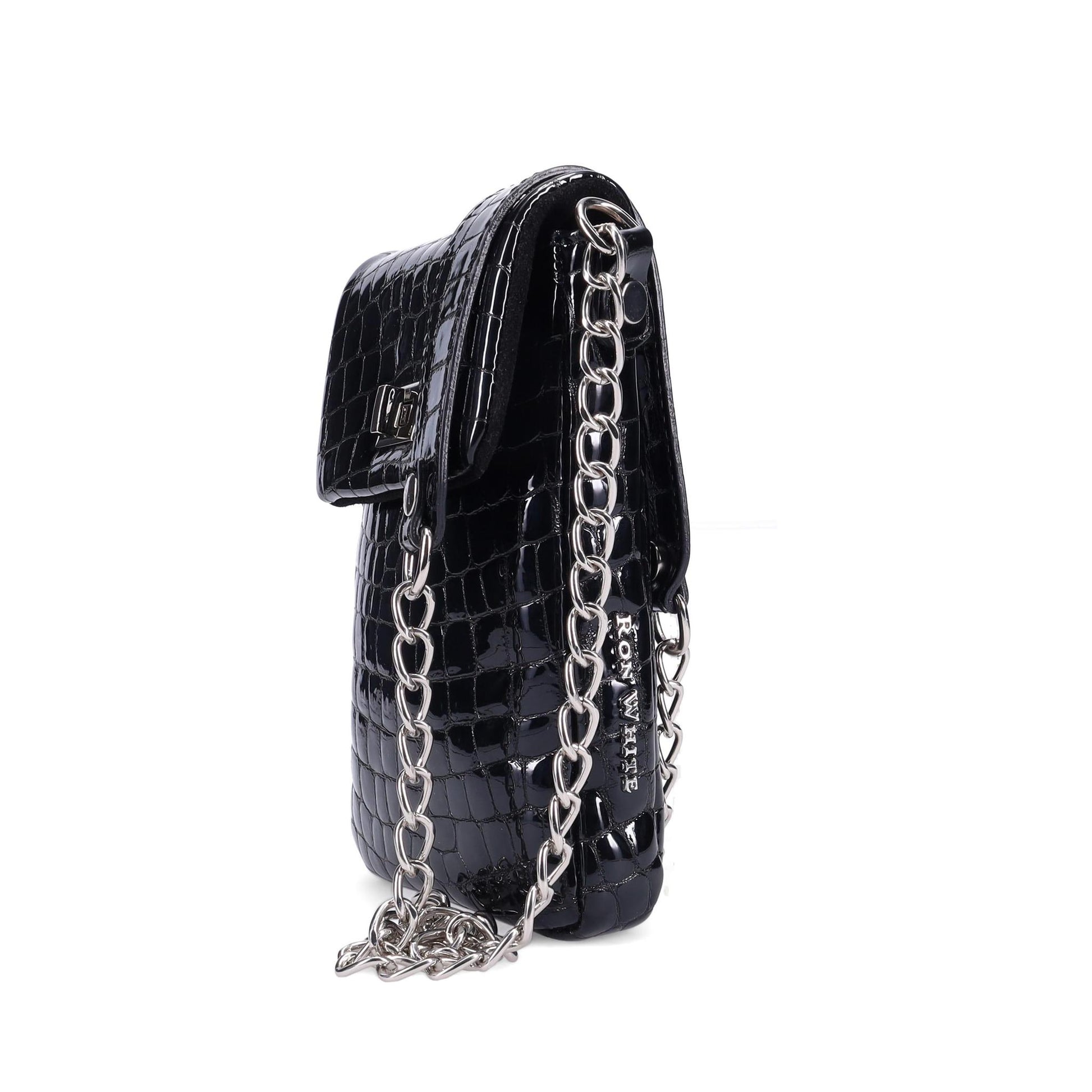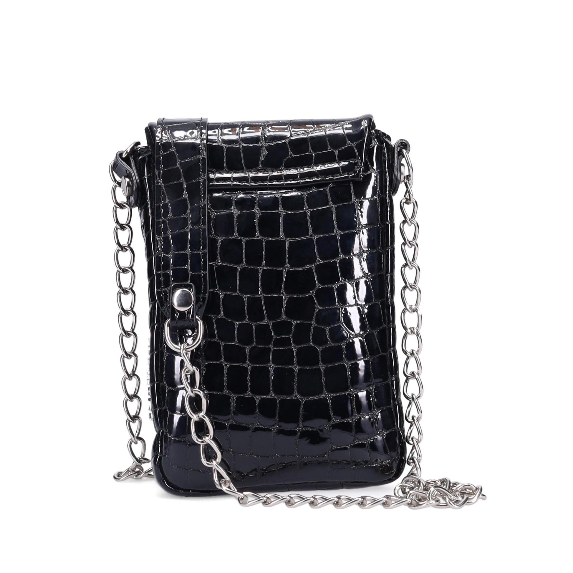 Special Features: Perfect mini Crossbody for running errands or an evening out, silver jewelry grade chain with pearlized Croco patent shoulder piece, Made in Italy