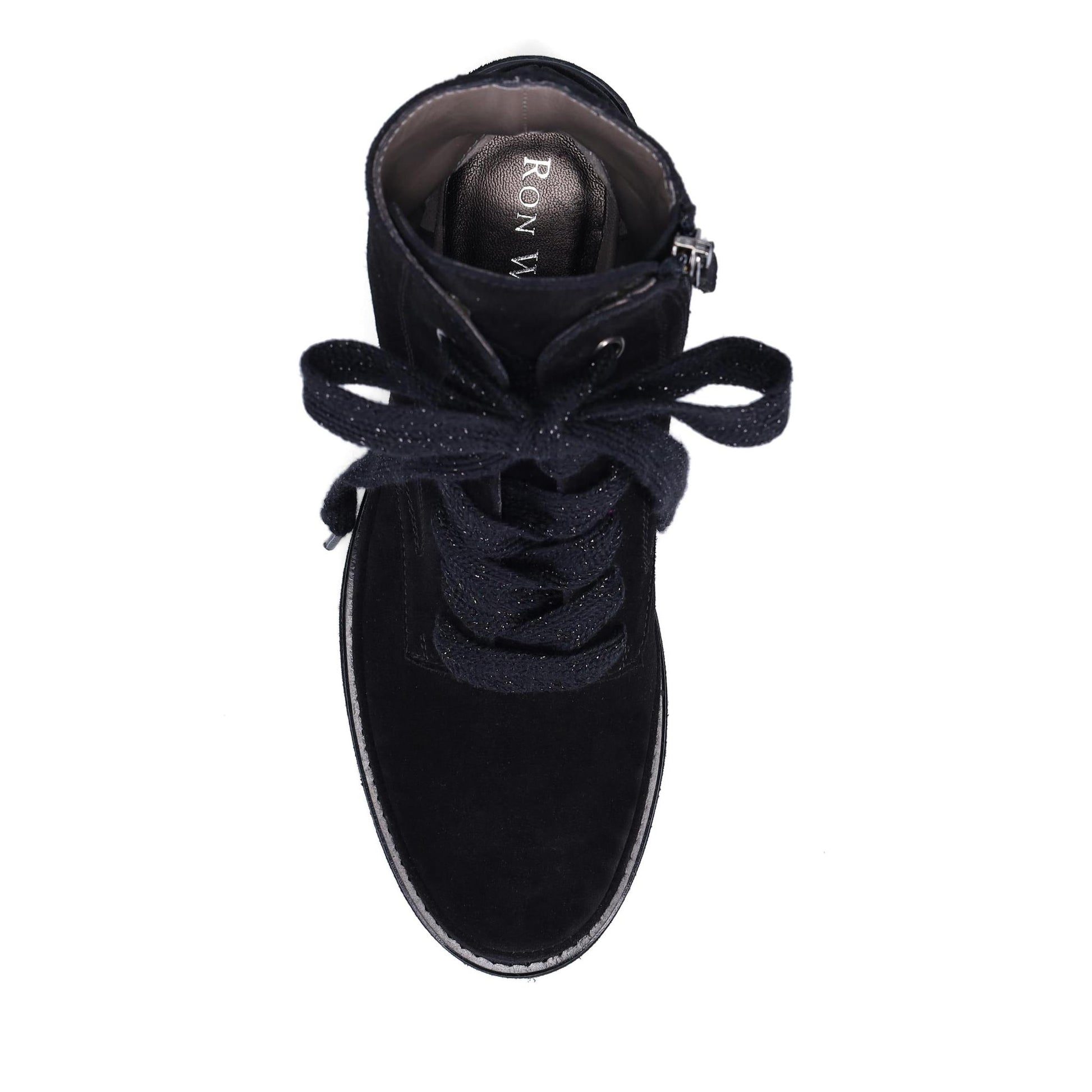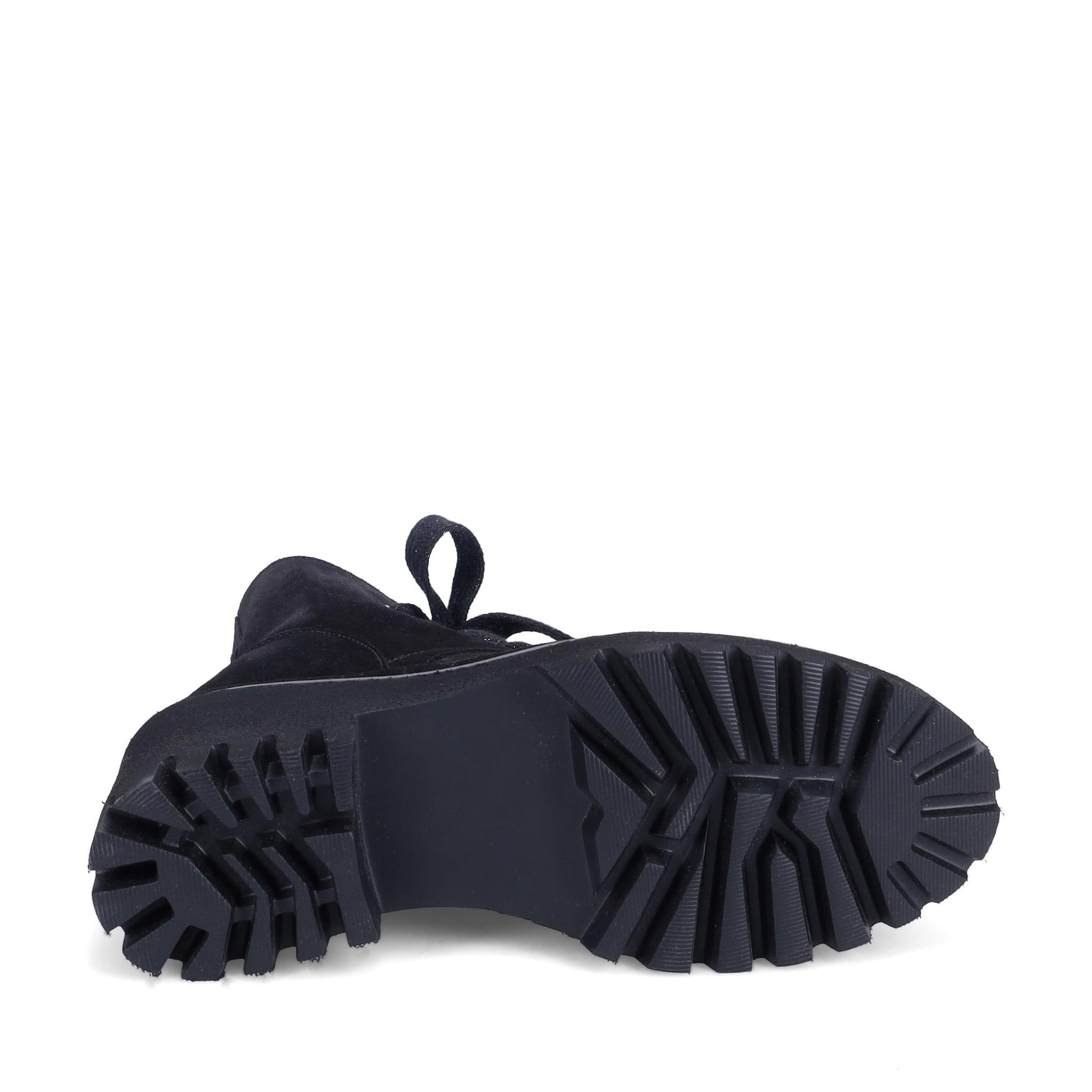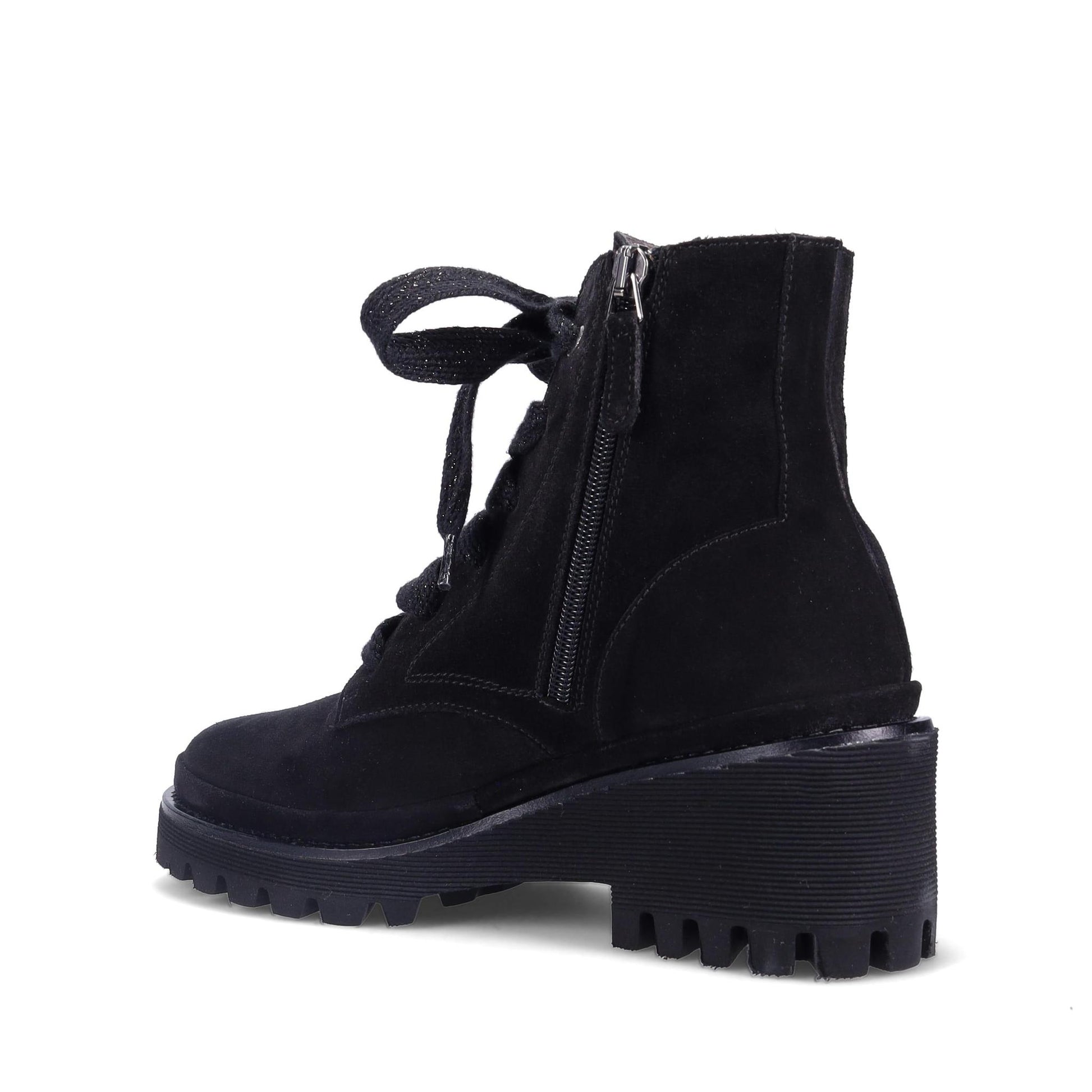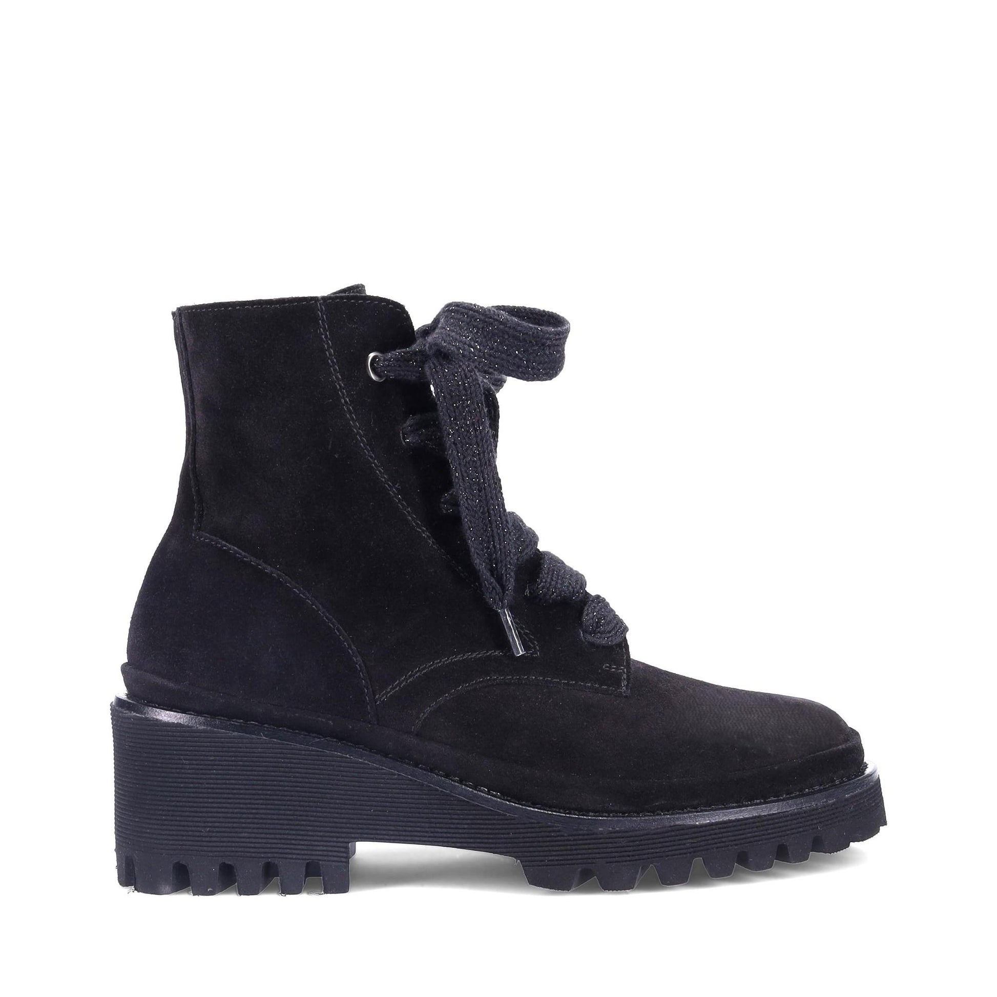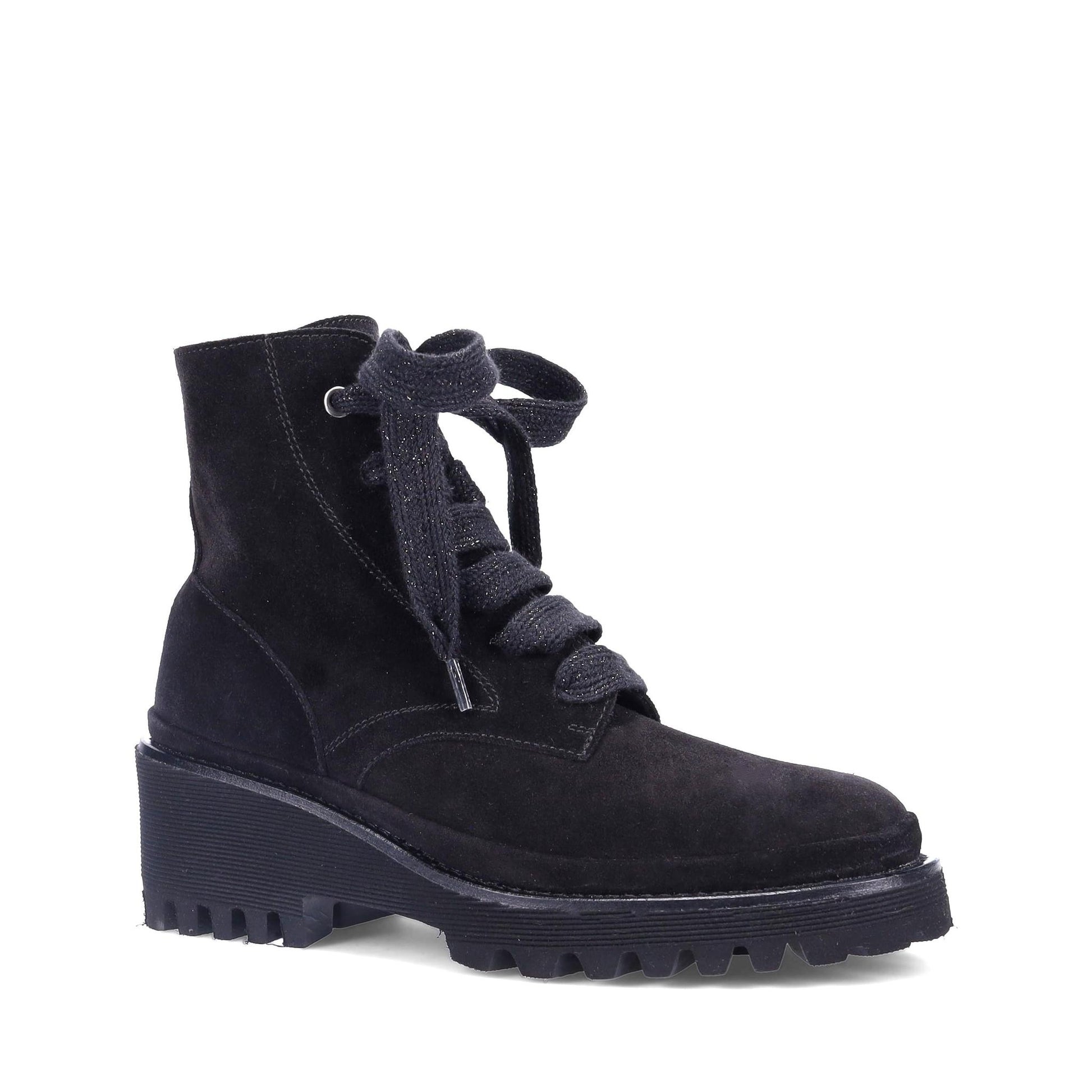 Eris Ankle Boot in Weatherproof Suede. Inside Zipper and Sweater Laces. Seamless Sacchetto Construction. Double Padding. Lightweight Rubber Lug Outsole. Made in Italy.