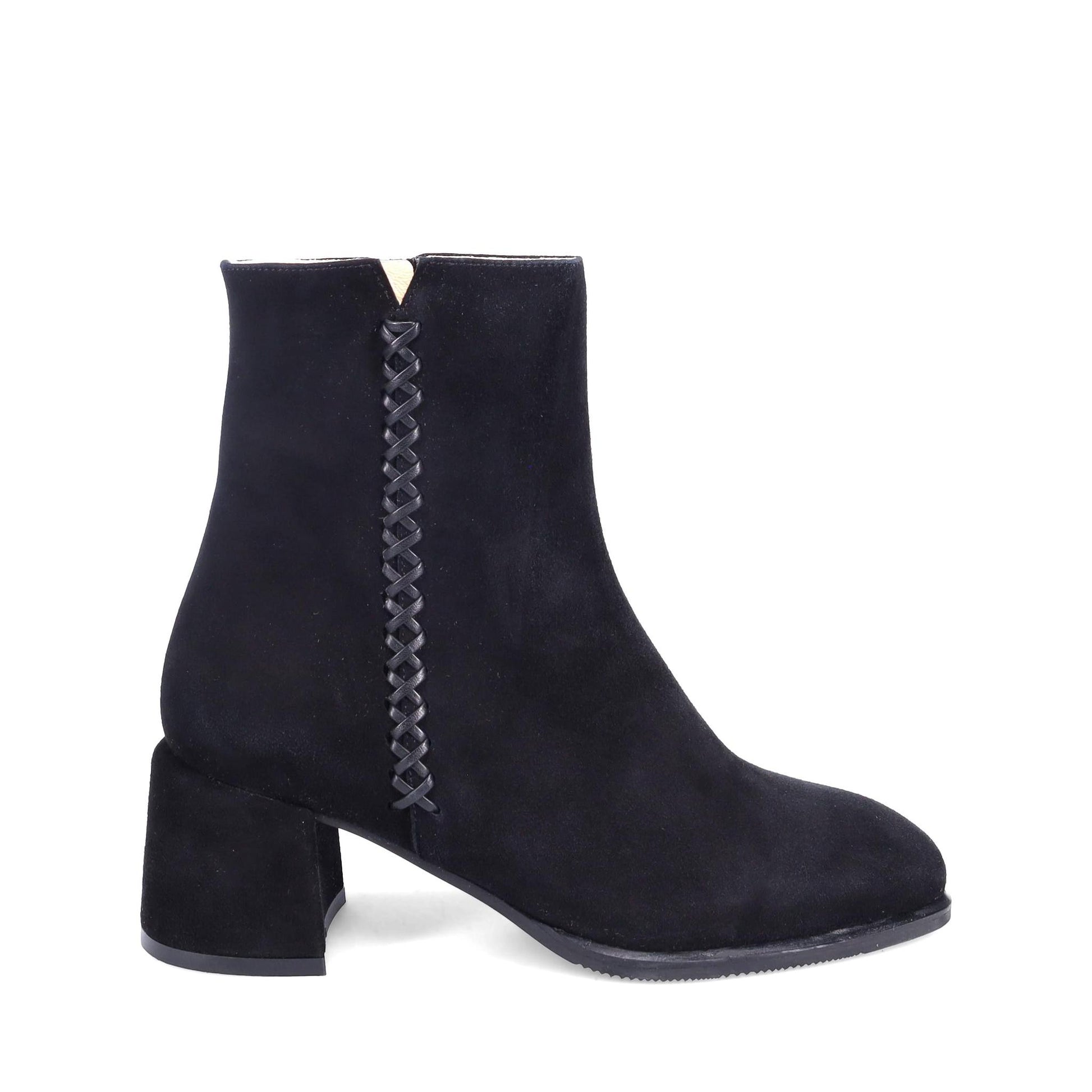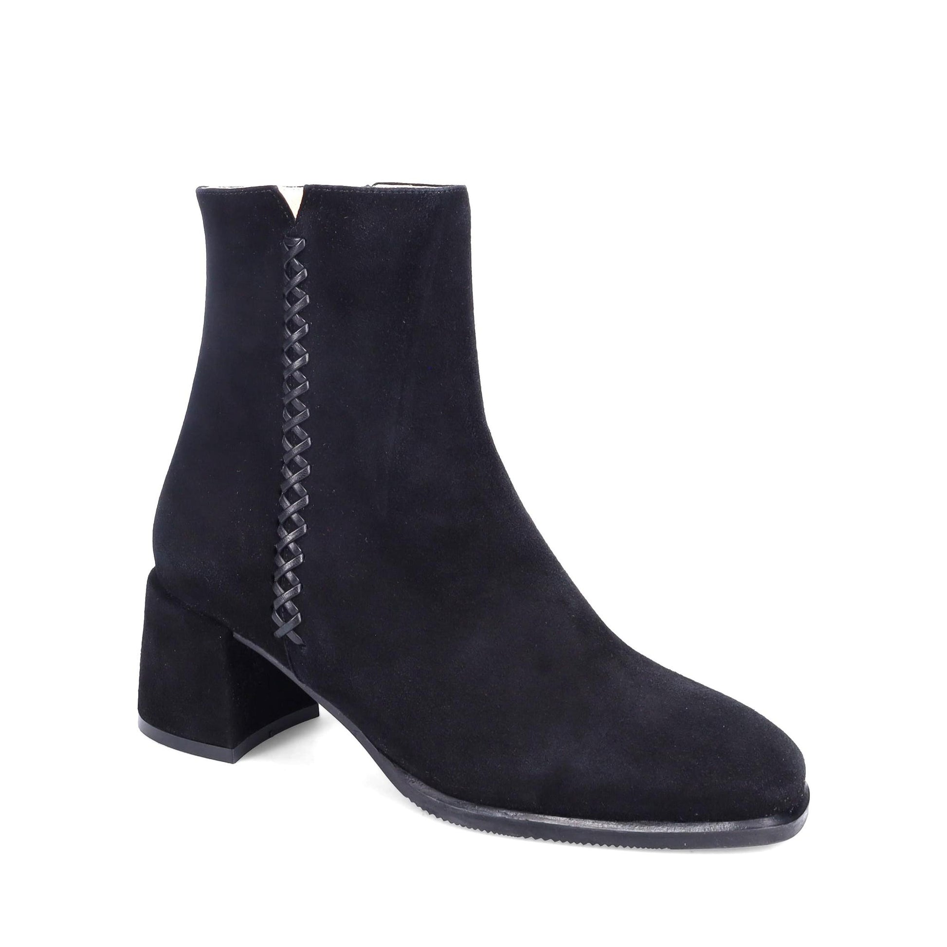 Evalina Ankle Boot in Weatherproof Cashmere Suede with Whip Stitch detail. Inside Zipper. Double Padding. Made in Italy.