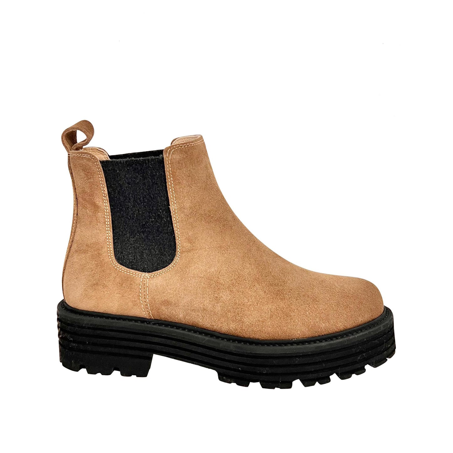 Faith Ankle Boot in Weatherproof Suede with Flannel Elastic Gore. Double Padding. Made in Italy.