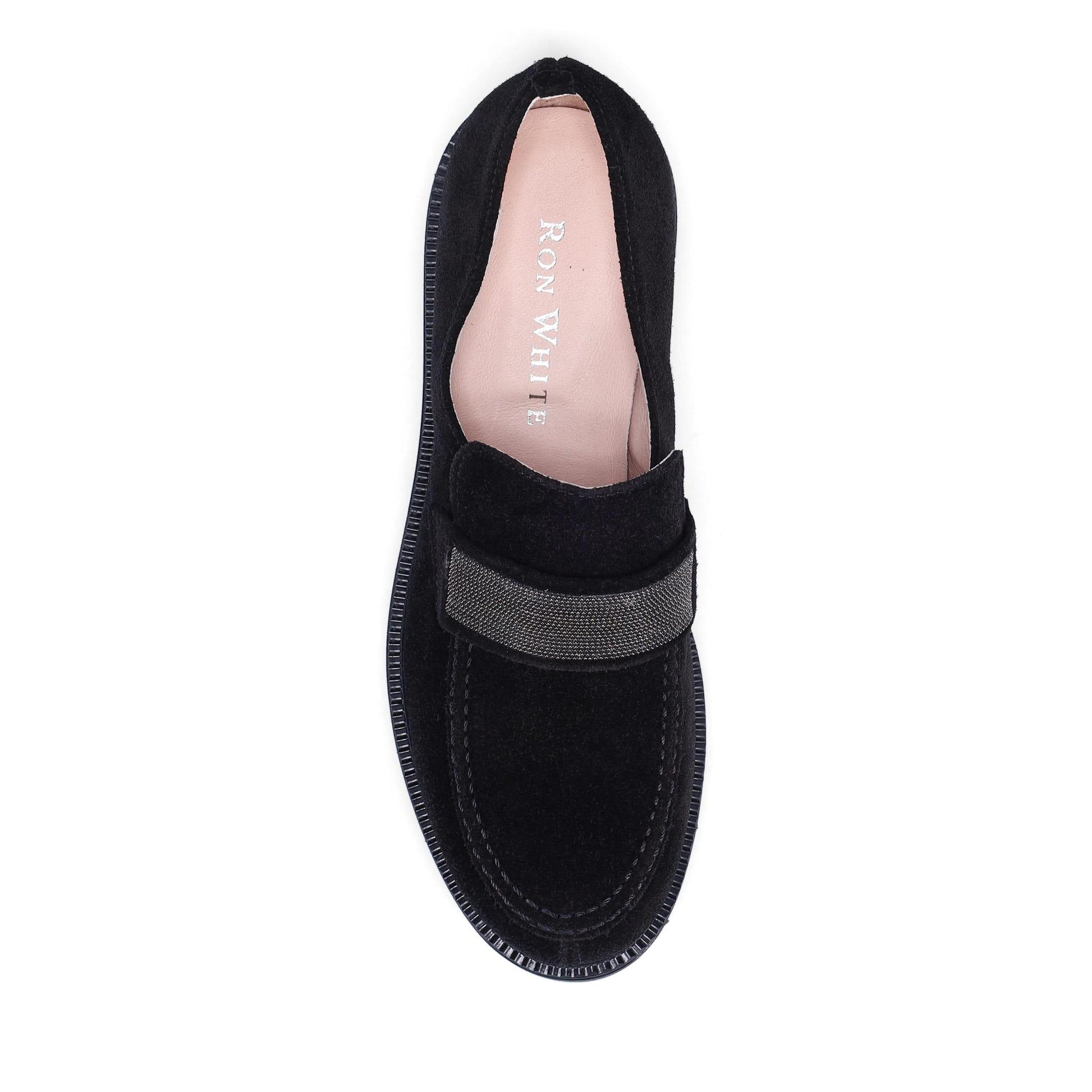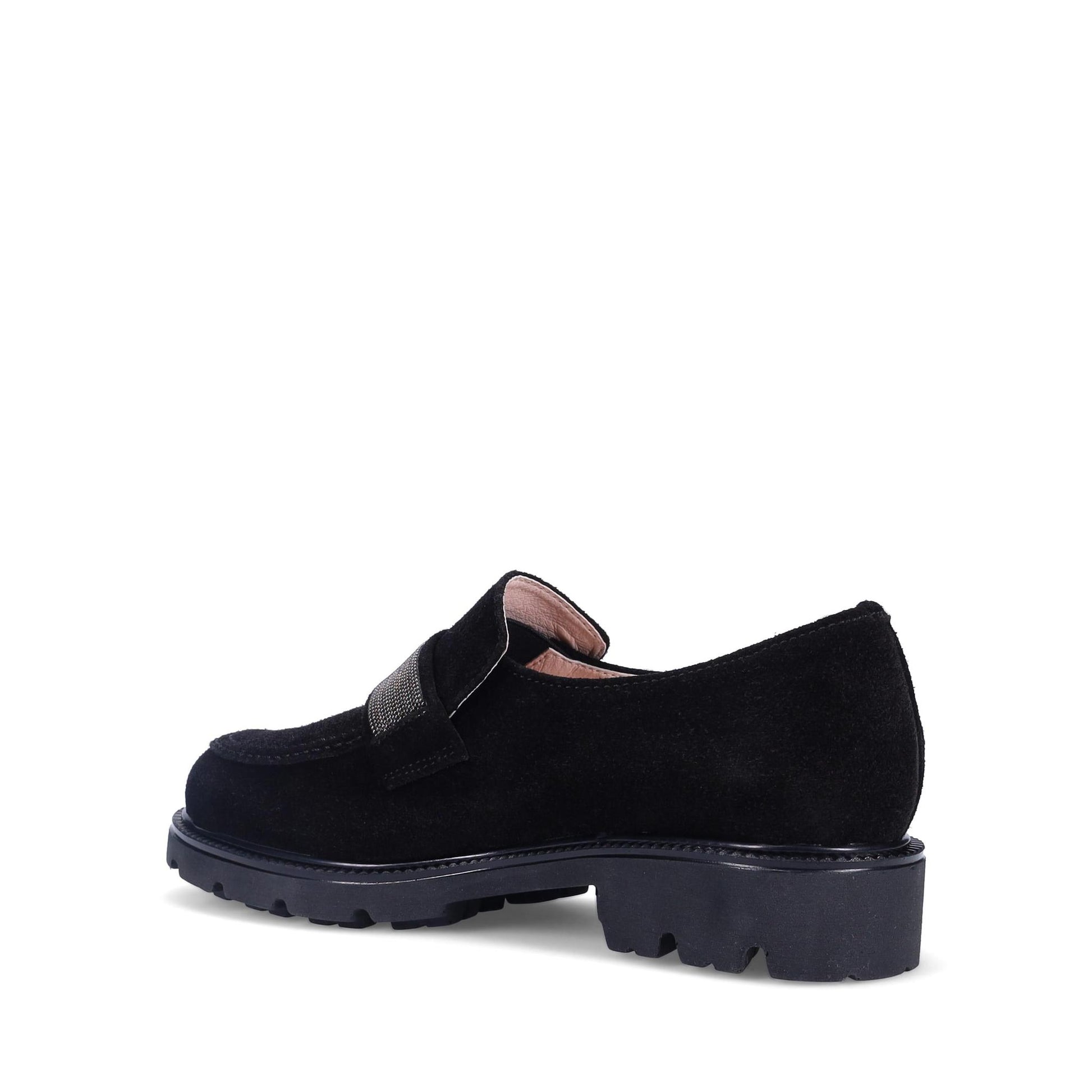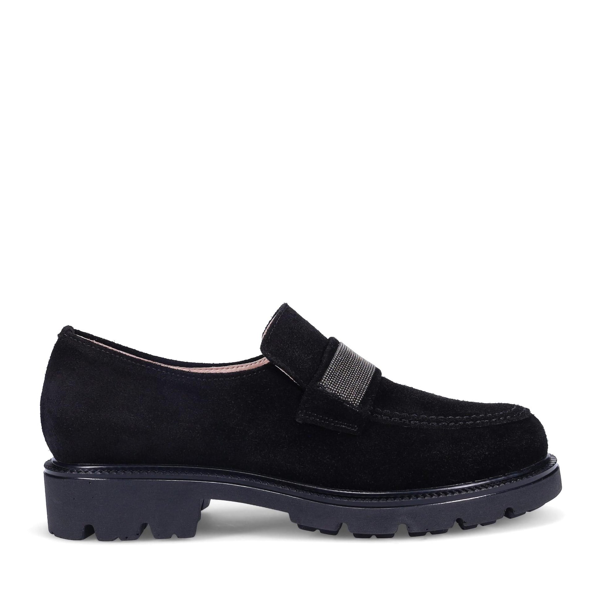 Gayle Loafer in Suede. Metallic Chain Detail. Unique 5mm Pillow Cushioning. Anti-Slip Rubber Sole. Made in Italy.