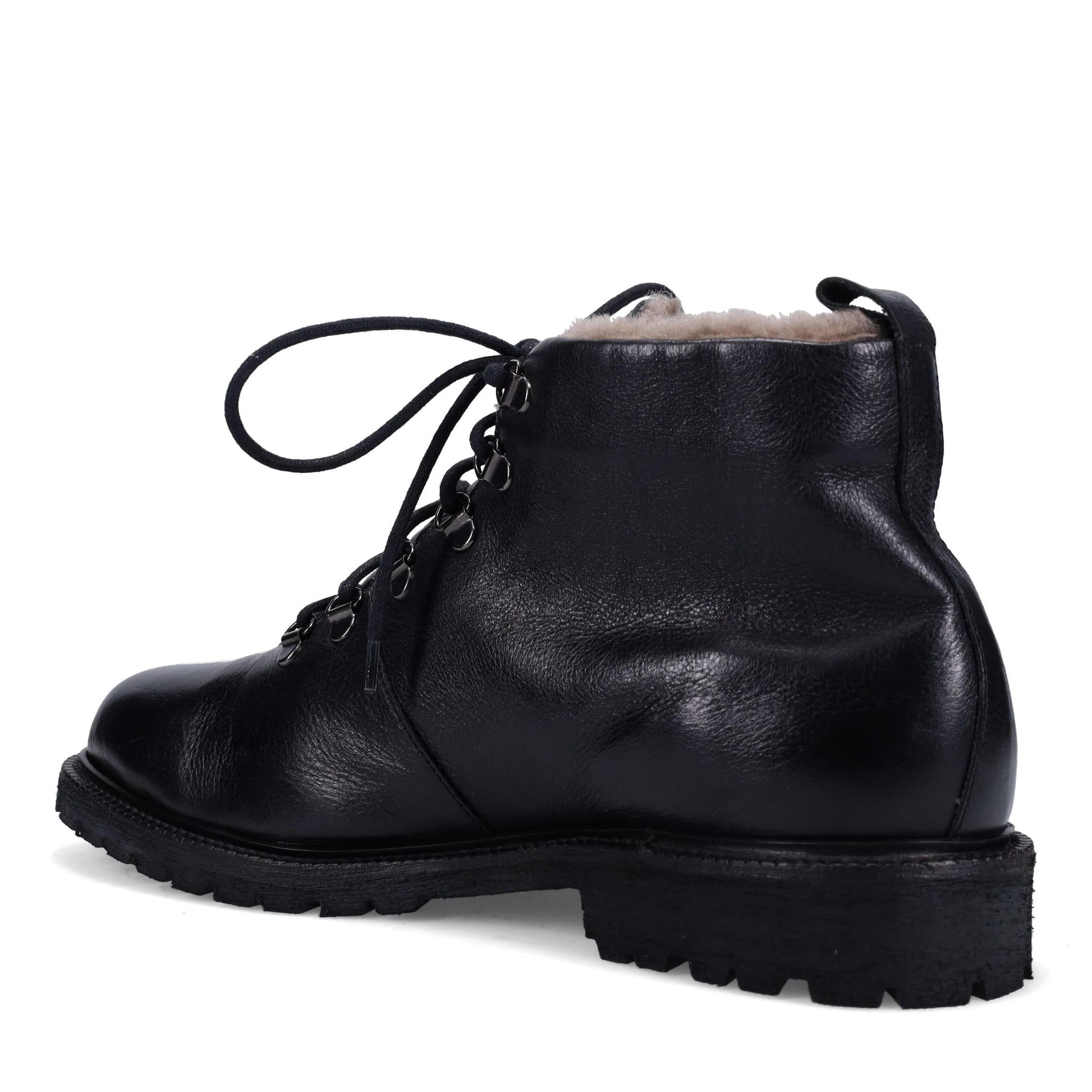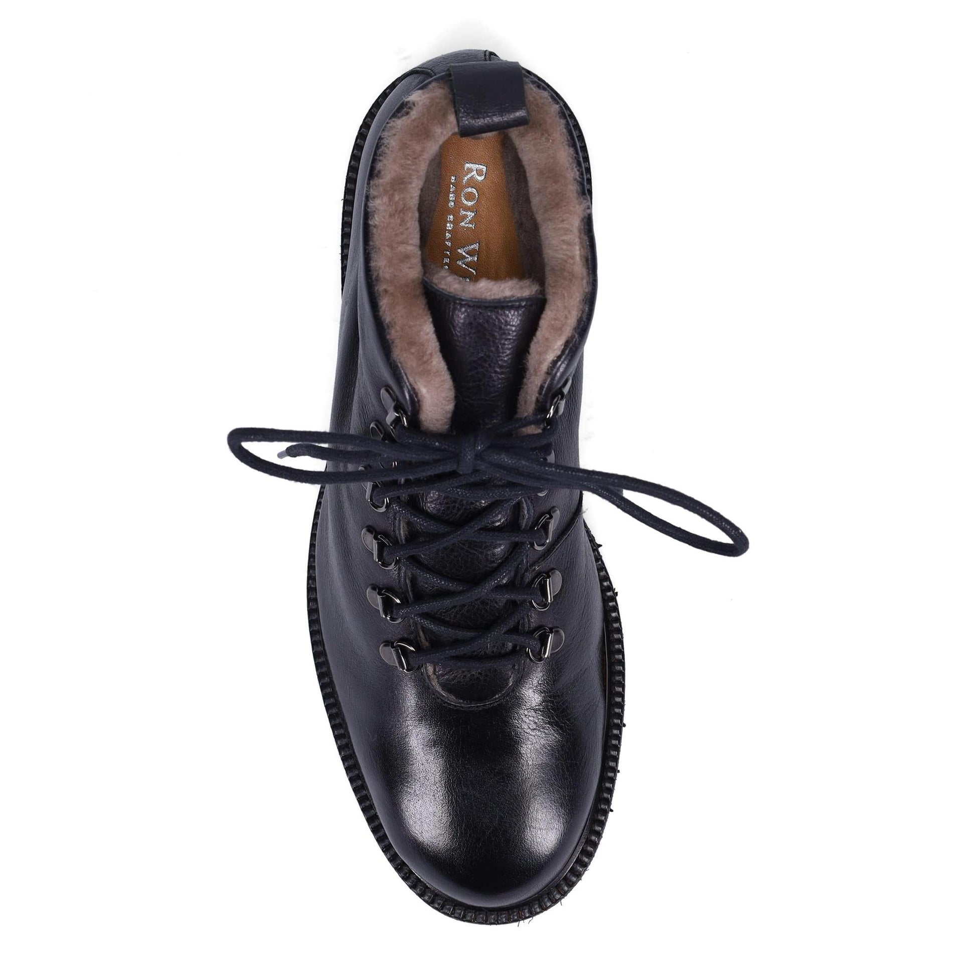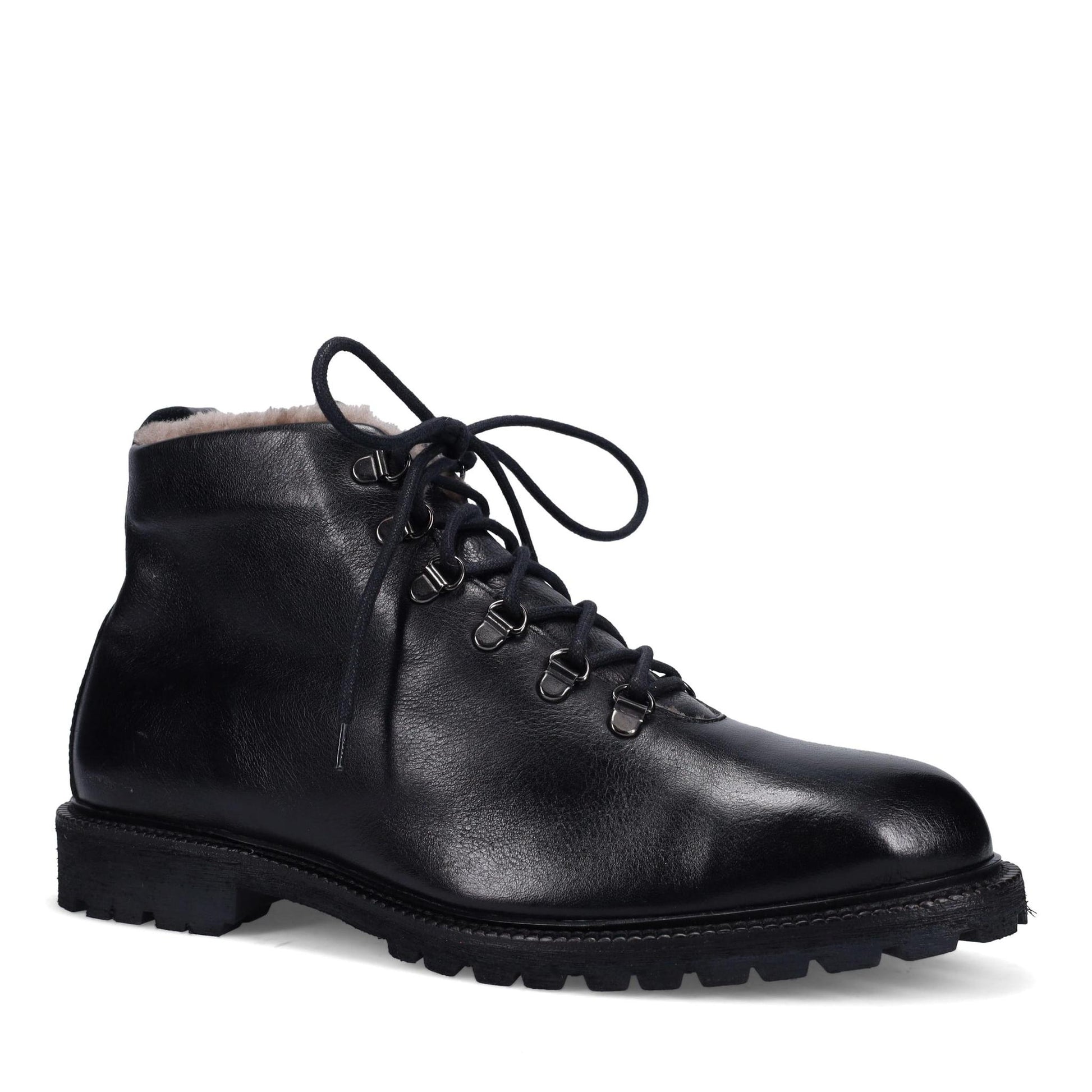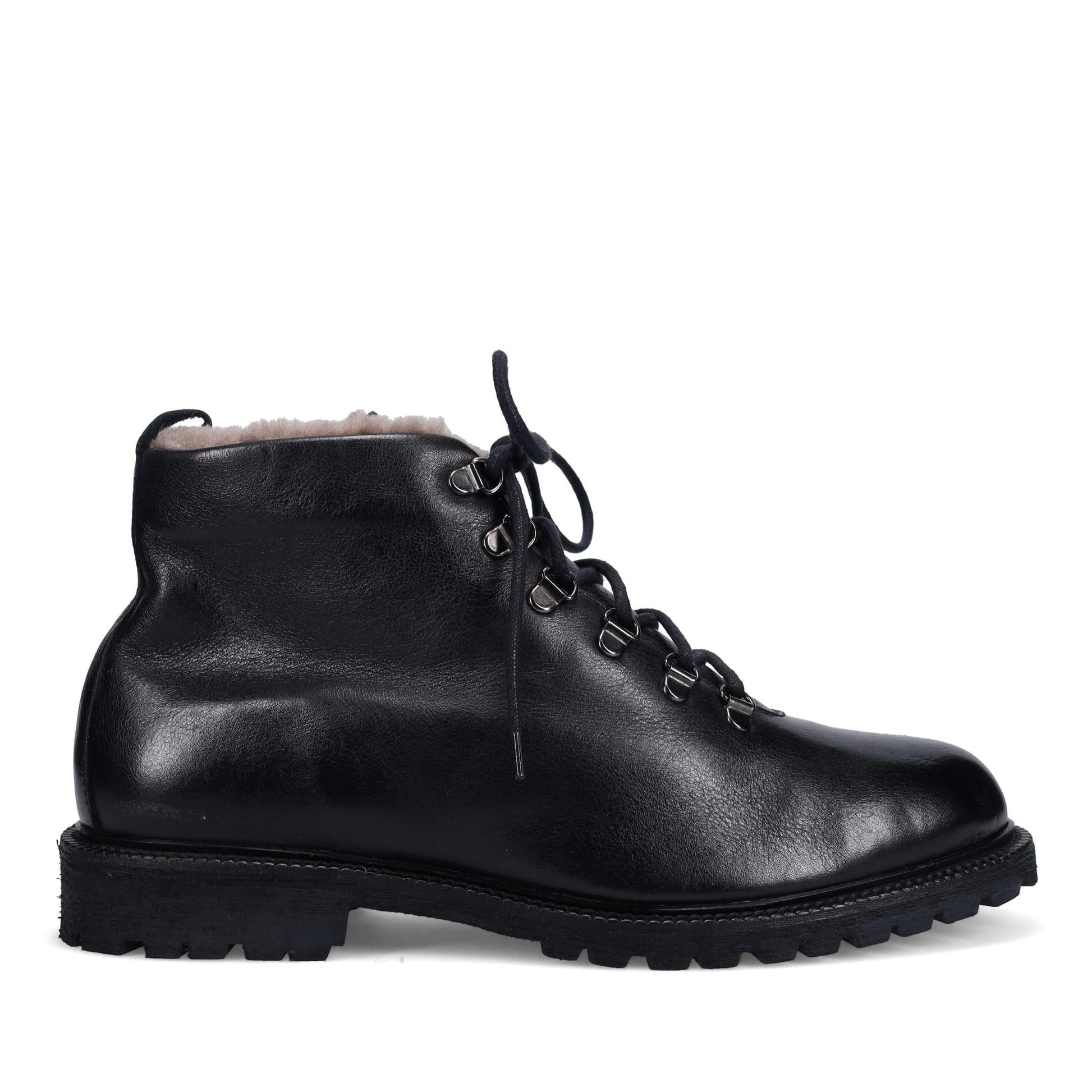 Gowan Ankle Boot in Hand Burnished Soft Calf. D-Ring Eyelets. Fully Shearling Lined. Arch Support. Dual Fit with PORON Insole. Weatherproof. Made in Italy.