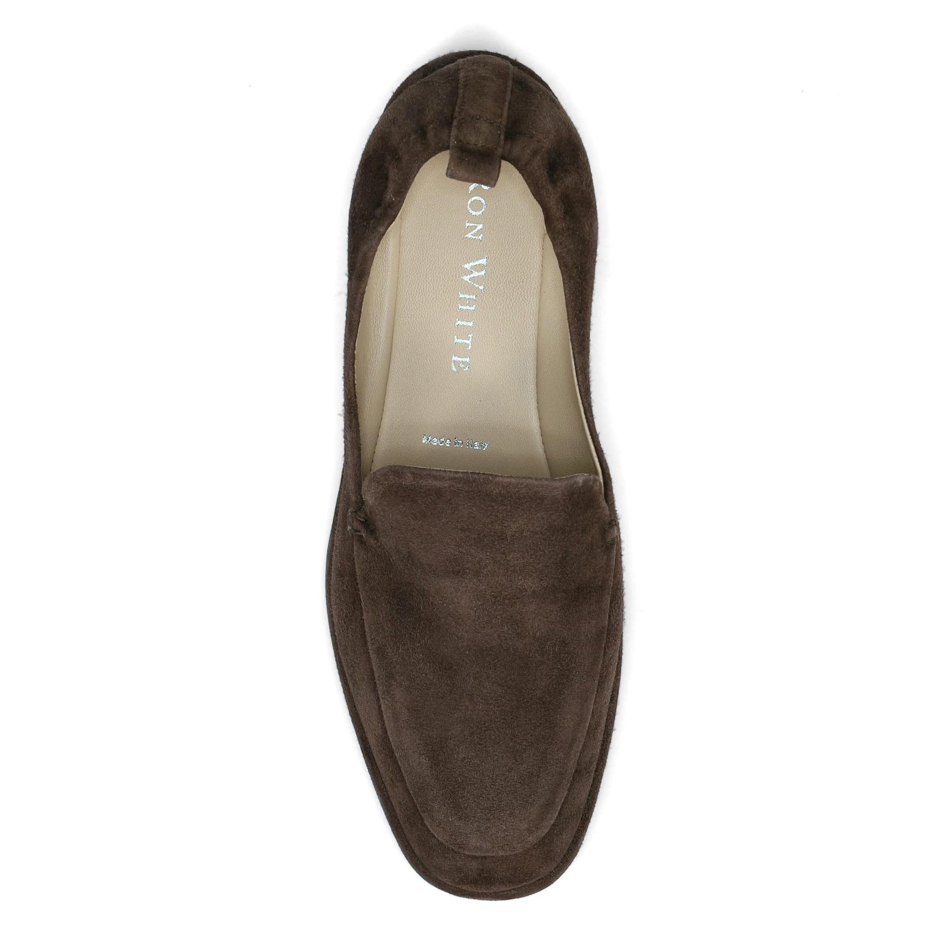 Gracelyn Suede Loafer in Weatherproof Cashmere Suede. Sumptuous double padding. Seamless Sacchetto construction. Superflex Anti-Slip Rubber Outsole. Made in Italy.