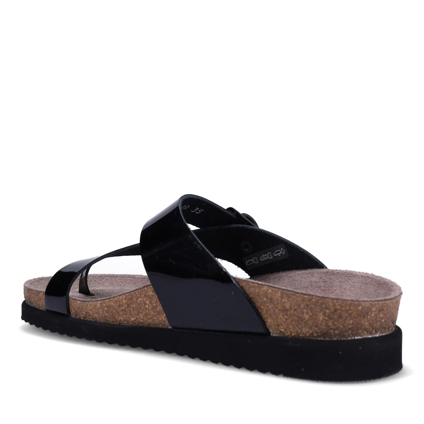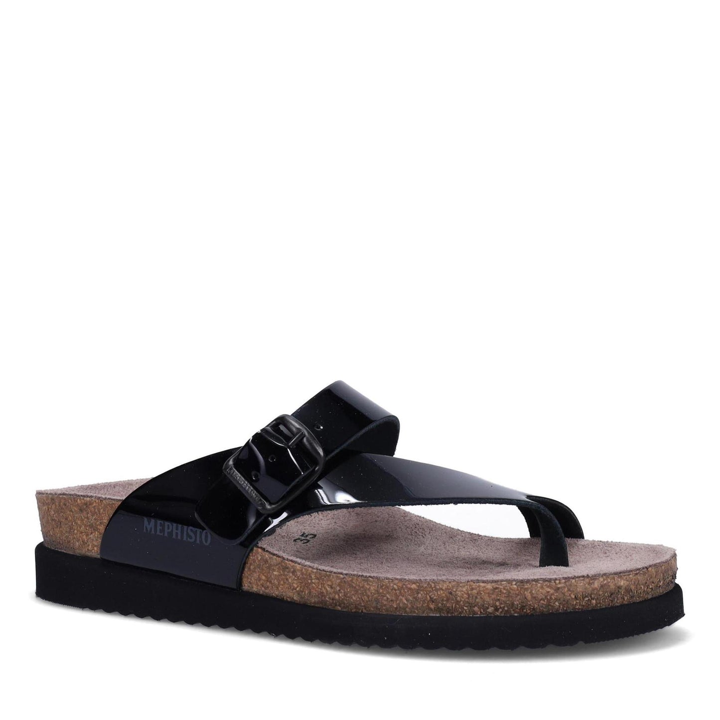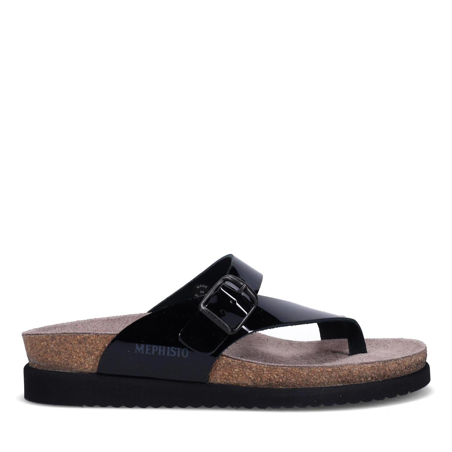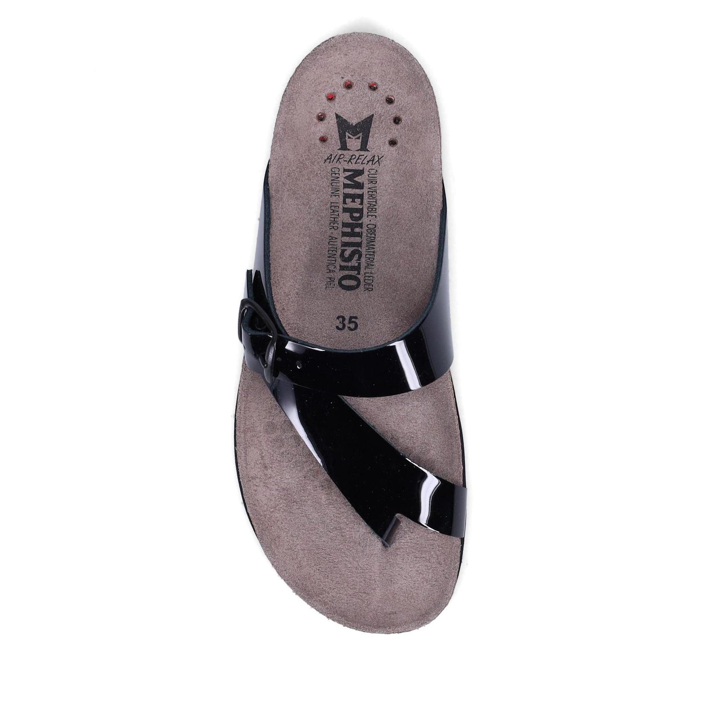 Mephisto Helen Vernis Thong in Patent Leather. Instep Strap with Adjustable Buckle. Arch Support. Made in France.