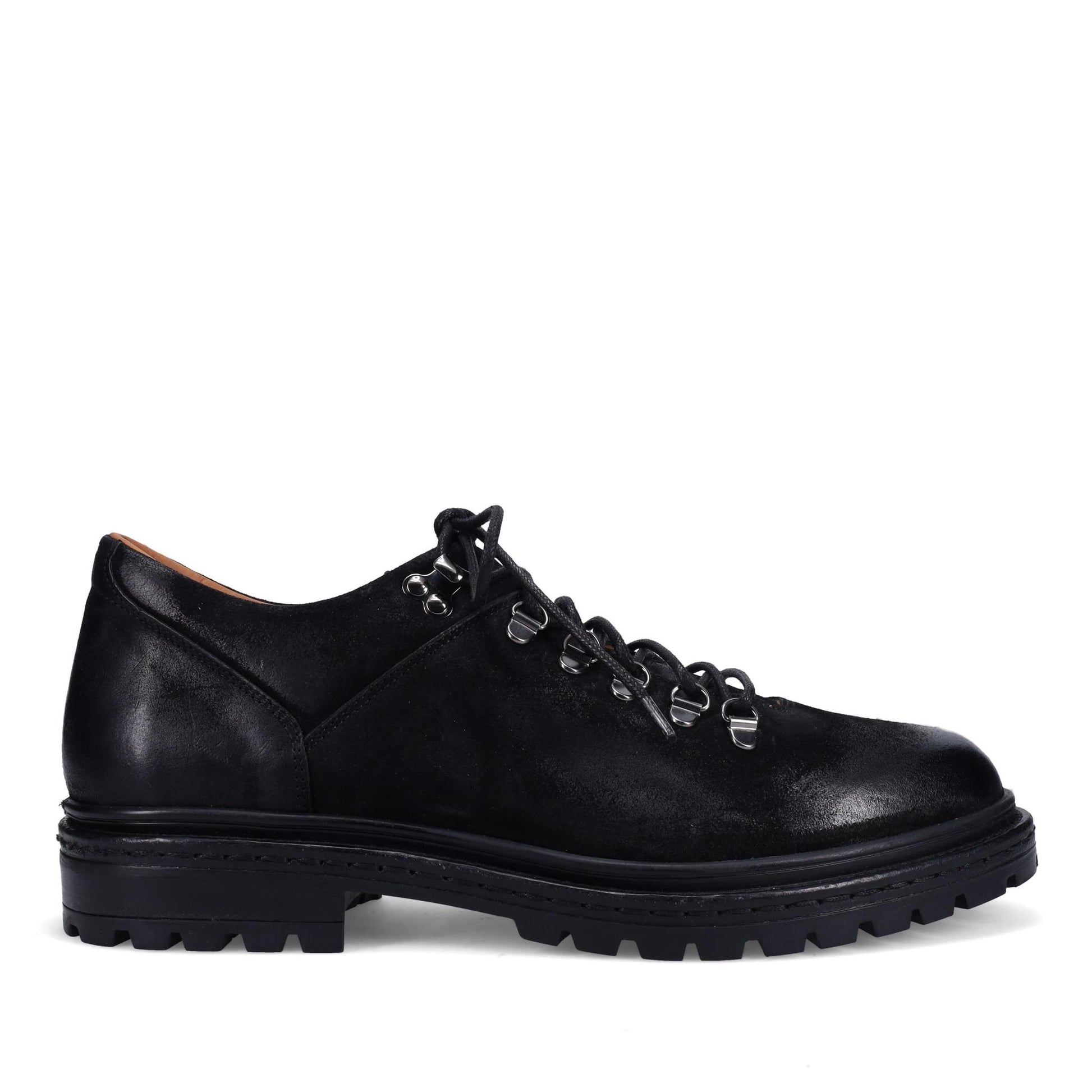 Kelly City Hiker in Distressed Oiled Suede. Featuring a Full Removable Footbed with Arch Support. Norwegian Welted . Anti-Slip Rubber Lug Outsole. Made in Italy.