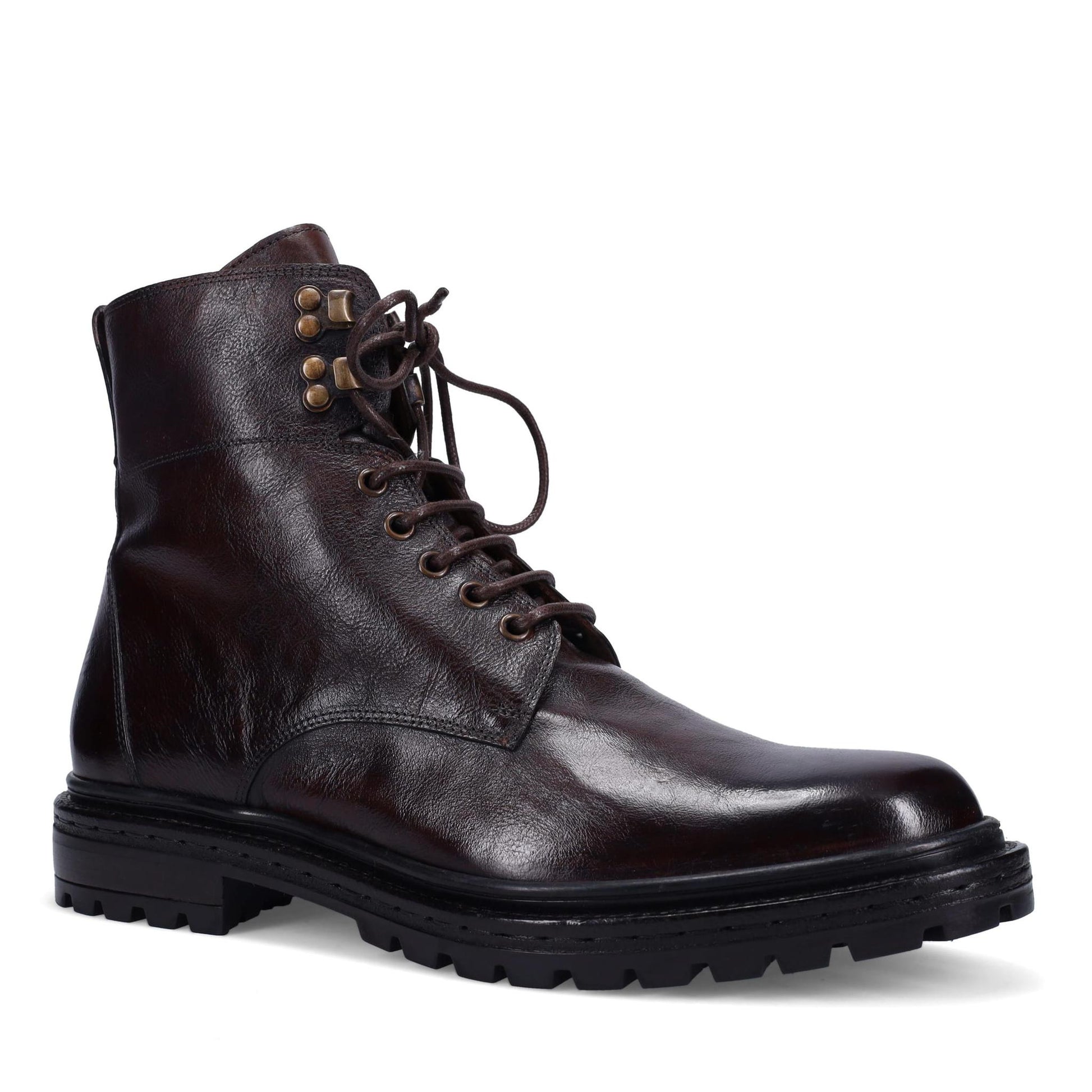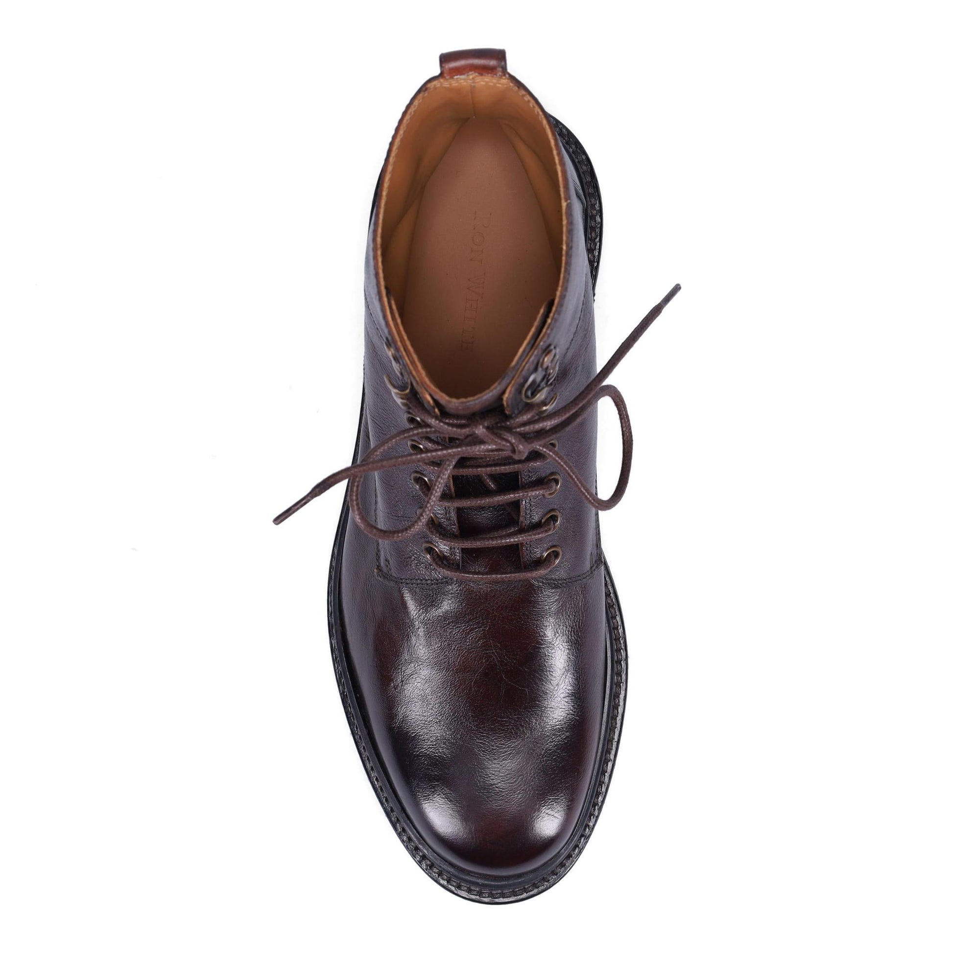 Kobe Combat Boot in Distressed Calf. Featuring a Full Removable Footbed with Arch Support. Norwegian Welted . Anti-Slip Rubber Lug Outsole. Made in Italy.