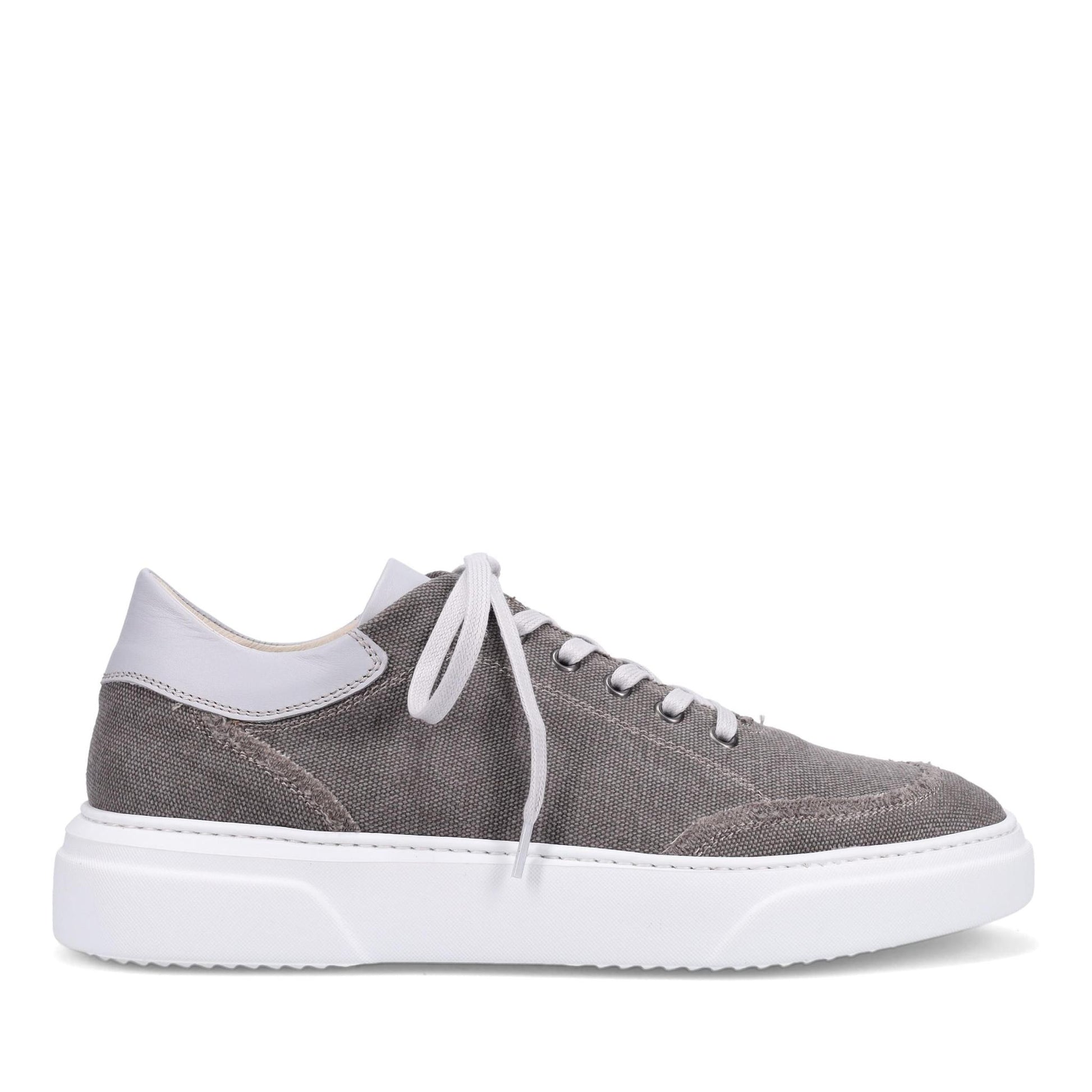 Maverik Footbed Sneaker in Canvas with Calf Trim. Featuring a full removable footbed with arch support. Cotton laces. Anti-Slip rubber outsole. Made in Italy.