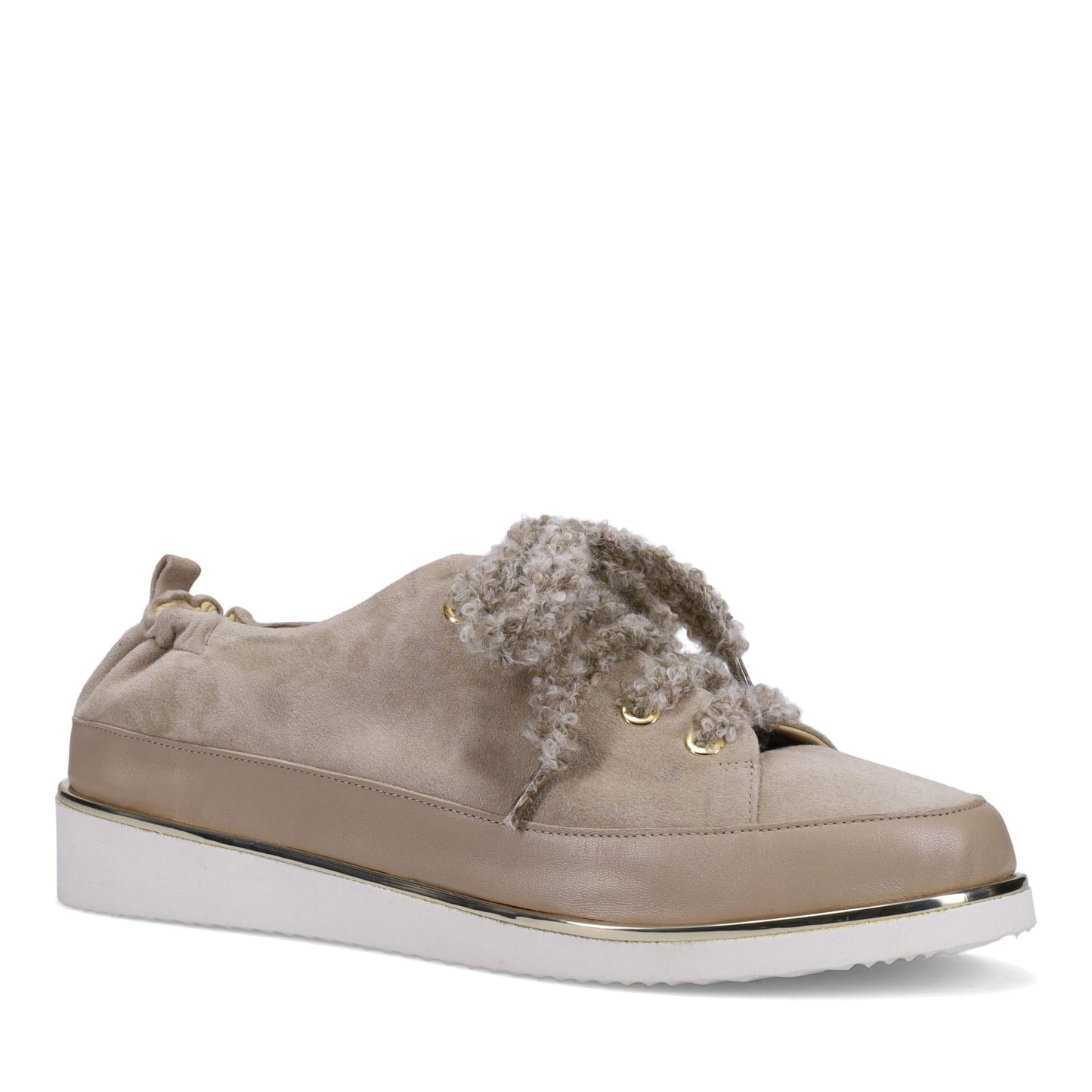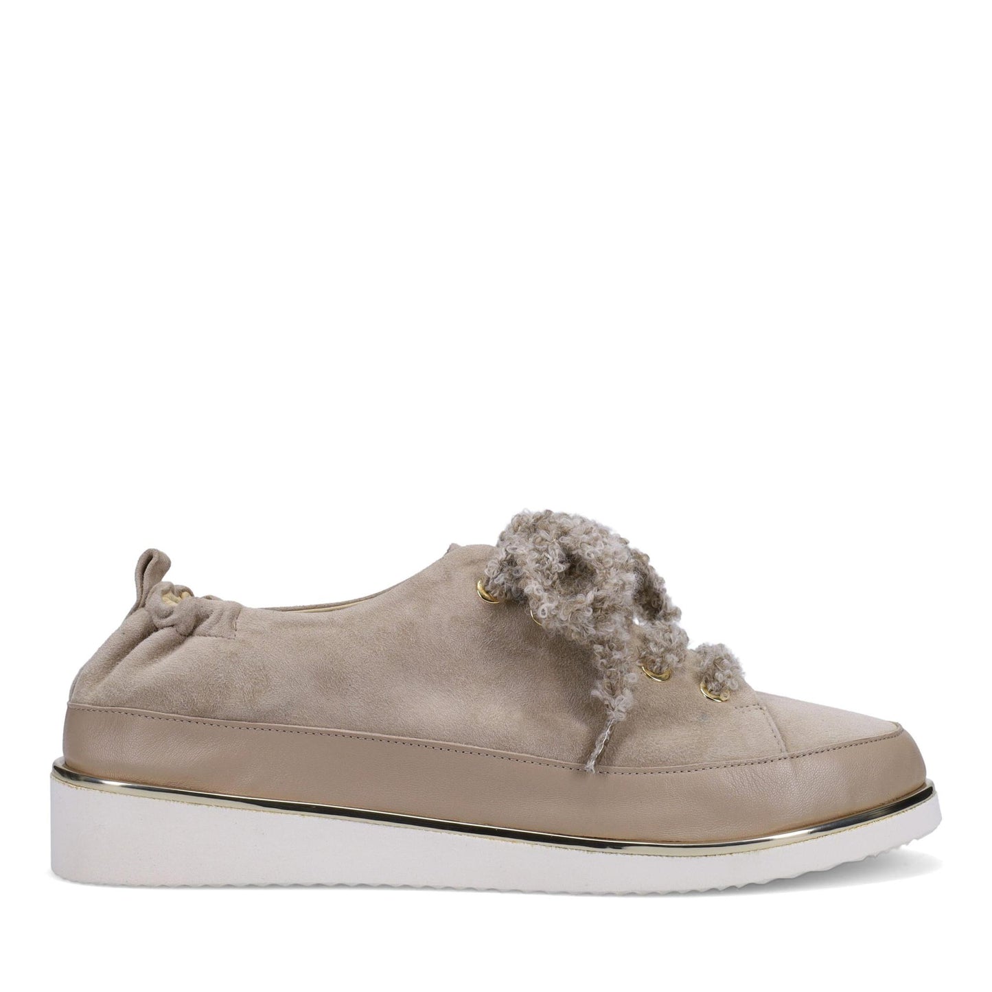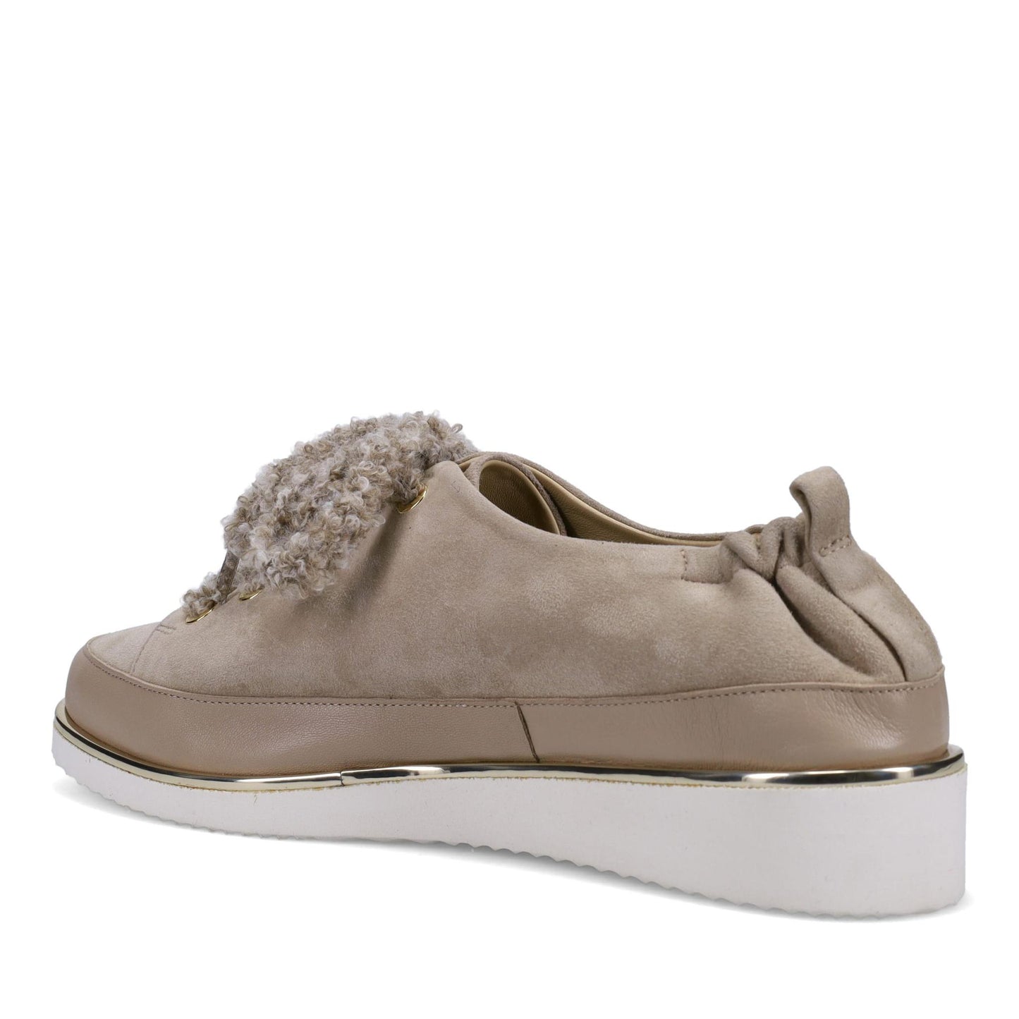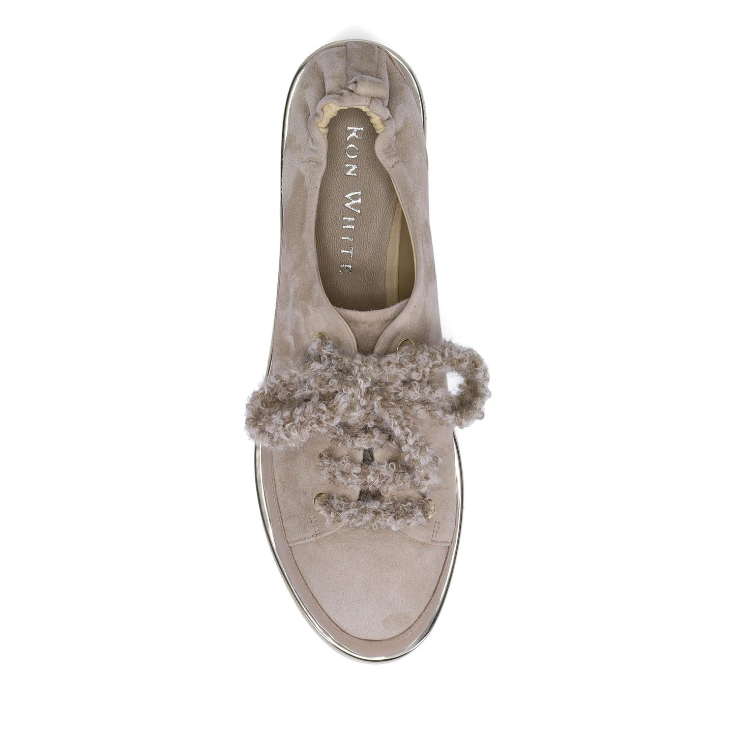 Nalla Ultralight Lace-Up in Cashmere Suede with Nappa Trim and Mirror Welt. Teddy Bear Laces. Sumptuous Double Padding. Seamless Sacchetto Construction. Ultralight Wedge Outsole. Weatherproof. Made in Italy.