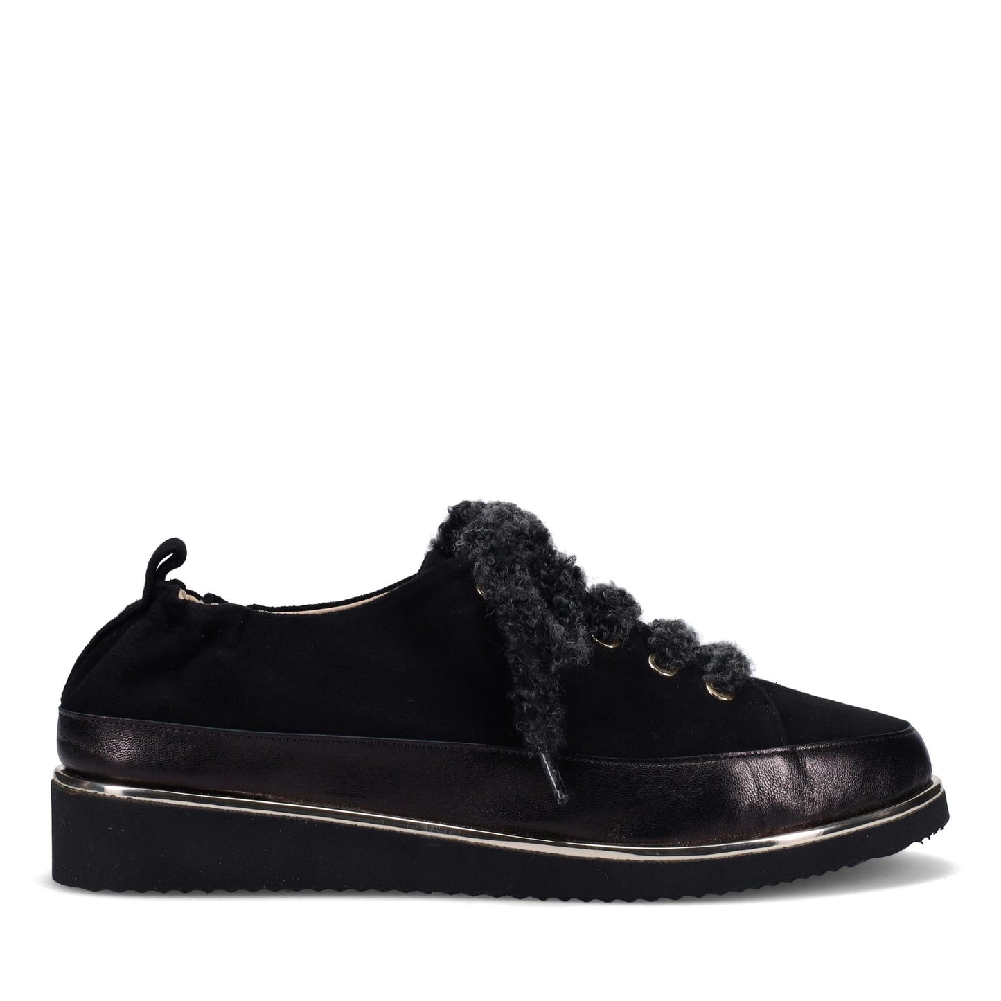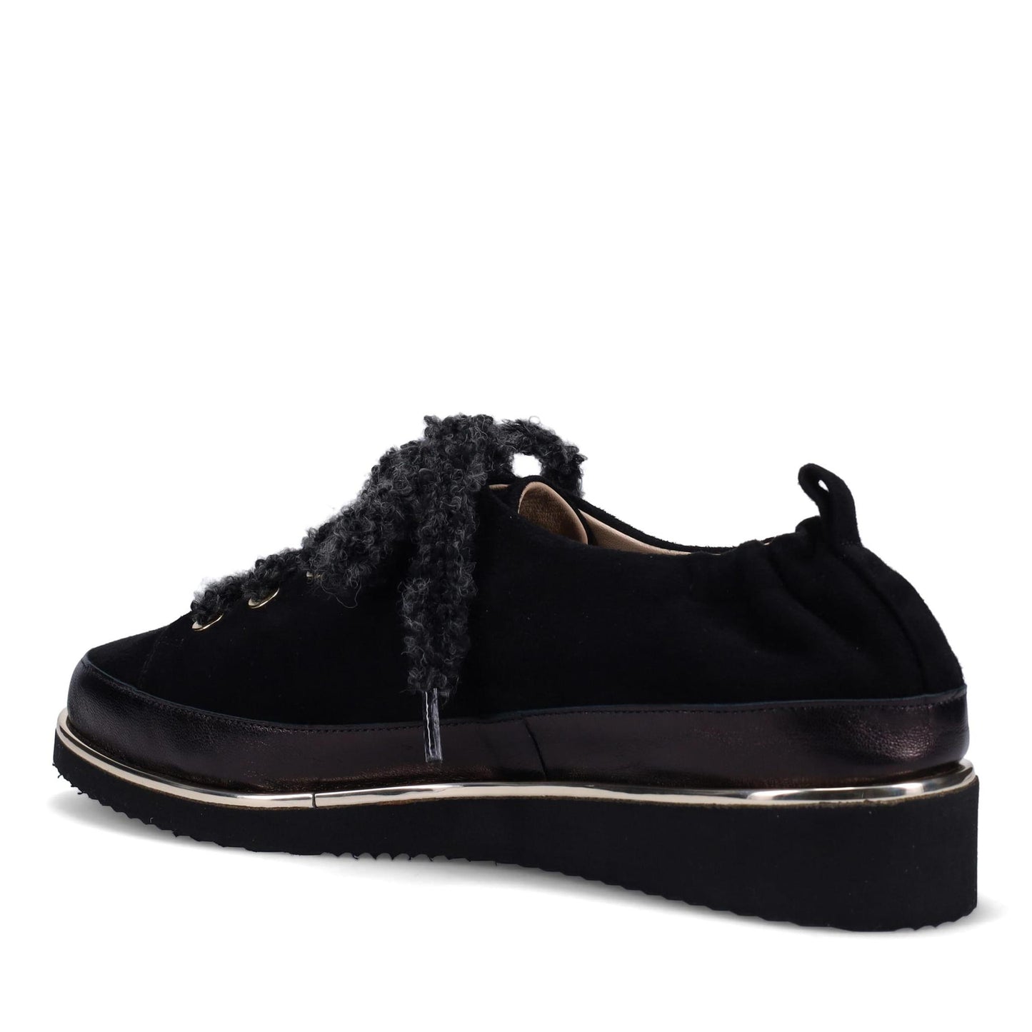 Nalla Ultralight Lace-Up in Cashmere Suede with Nappa Trim and Mirror Welt. Teddy Bear Laces. Sumptuous Double Padding. Seamless Sacchetto Construction. Ultralight Wedge Outsole. Weatherproof. Made in Italy.