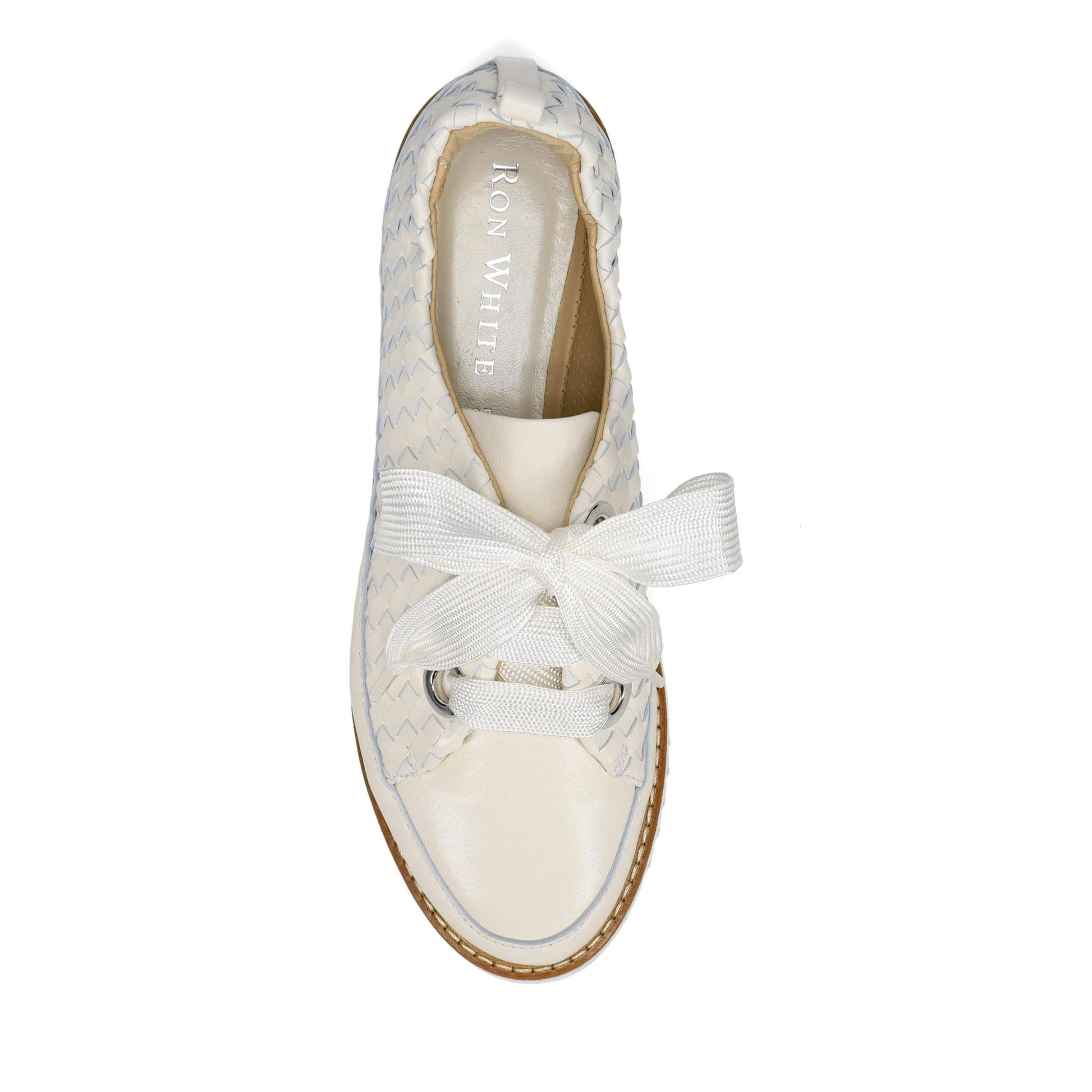 Noellen Ultralight Sneaker in Artisan Woven Hand Burnished English Calf. Double Padding. Ultralight Wedge Outsole. Made in Italy.
