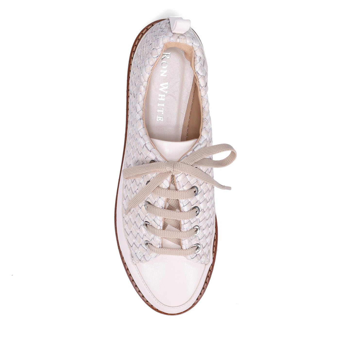 Norelle Ultralight Lace-Up in Artisan Woven Hand Burnished English Calf. Sumptuous double padding. Seamless Sacchetto construction. Ultralight Wedge outsole. Made in Italy.