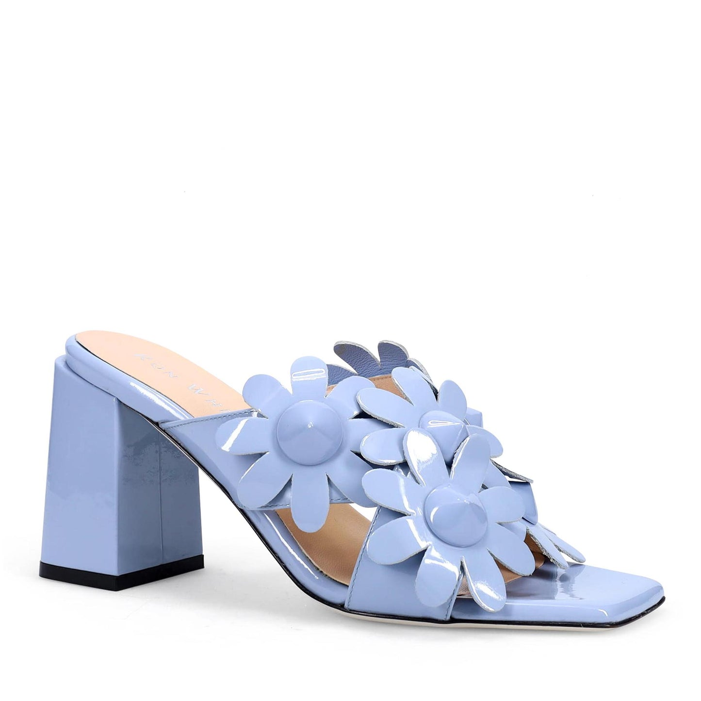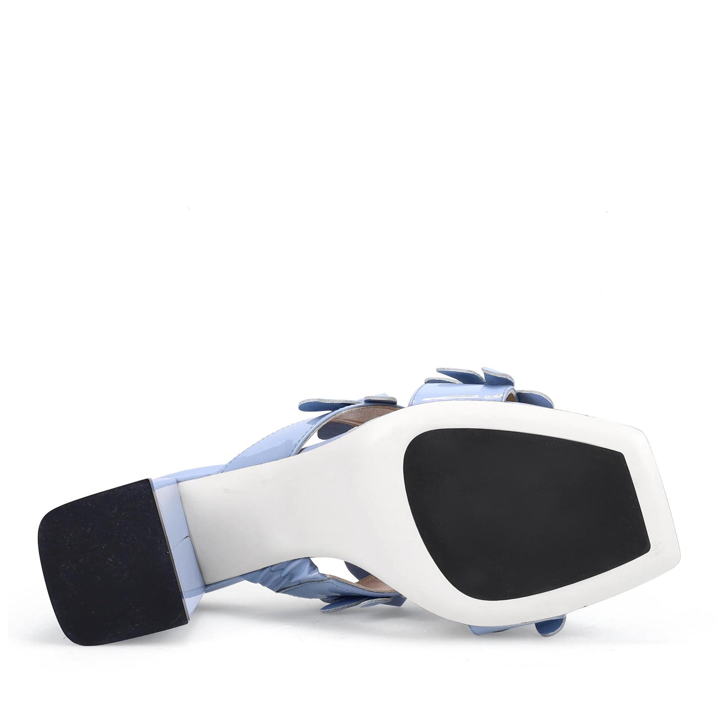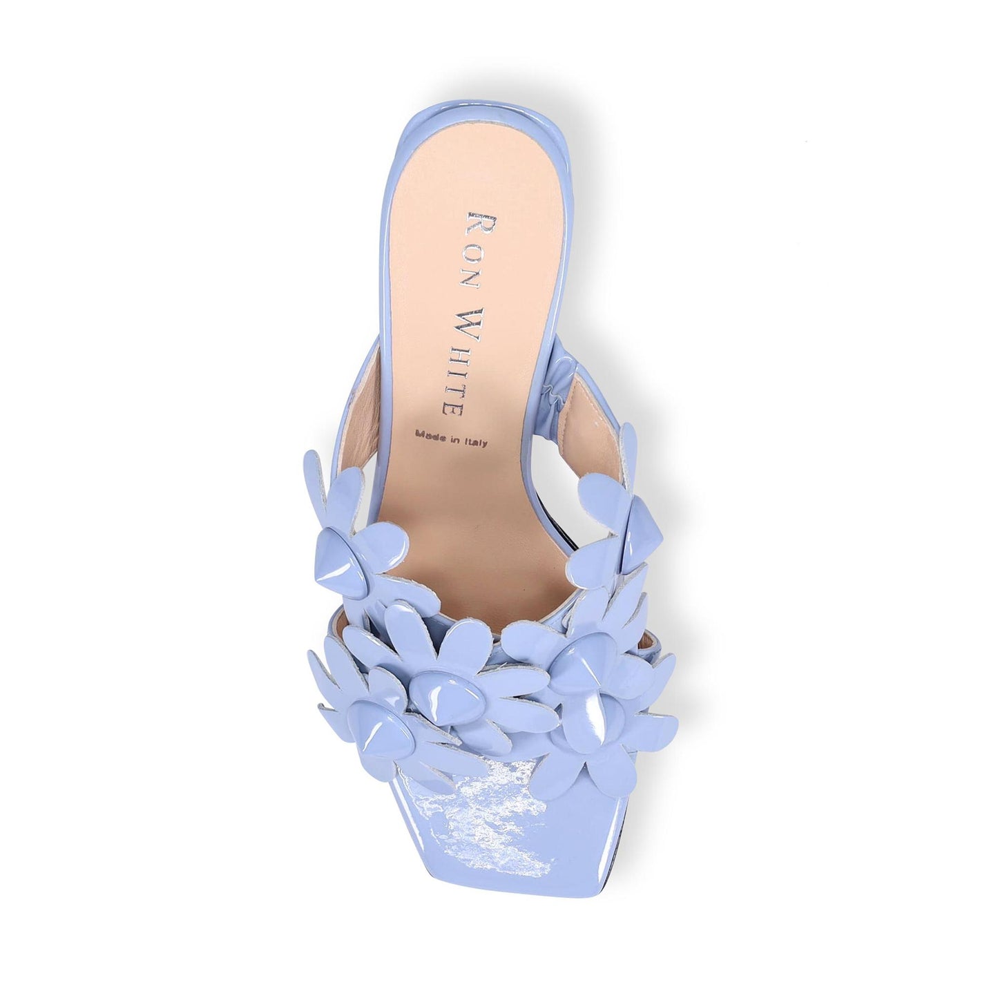 Olivea Slide in Soft Nappa Patent. Sumptuous Double Padding. Asymmetrical Heel. Made in Italy.
