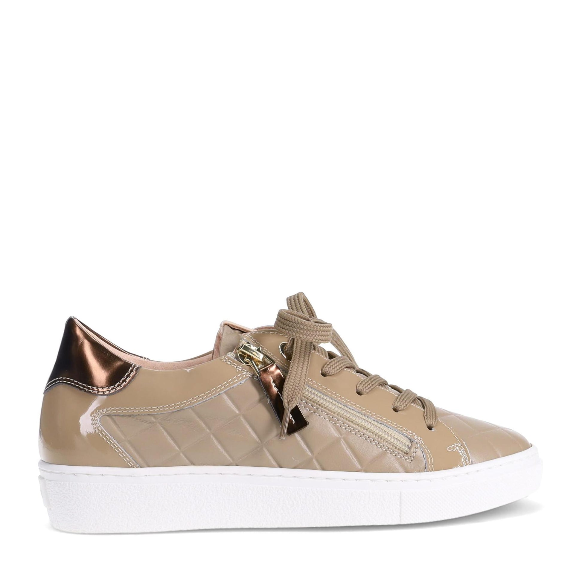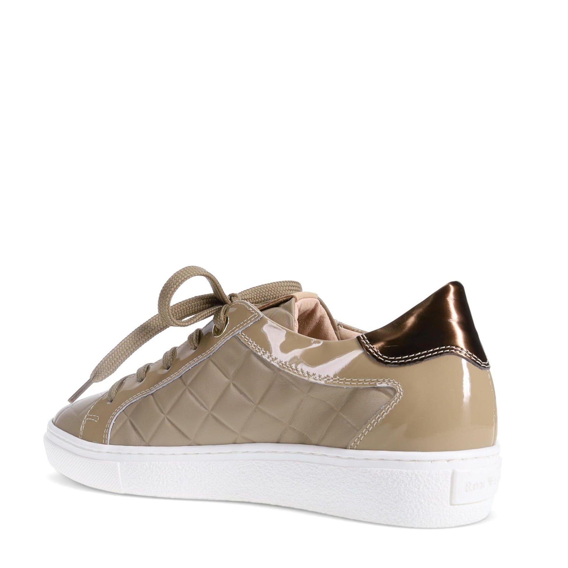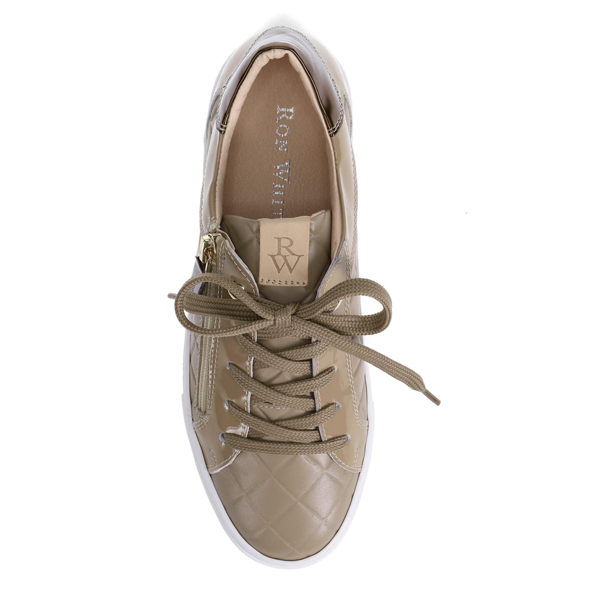 Orissa Footbed Sneaker in Quilted Embossed Calf with Patent Trim. Front Laces with Outside Zipper. Featuring a Full Removable Footbed with Arch and Metatarsal Support. Anti-Slip Rubber Sole. Made in Italy.