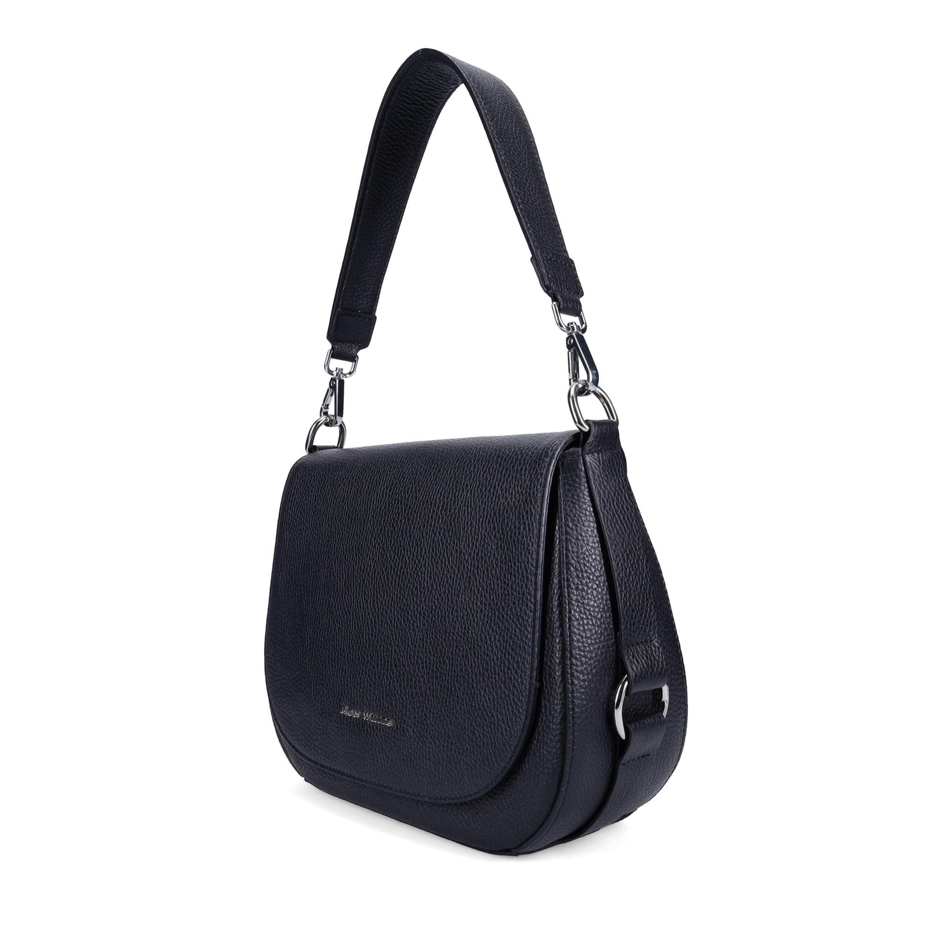 Portman Satchel in Supple Tumbled Calf. Jewelry Grade Silver Hardware. Flap-Over with Magnetic Closures. Detachable Top Handle. Made in Italy.