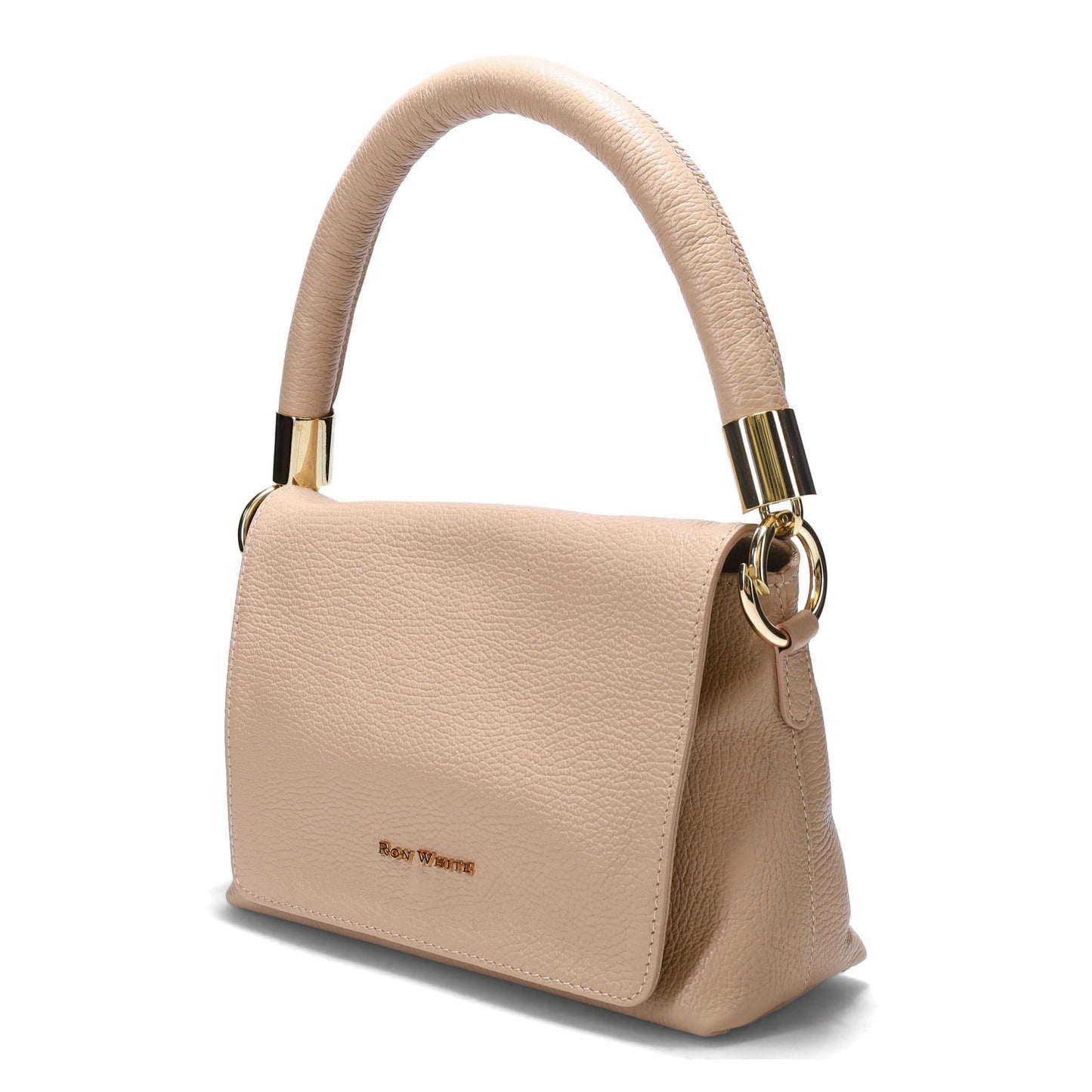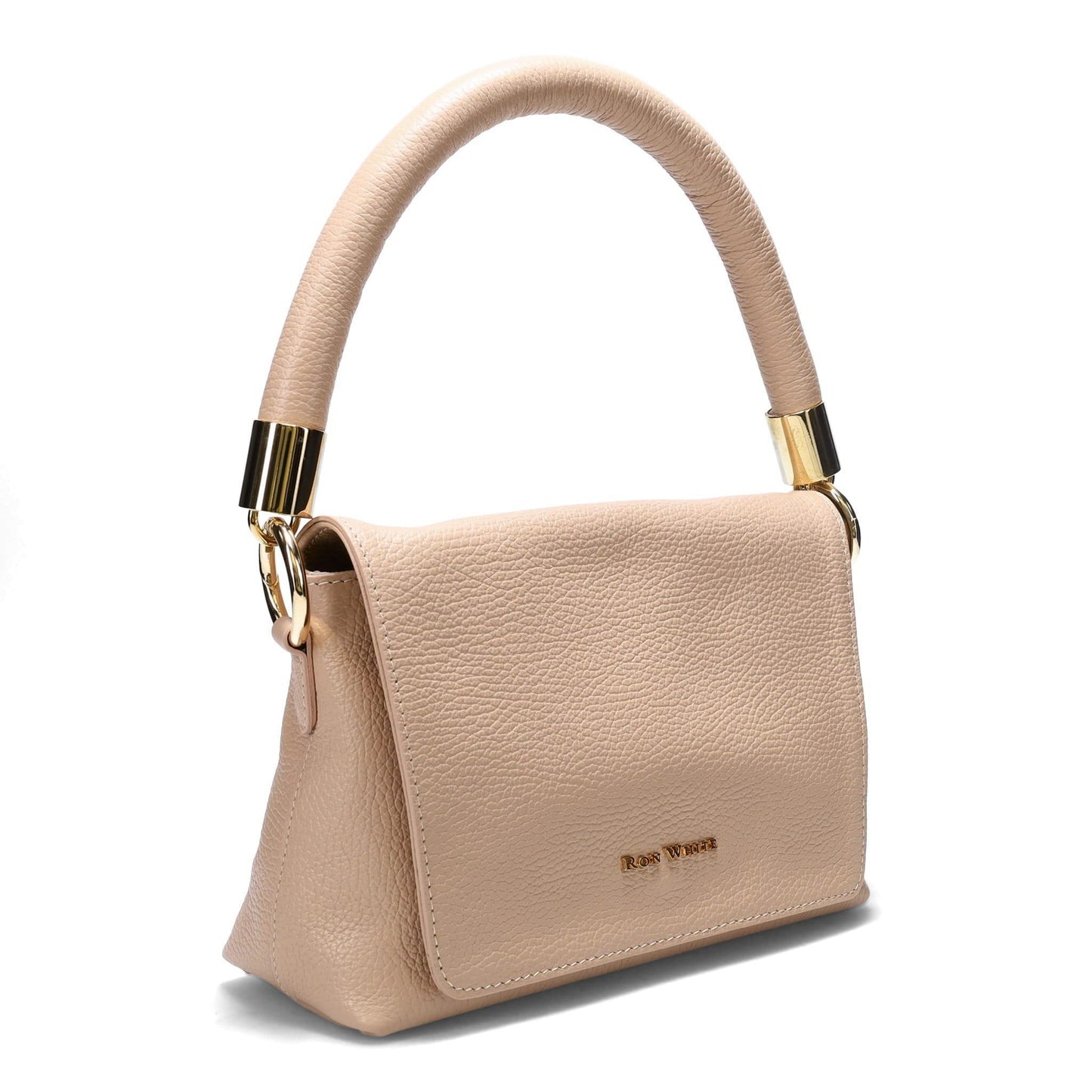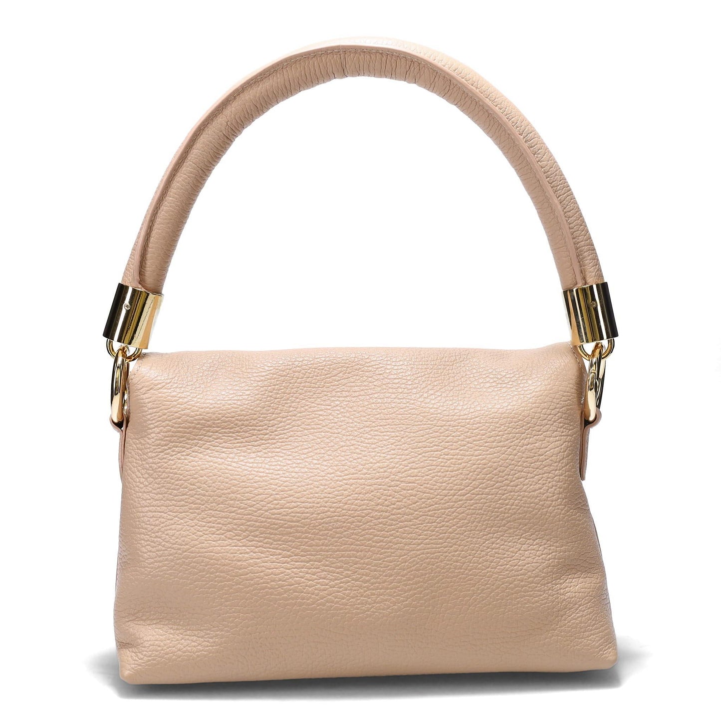 Primera Handbag in Supple Tumbled Calf. Jewelry Grade Hardware. Top Flap Closure. Detachable Handle. Made in Italy.