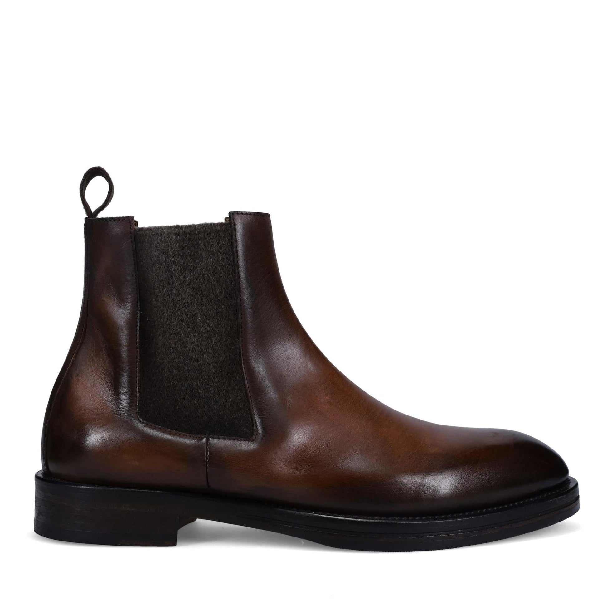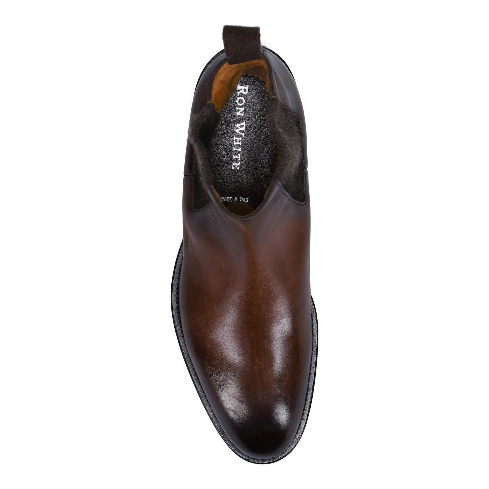 Ryder Chelsea Boot in Antiqued Calf with Sweater Gore. Seamless Sacchetto Construction. Made in Italy.