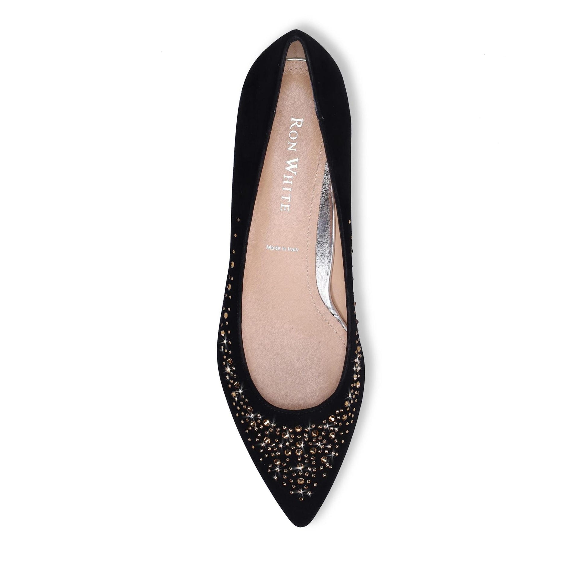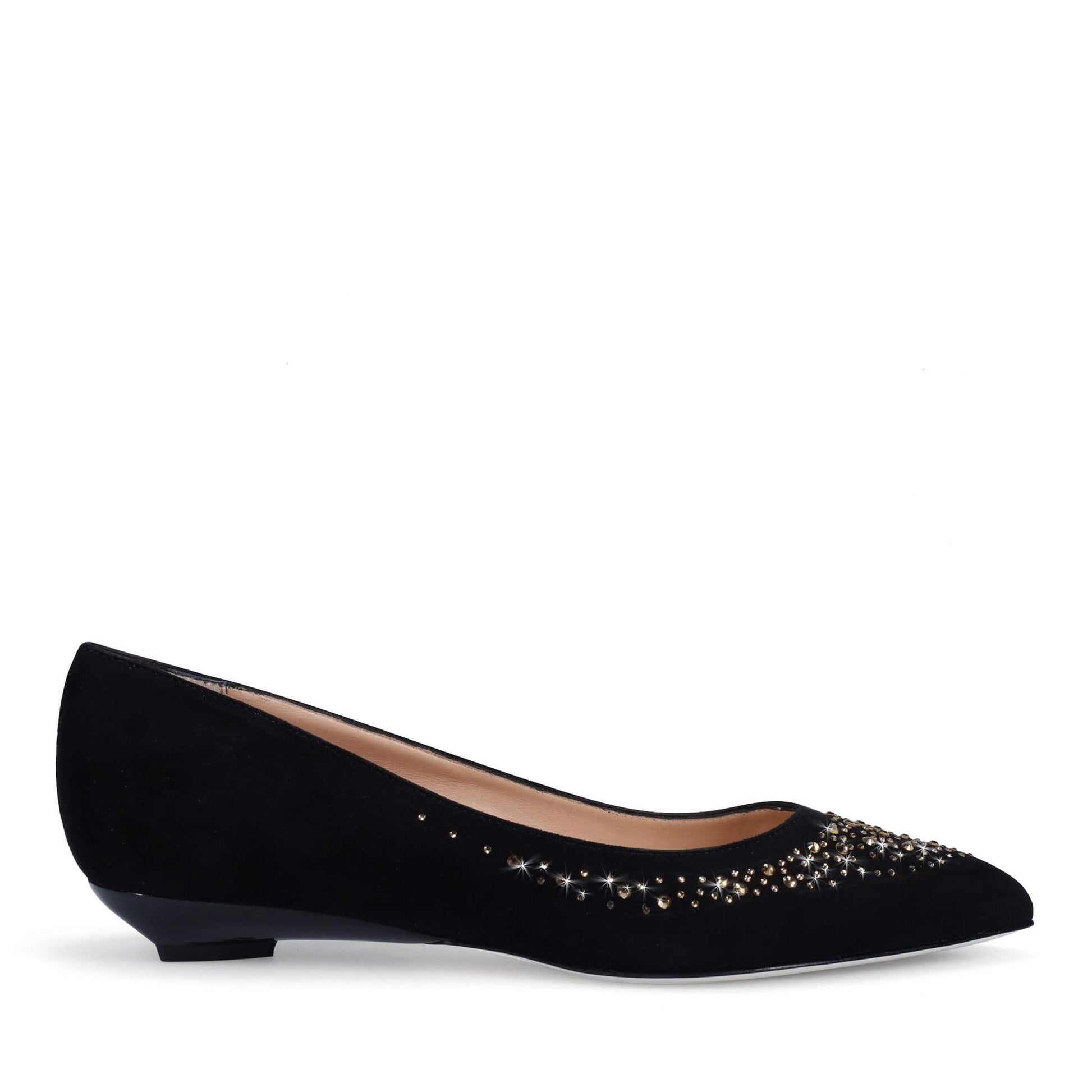 Scarlett Bling Wedge in Cashmere Suede with Swarovski Crystals. Arch Support and Double Padding. Made in Italy.