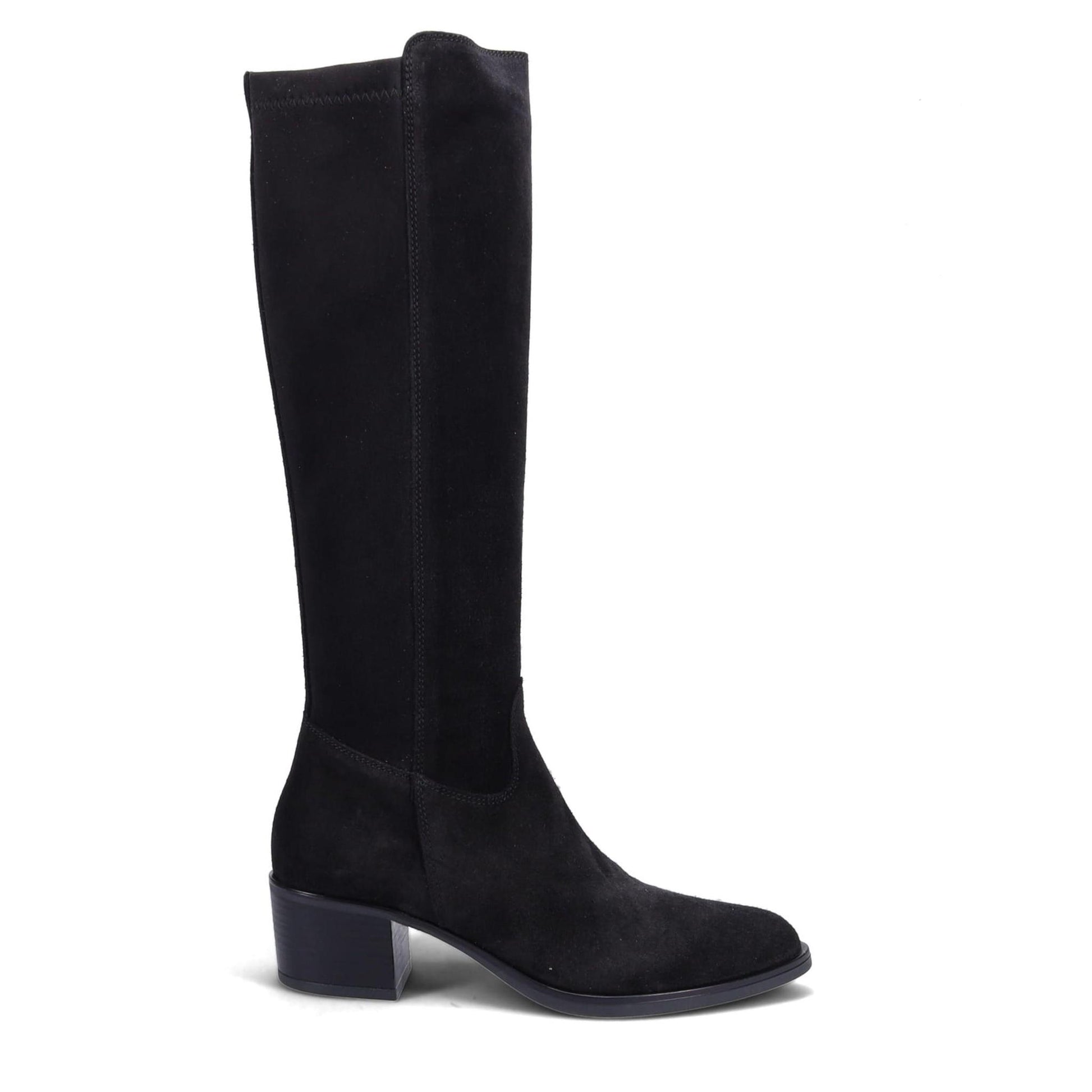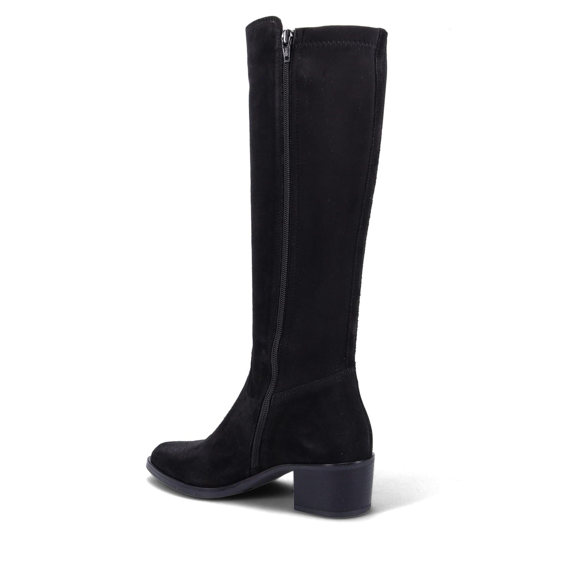 Wren Tall Boot in Suede with Stretch Suede panel. Inside Zipper. Fully Removable Footbed with Arch Support. Anti-Slip Rubber Outsole. Weatherproof.Made in Italy.